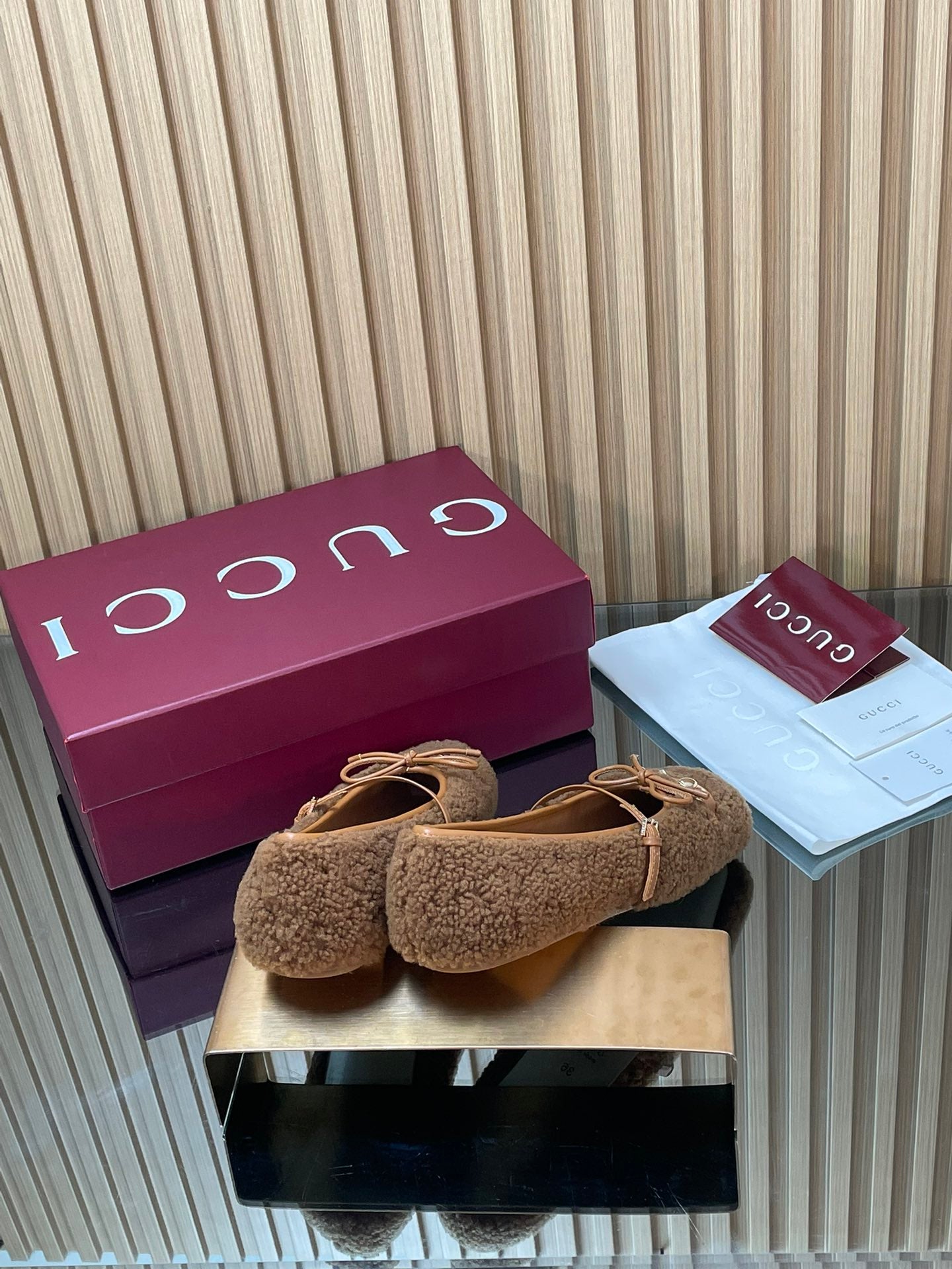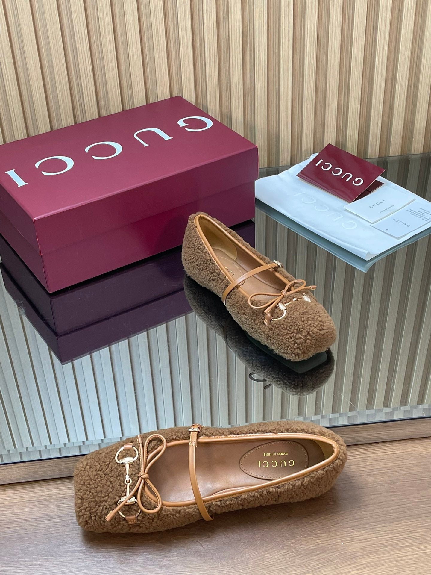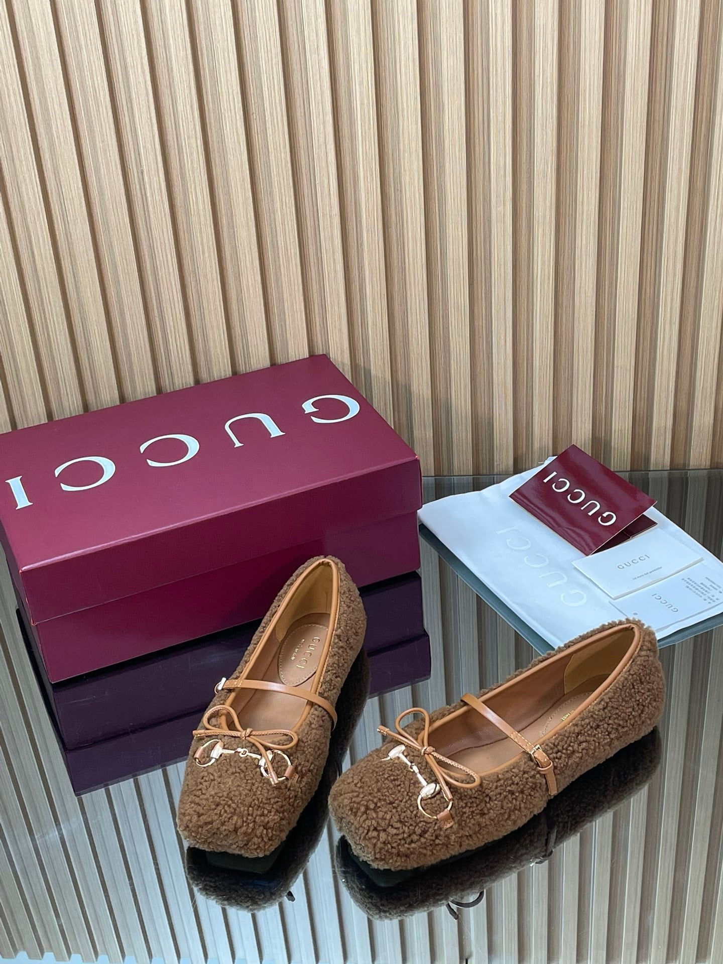 Gucci 26 Ballet Full Caramel Calfskin Wool 562992