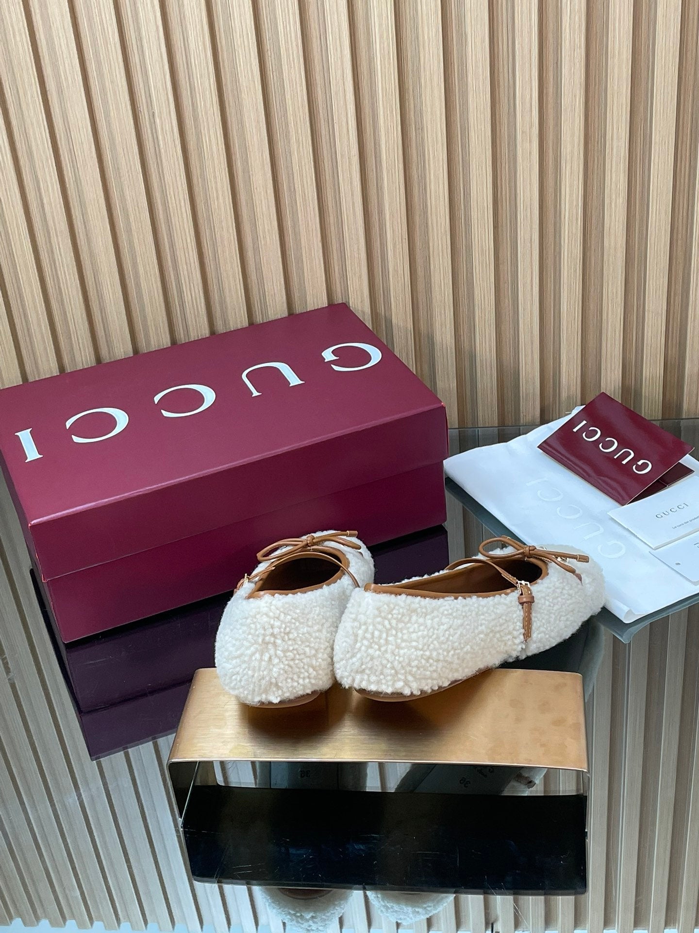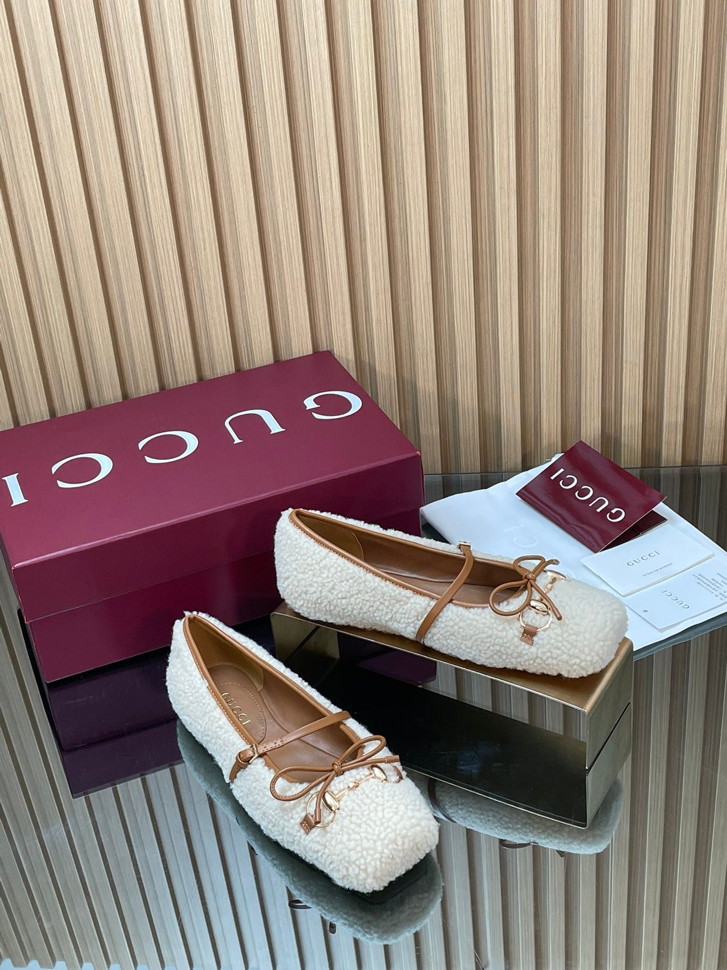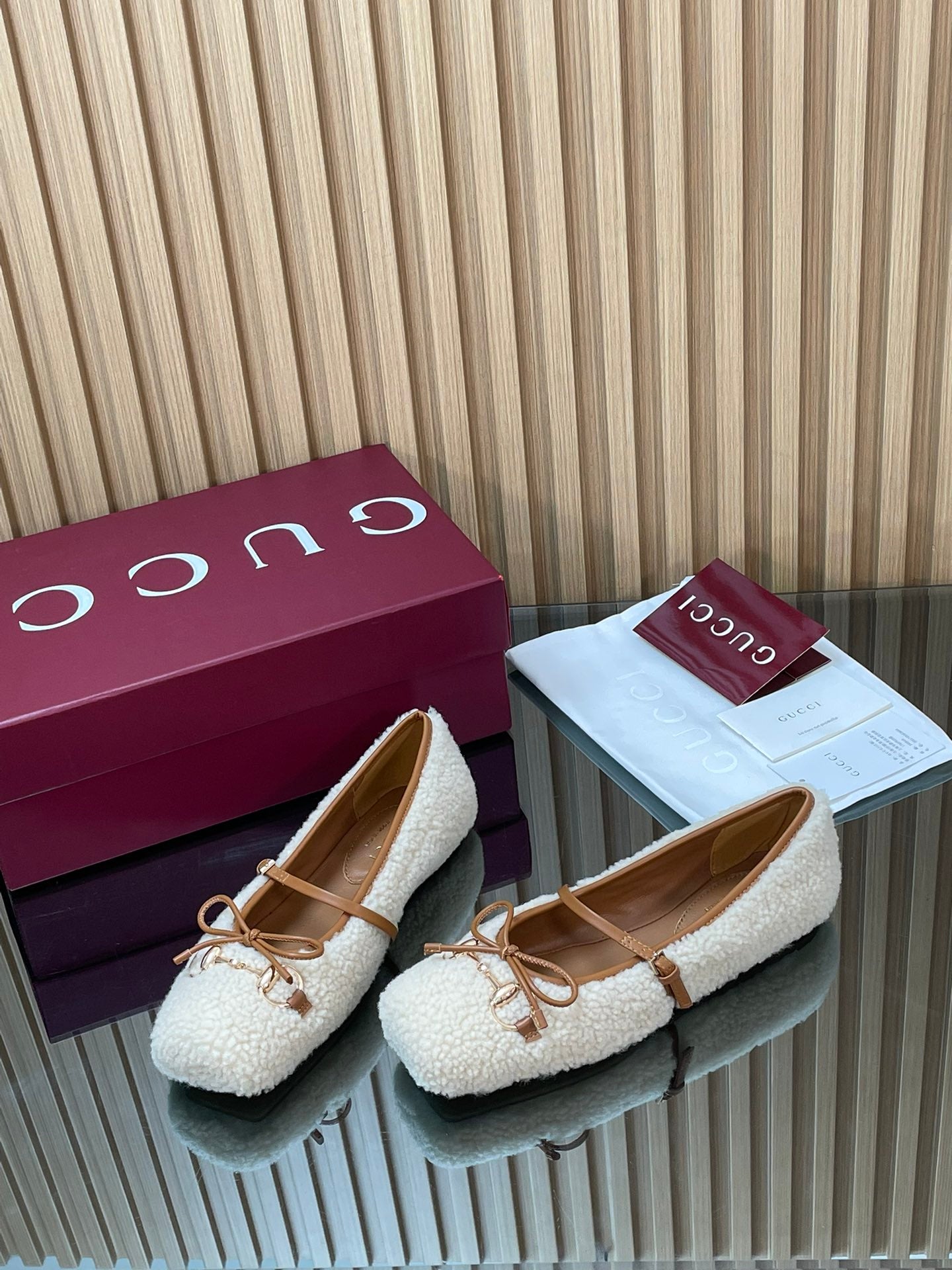 Gucci 26 Ballet Full Caramel Calfskin Wool 562992