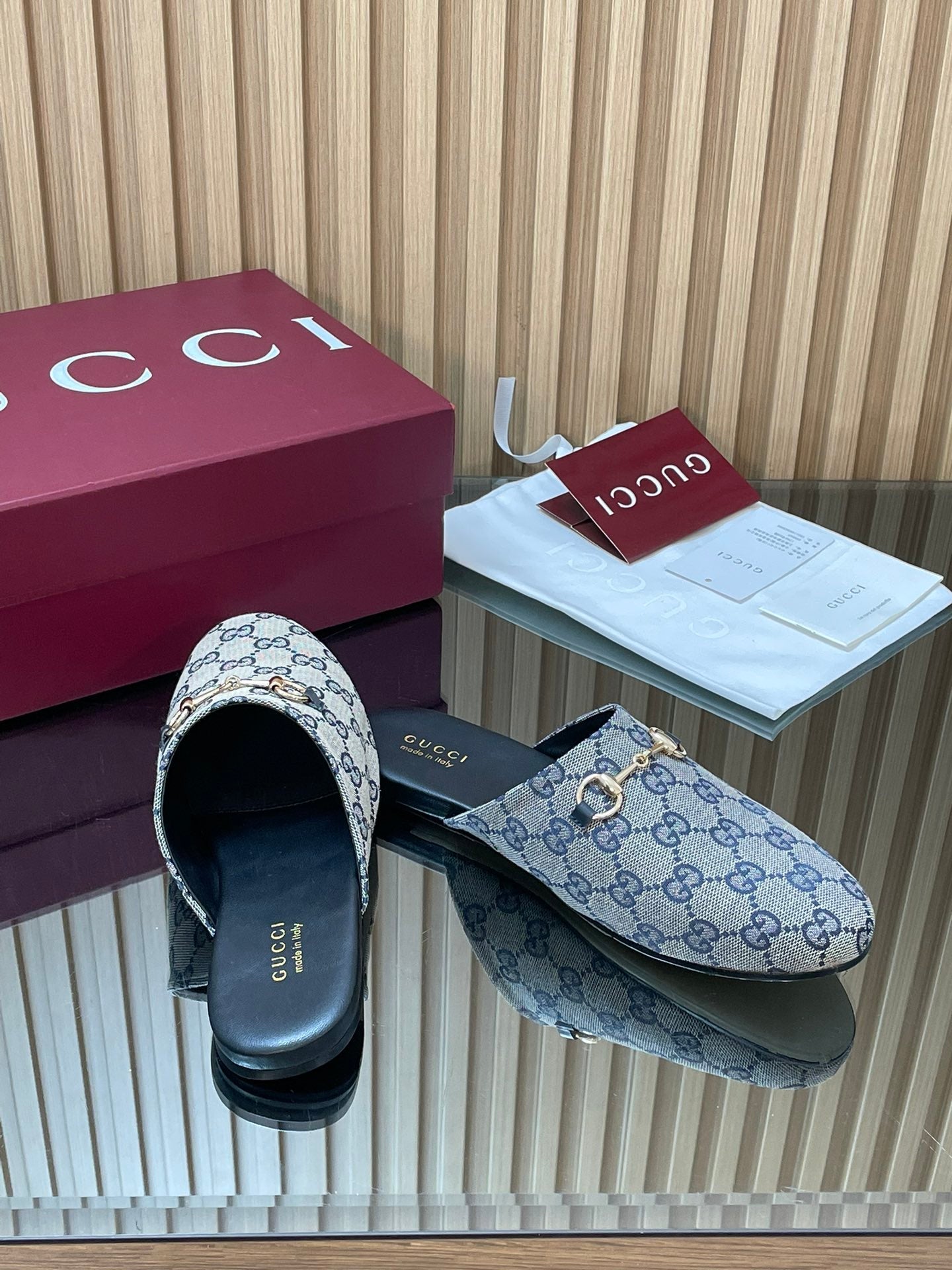 GG horsebit flat mules black cowhide 534713