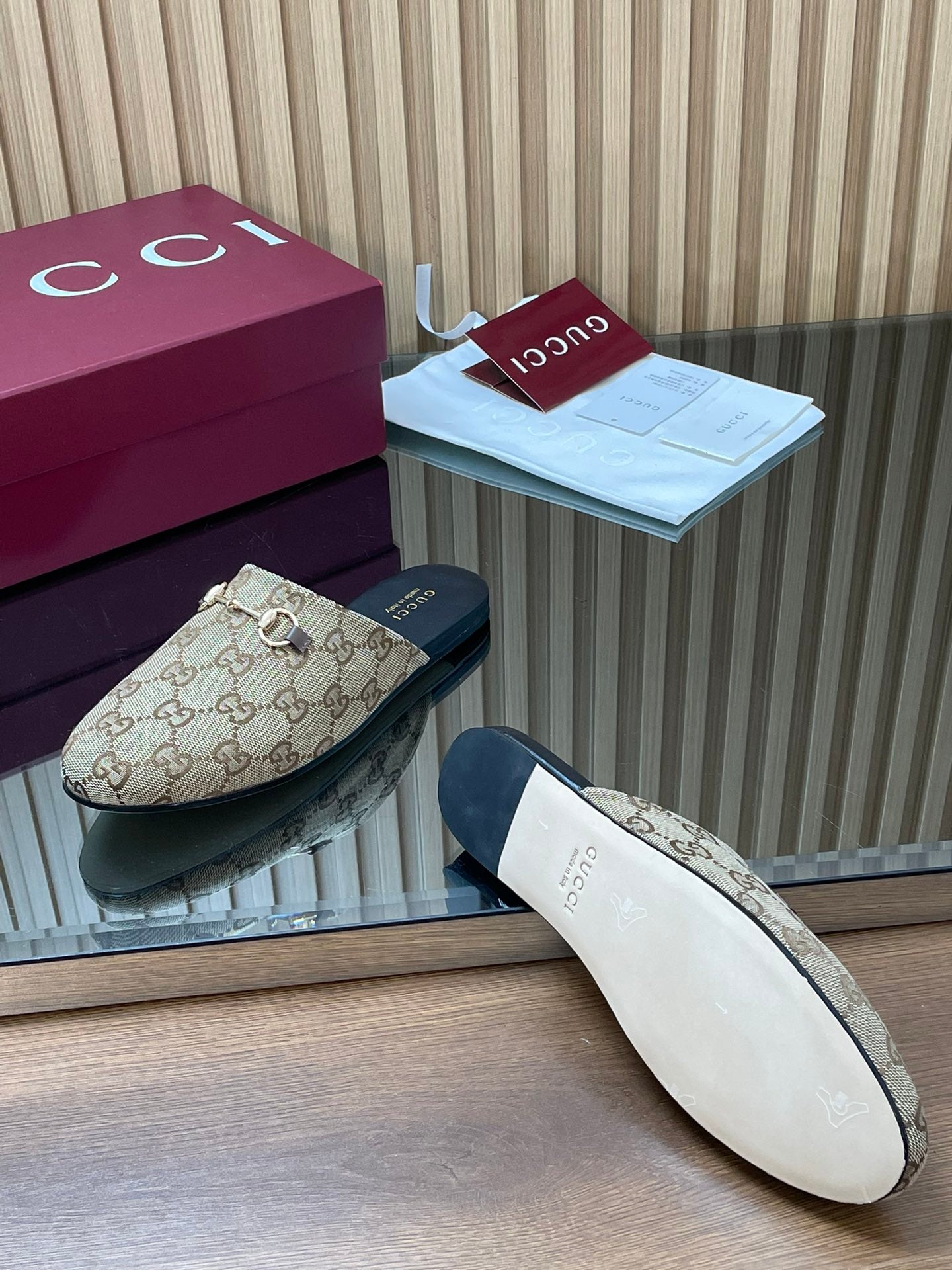 Gucci 25 Horsebit Mule Brown Beige GG Suede 563077