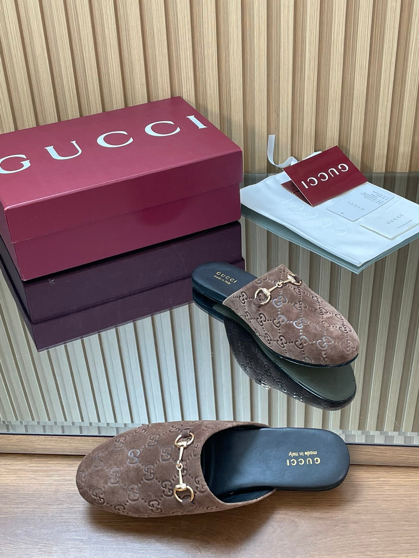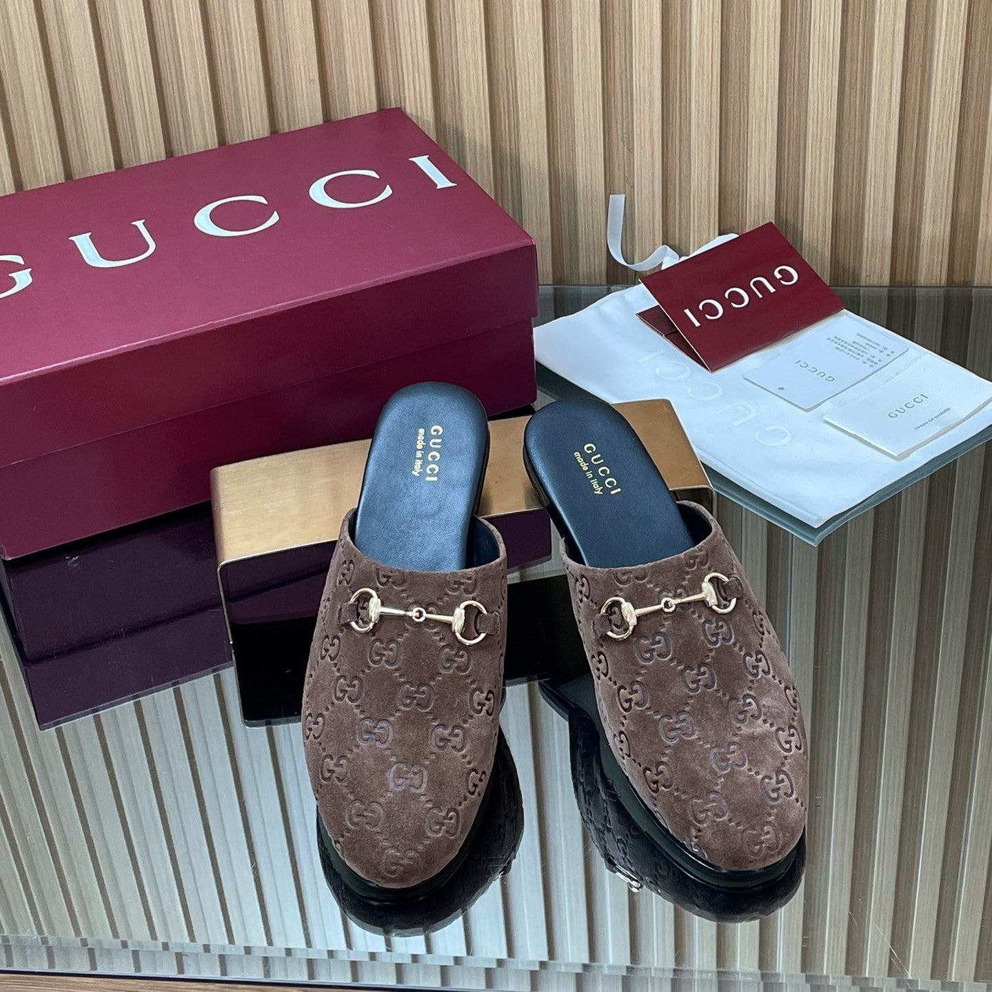 Gucci 25 Horsebit Coffee Brown Mule GG Suede 563081
