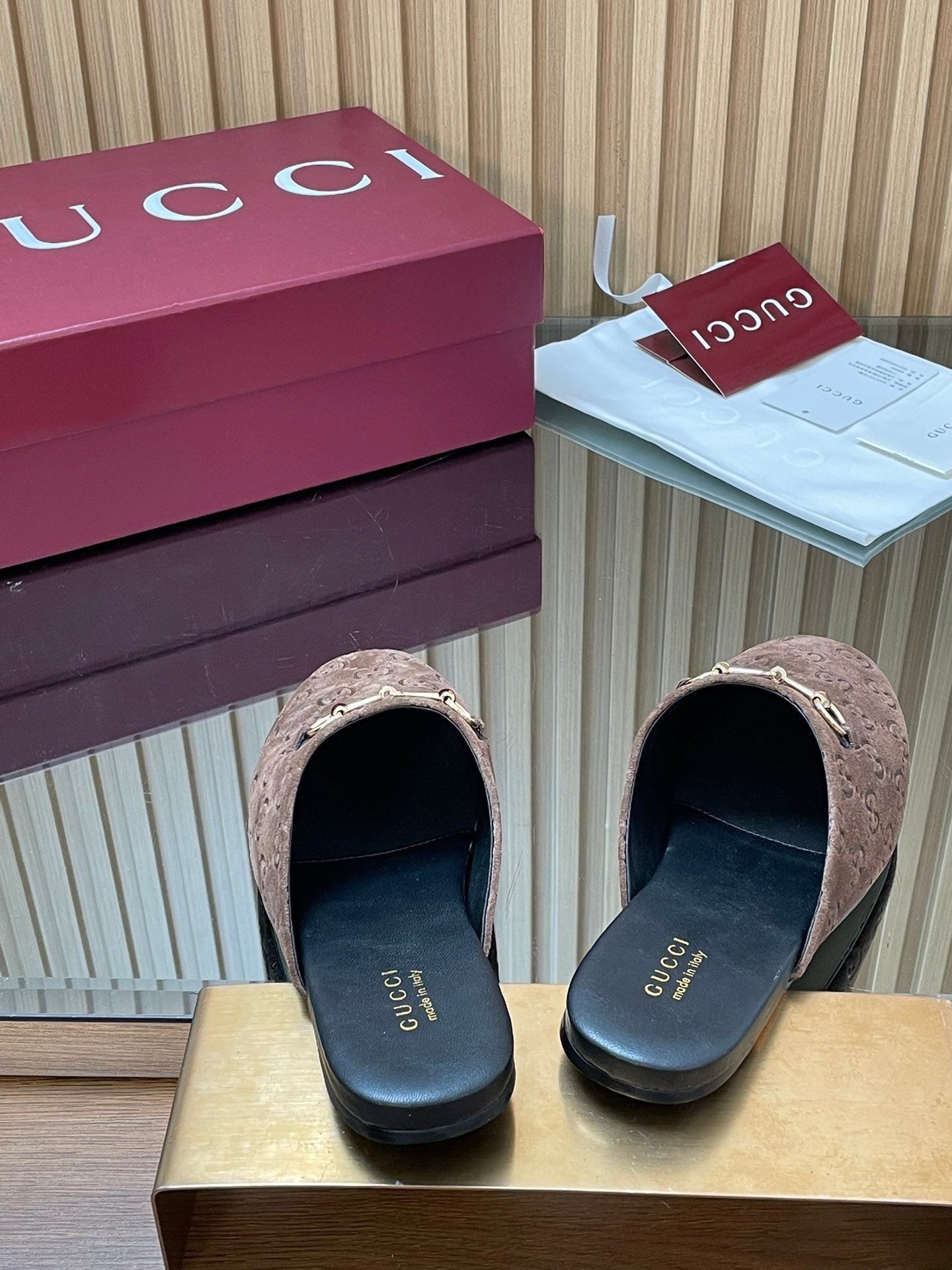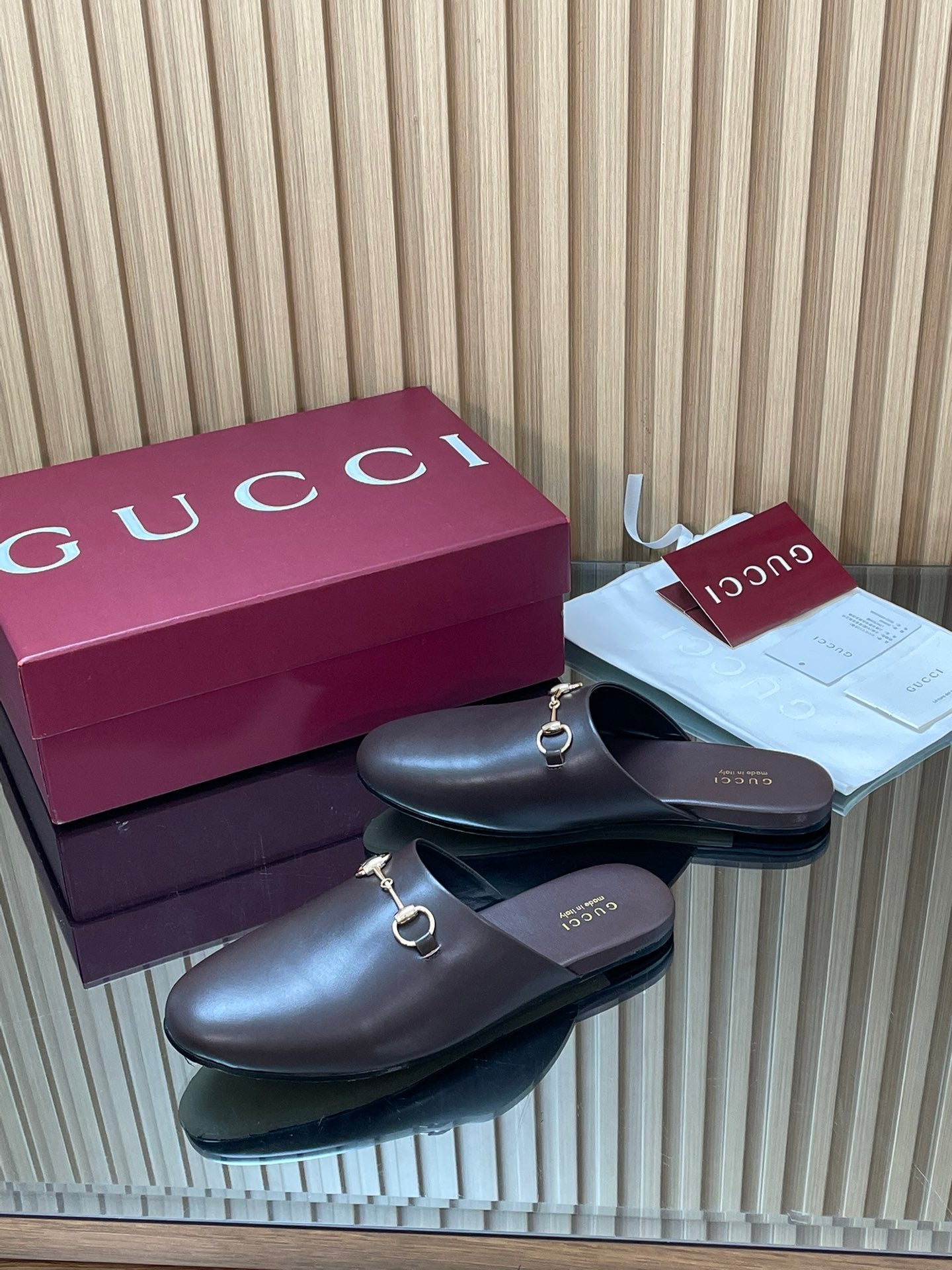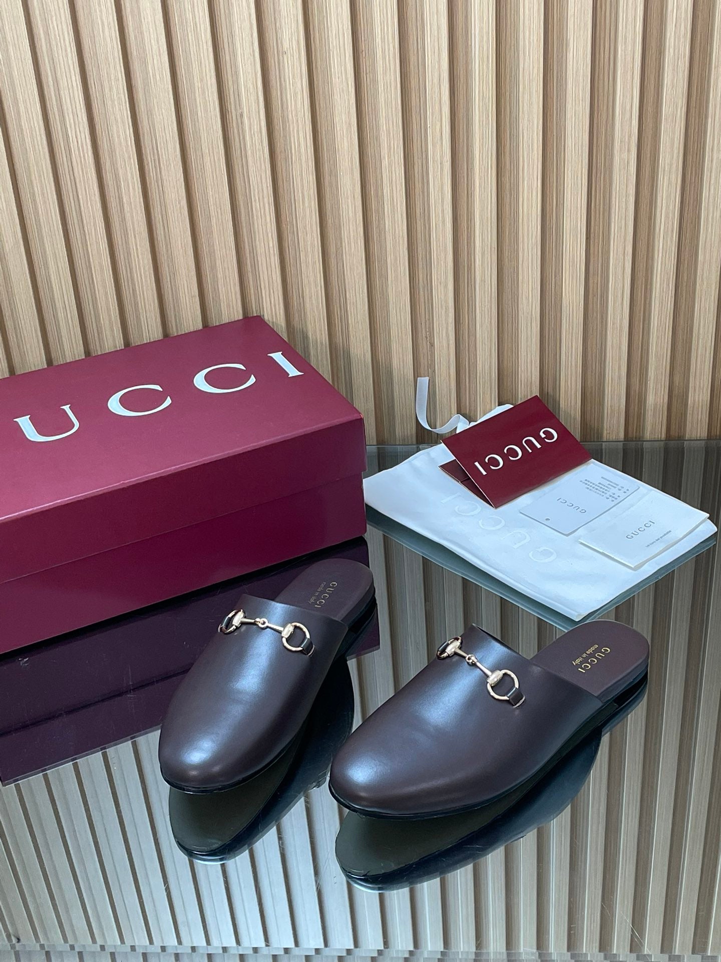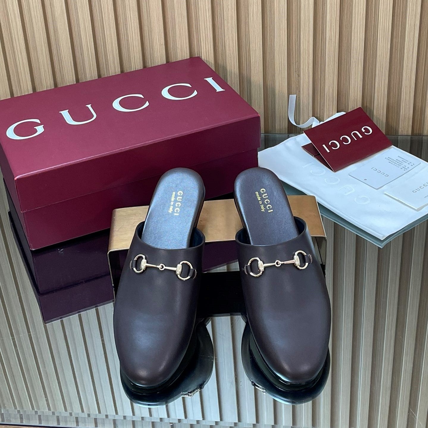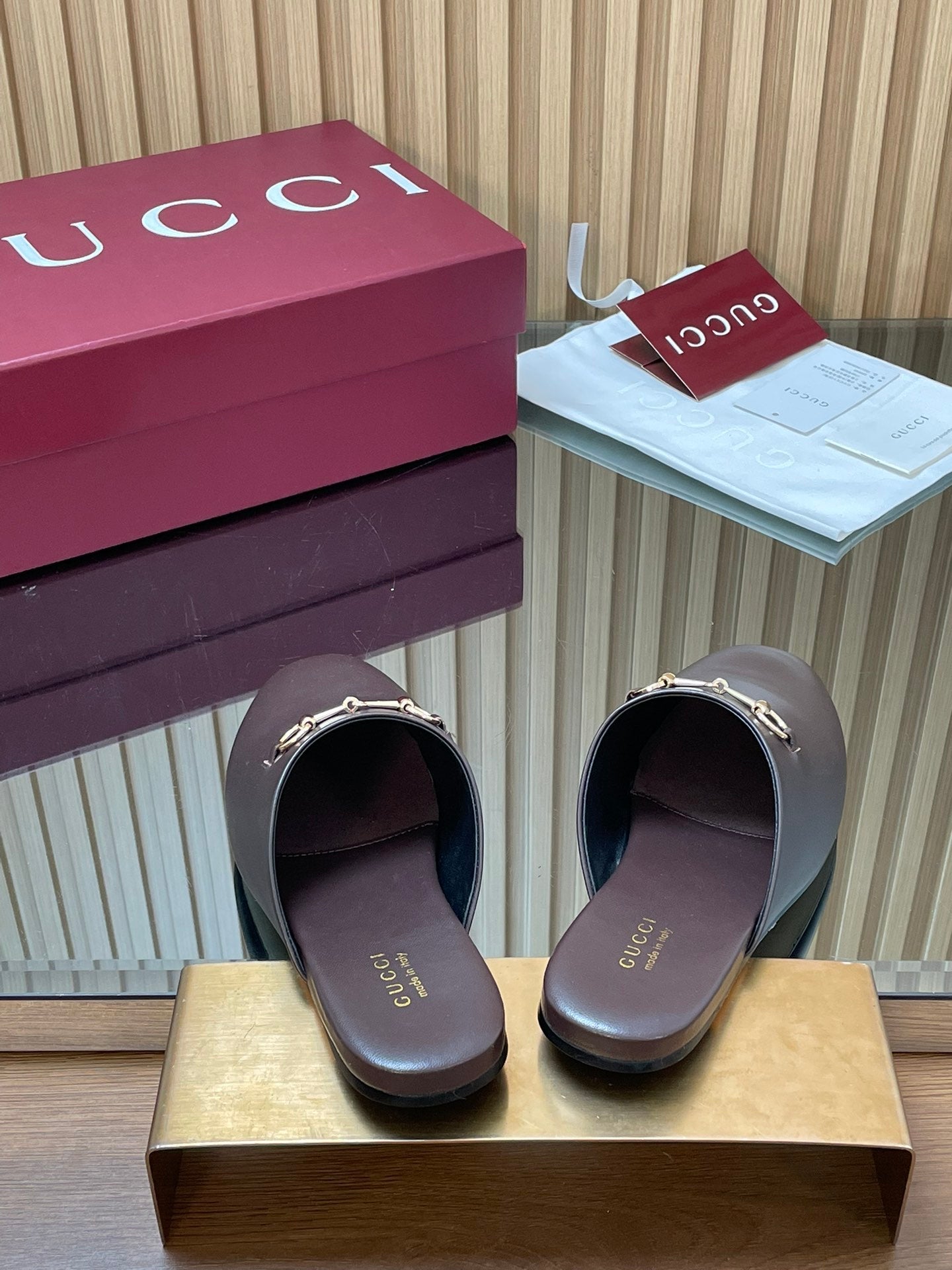 Gucci 25 Horsebit Mule Dark Brown Gold Cowhide 563085