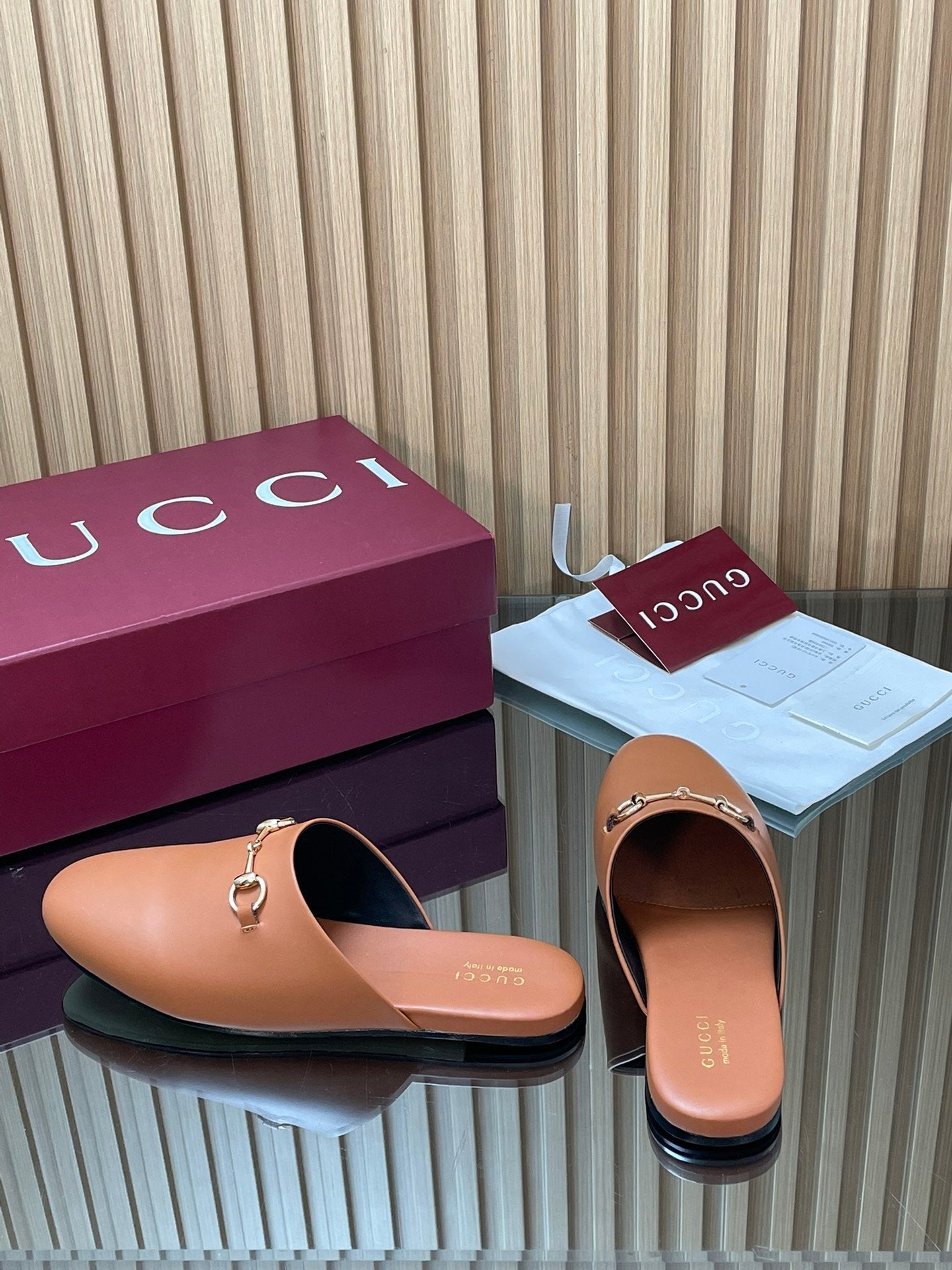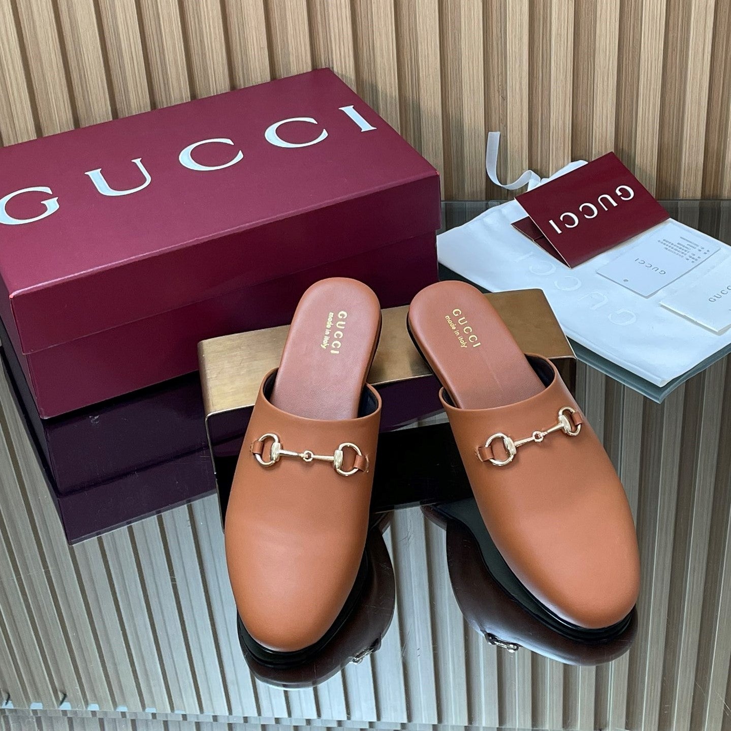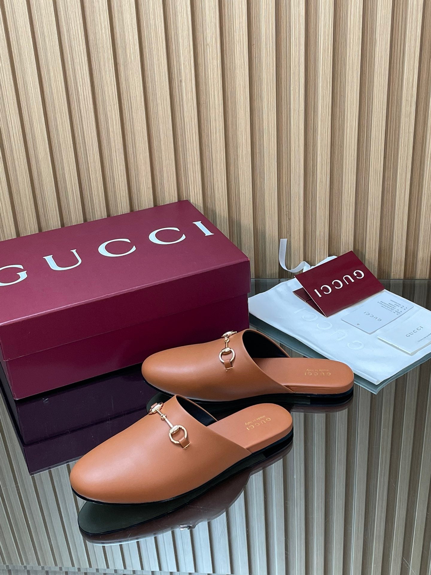 Gucci 25 Horsebit Mule Light Brown Gold Cowhide 563083