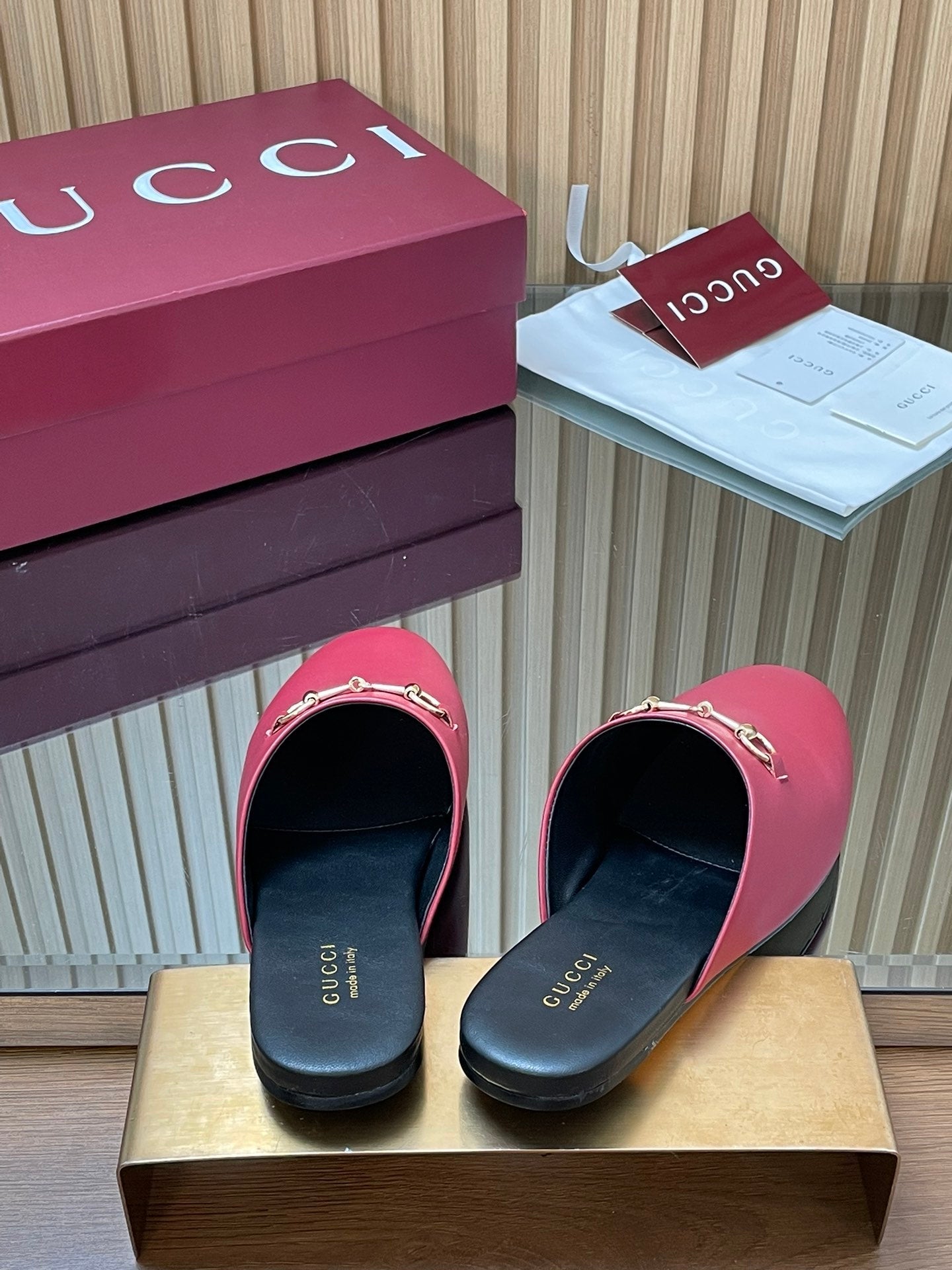 Gucci 25 Horsebit Mule Red Gold Cowhide 563084