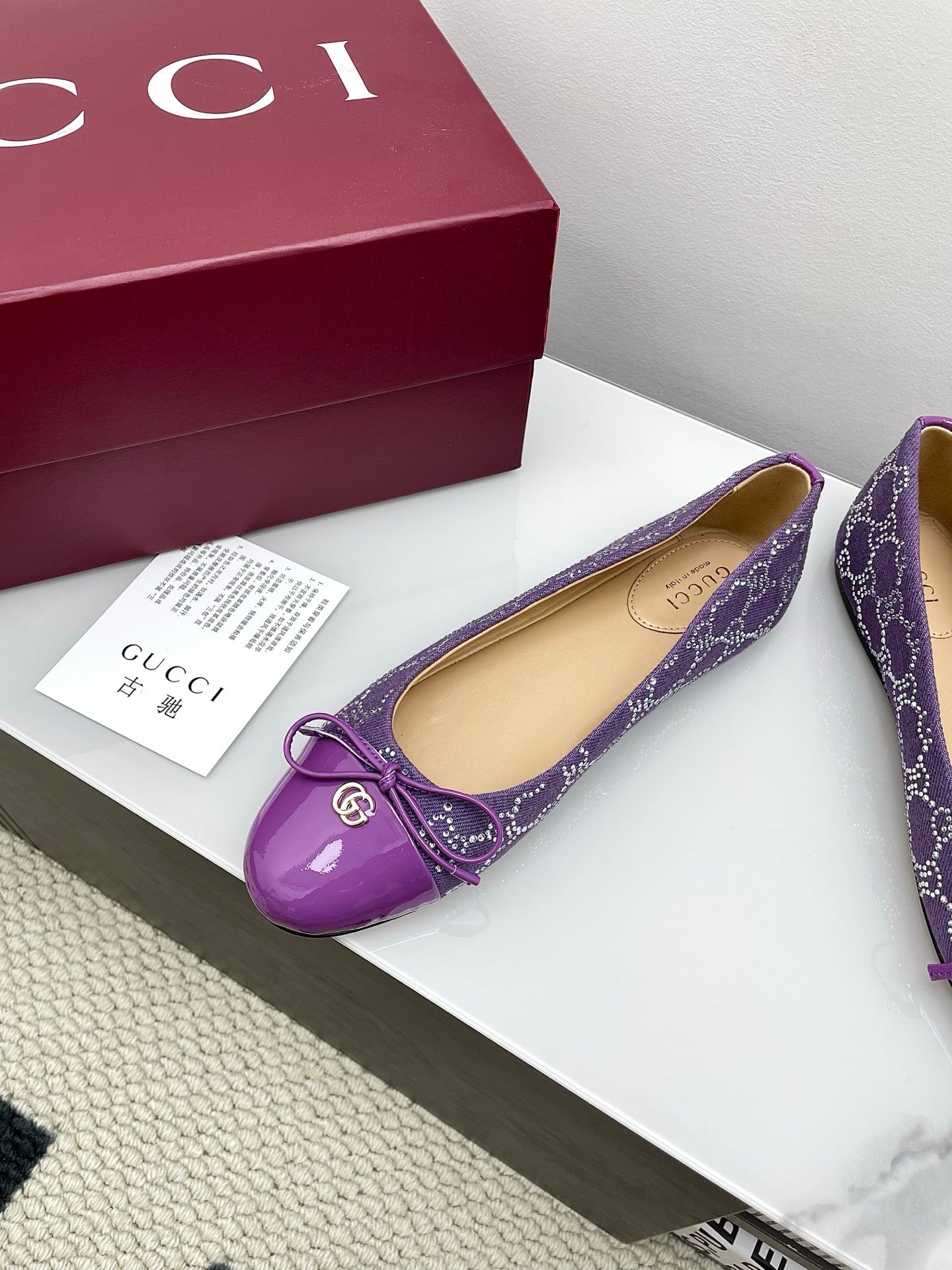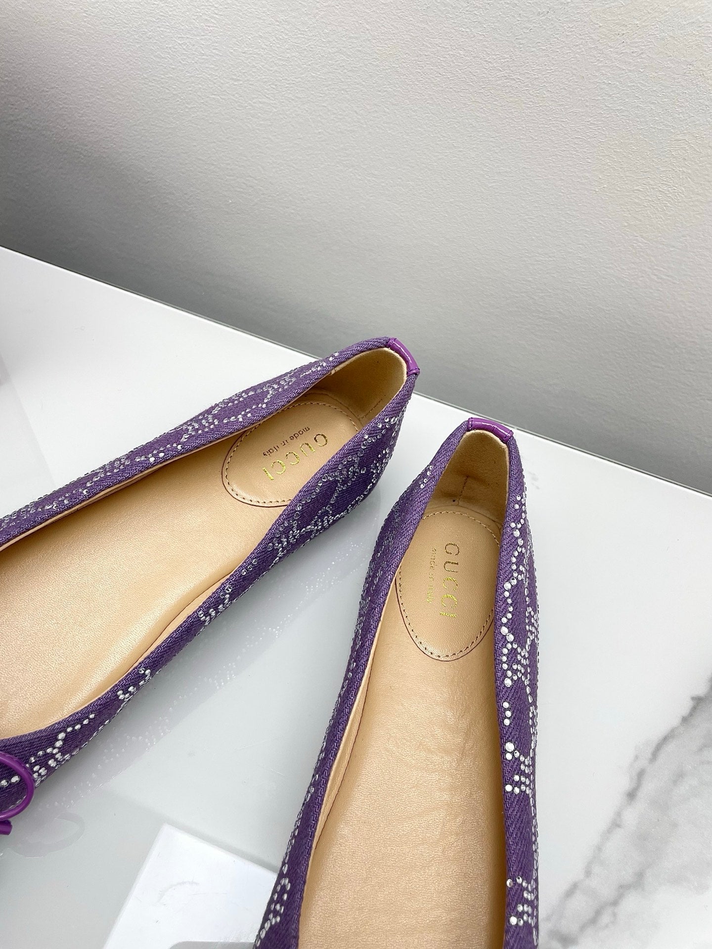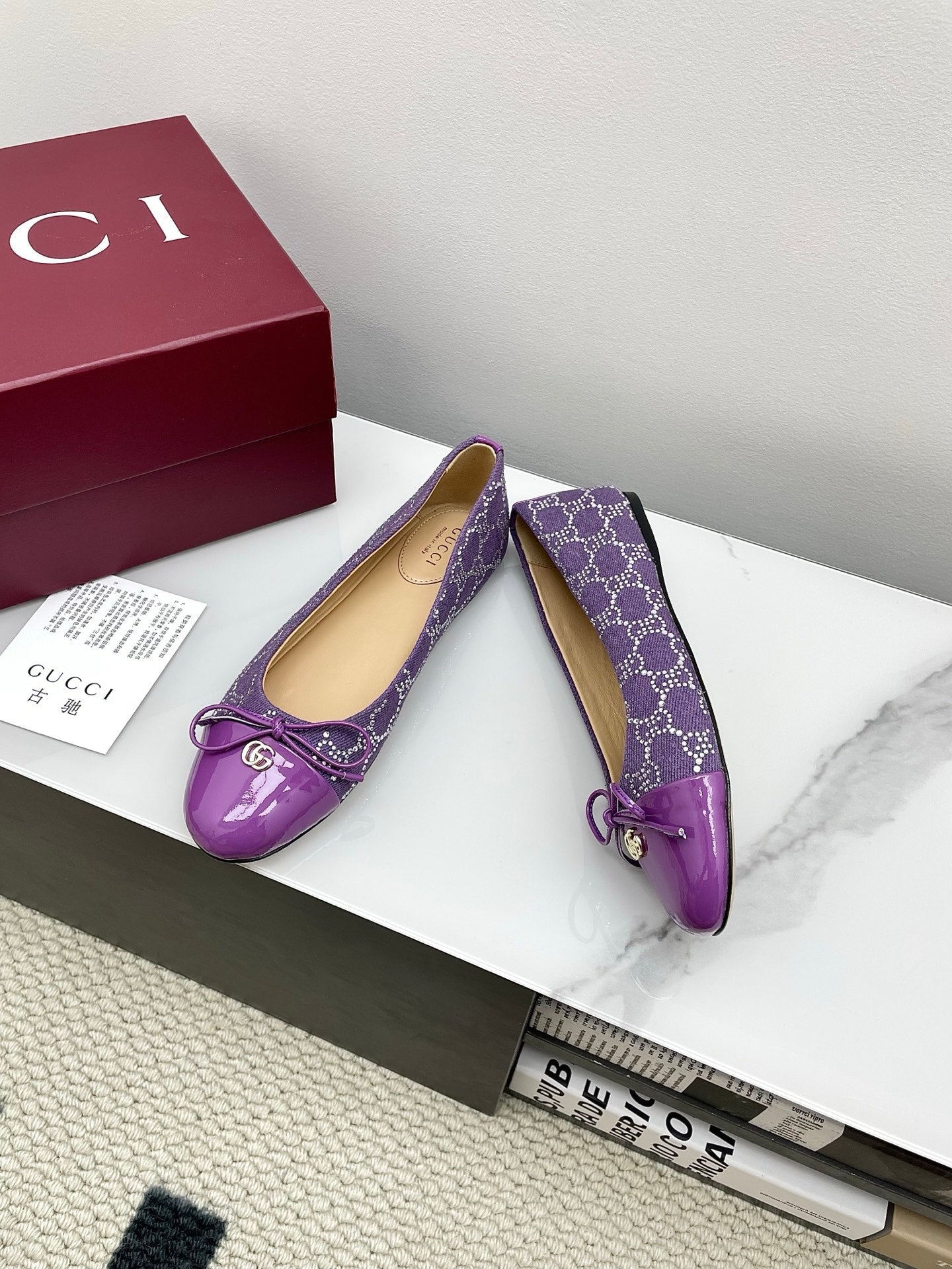 GG Women's Crystal Ballet Flat Purple Denim Patent Leather Trim 511493