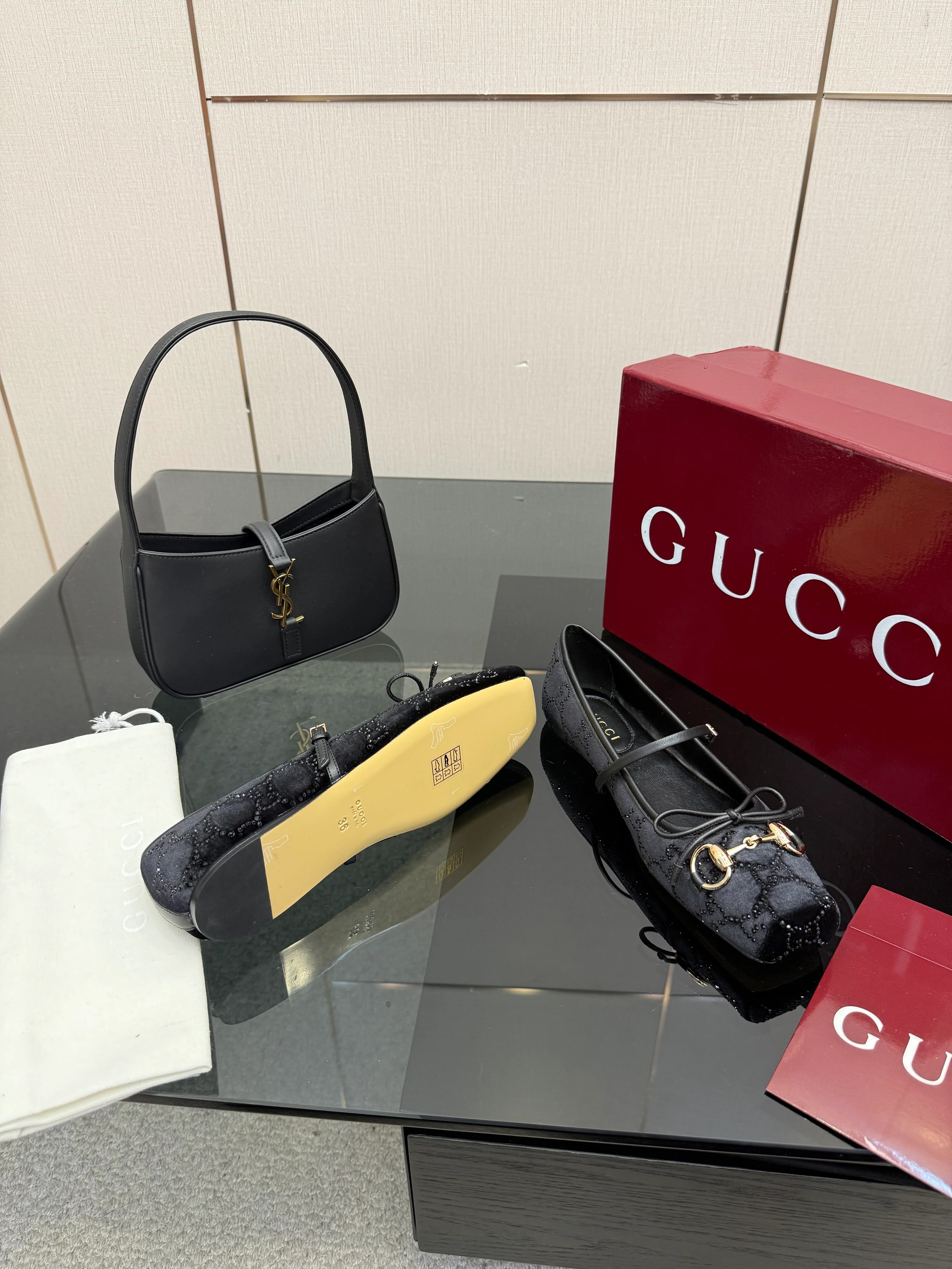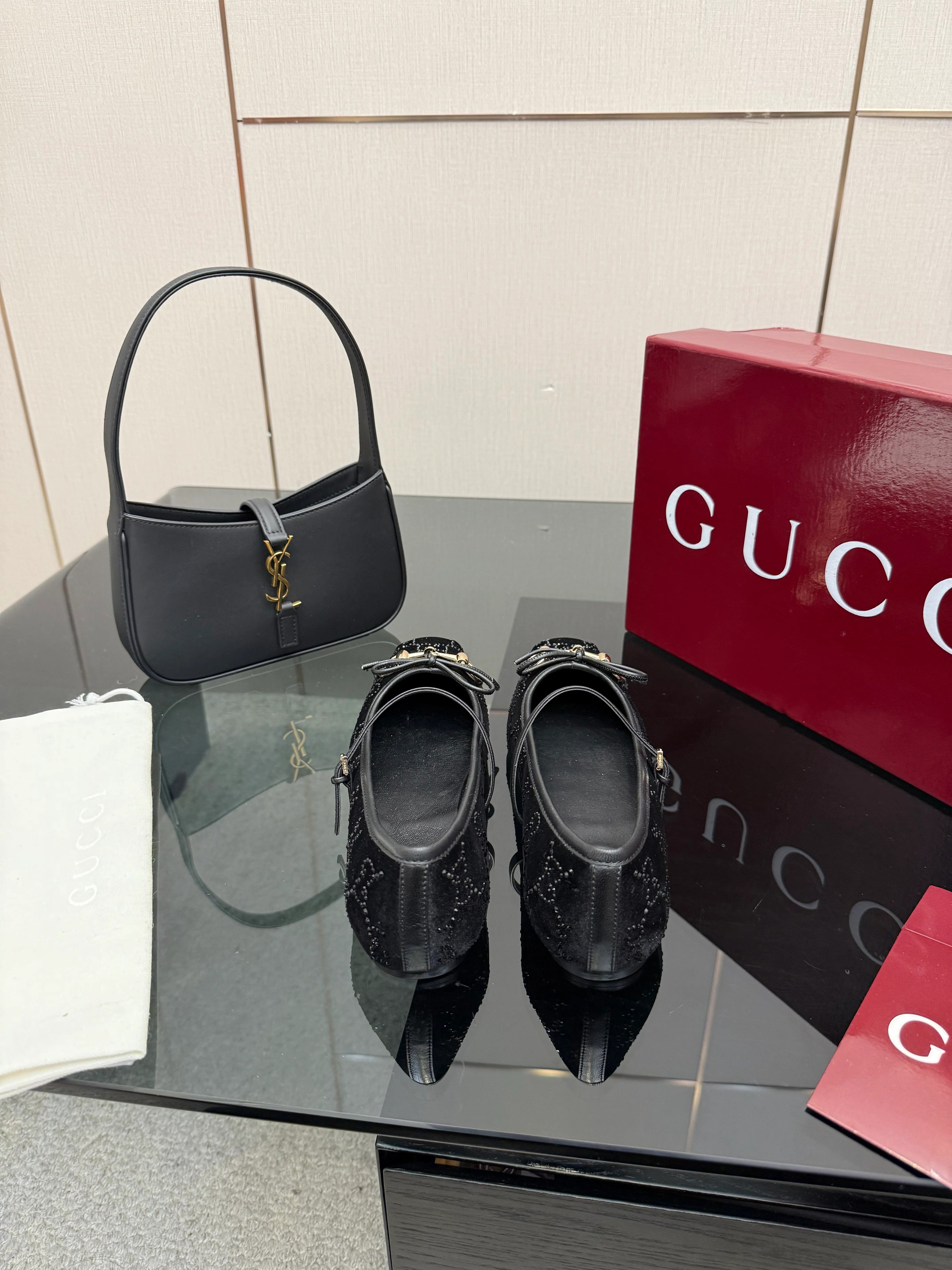 Gucci 26 Ballet Full Black Calfskin Wool 562991