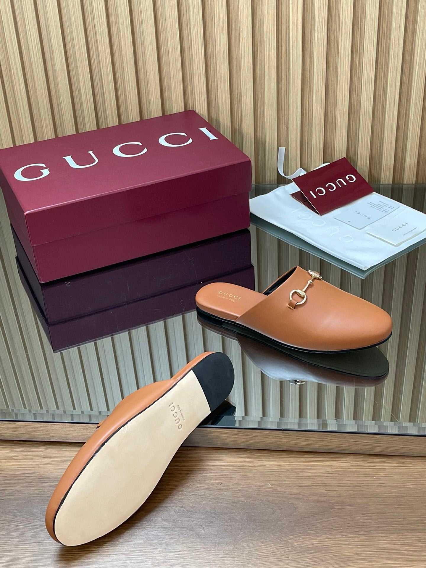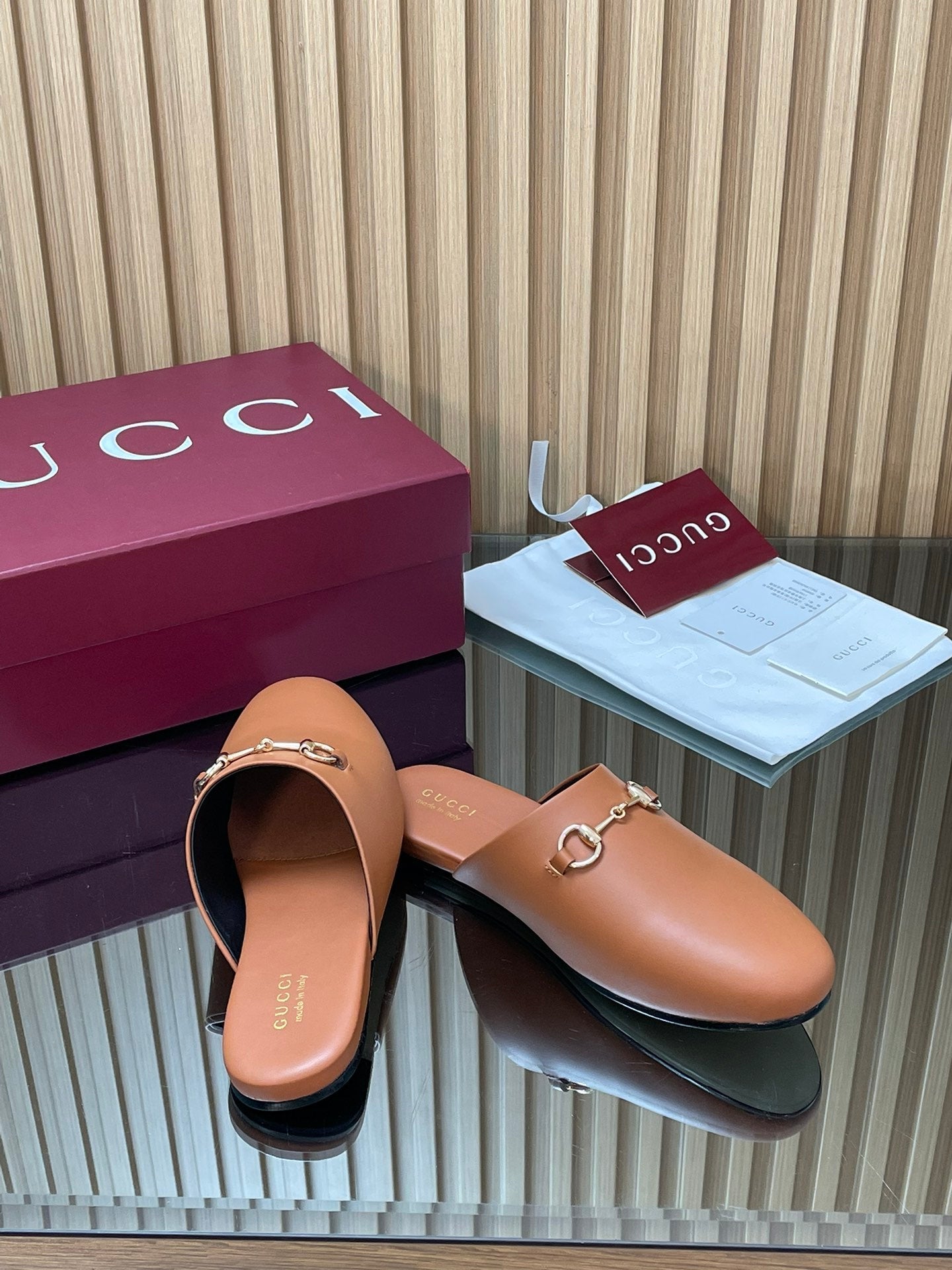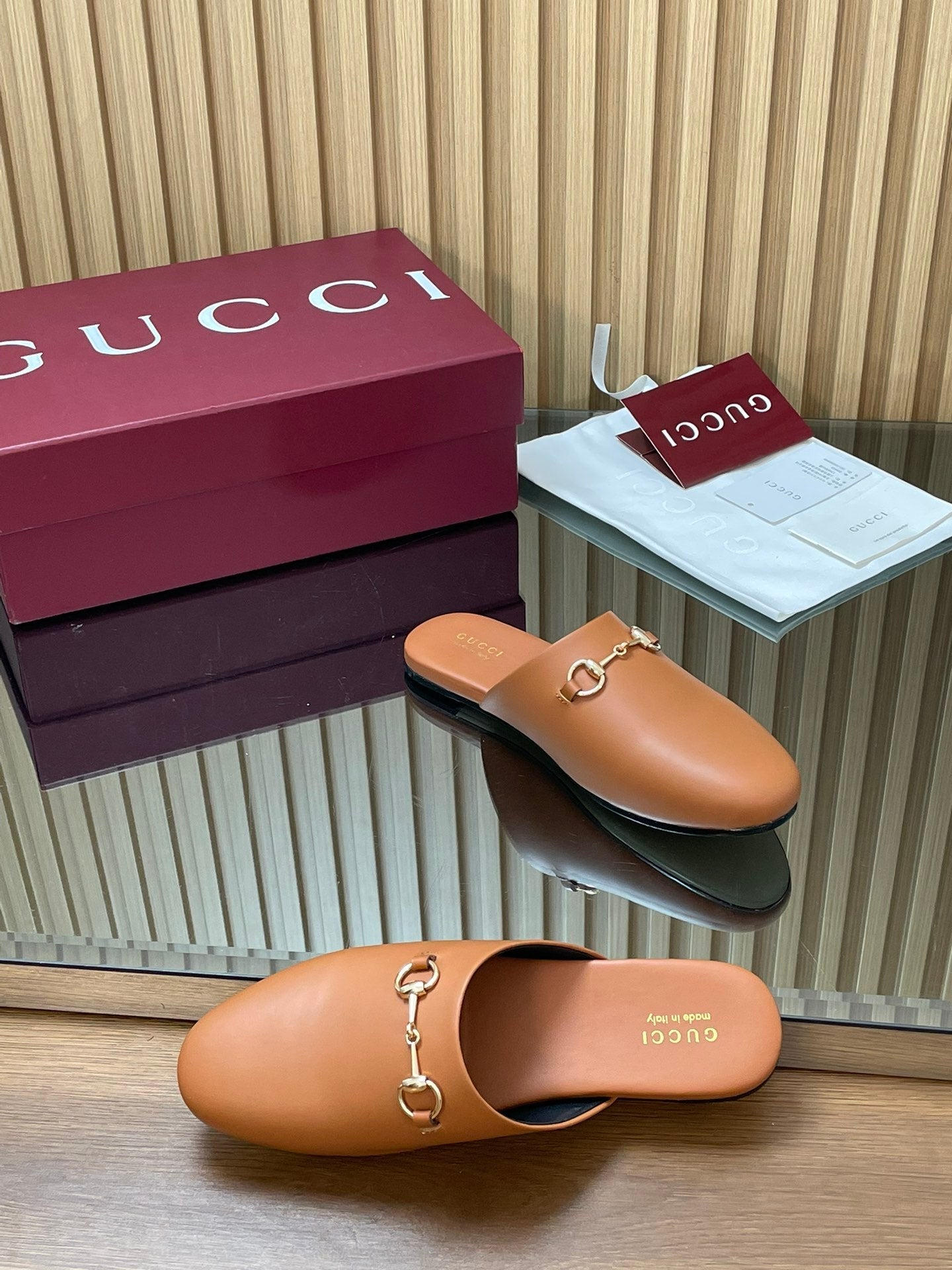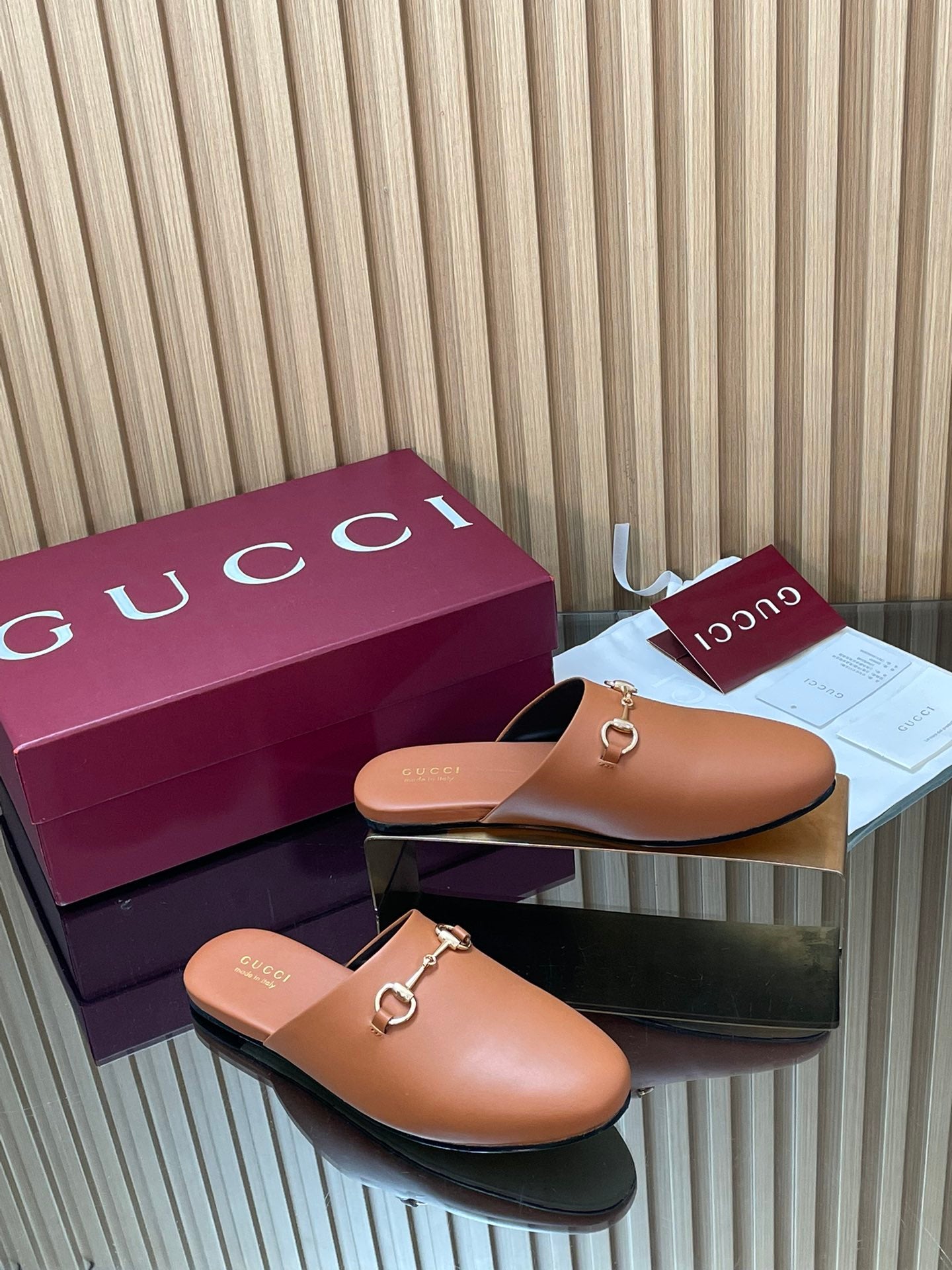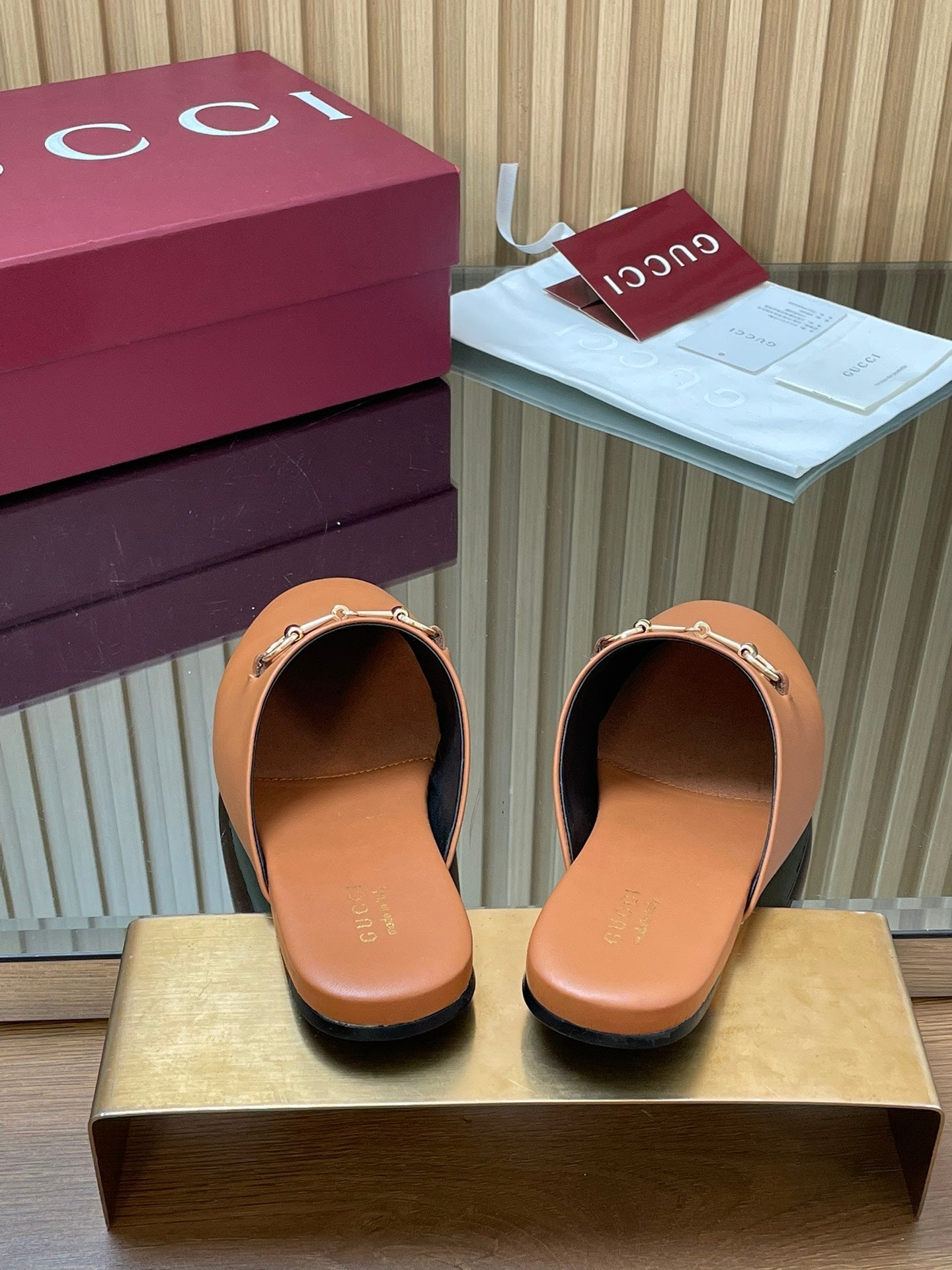 Gucci 25 Horsebit Mule Light Brown Gold Cowhide 563083