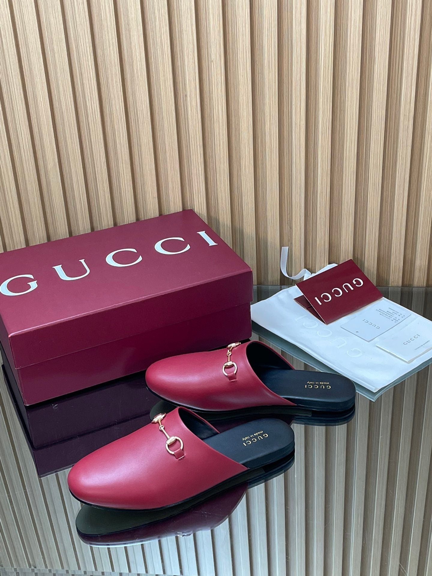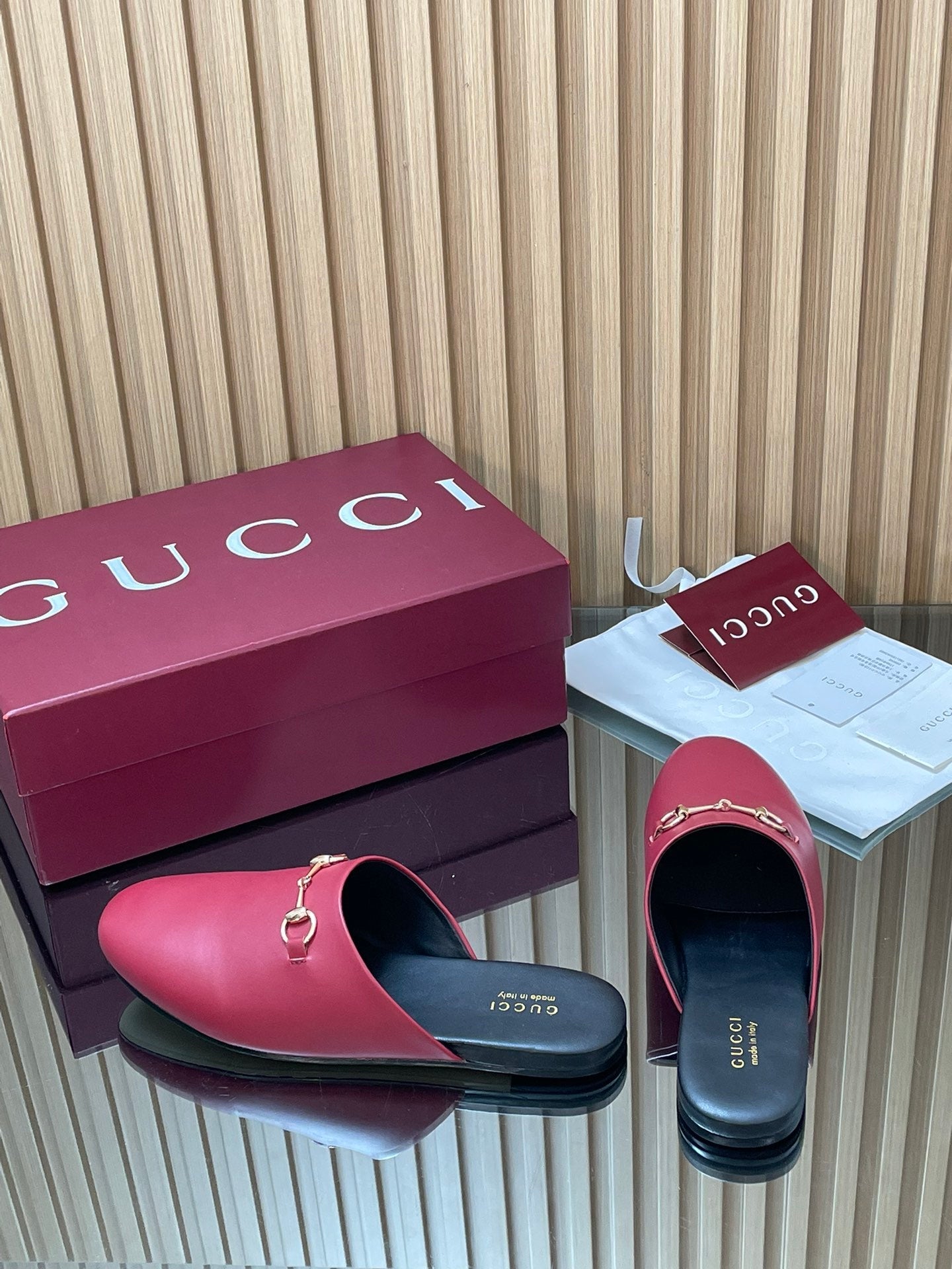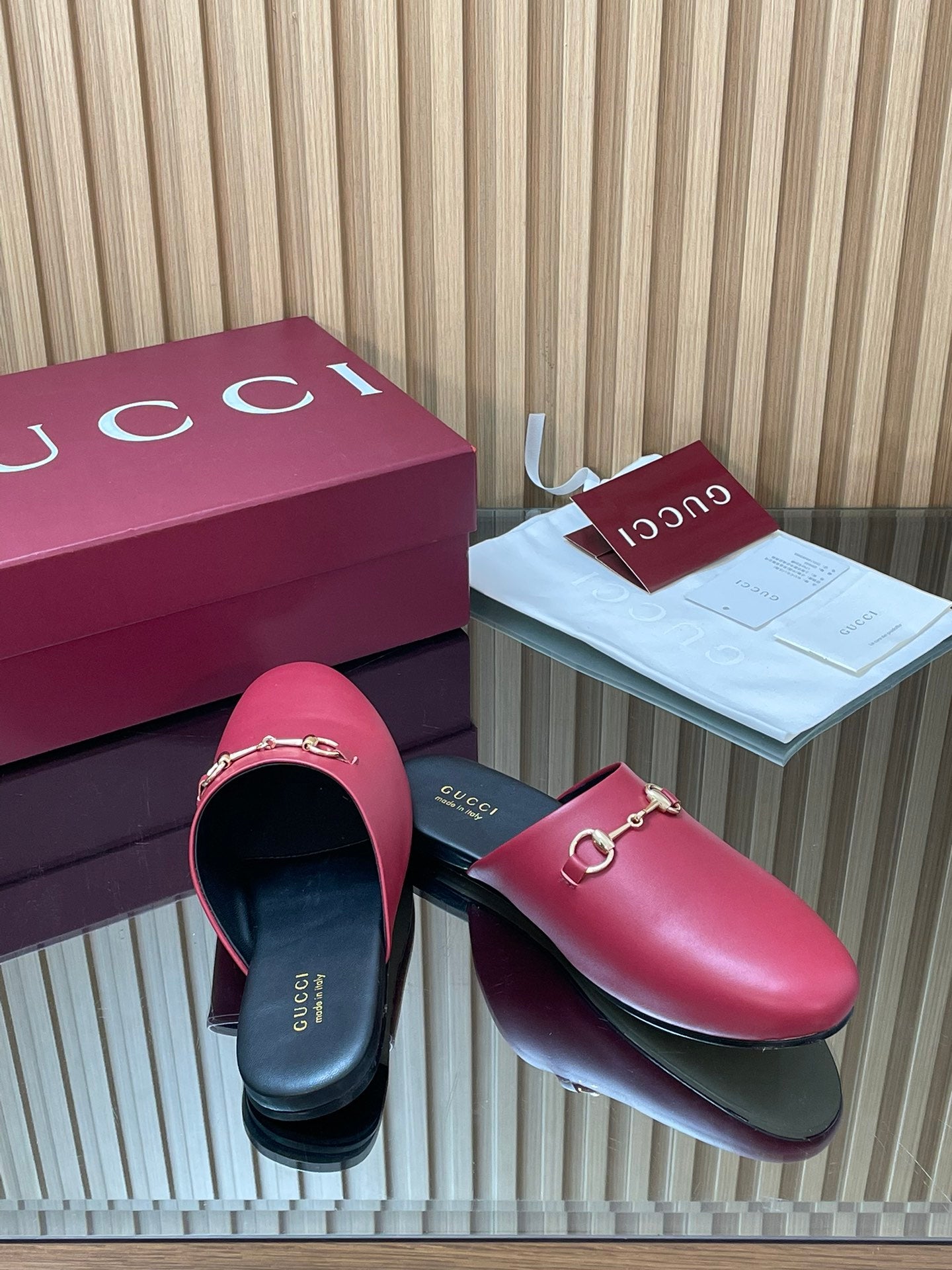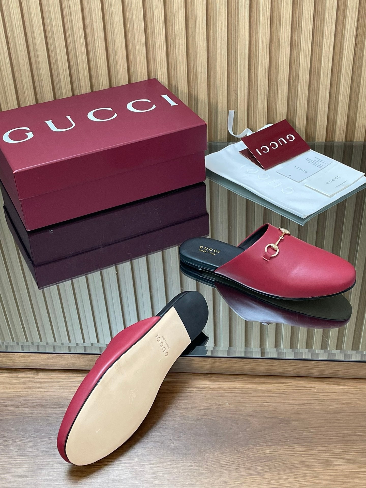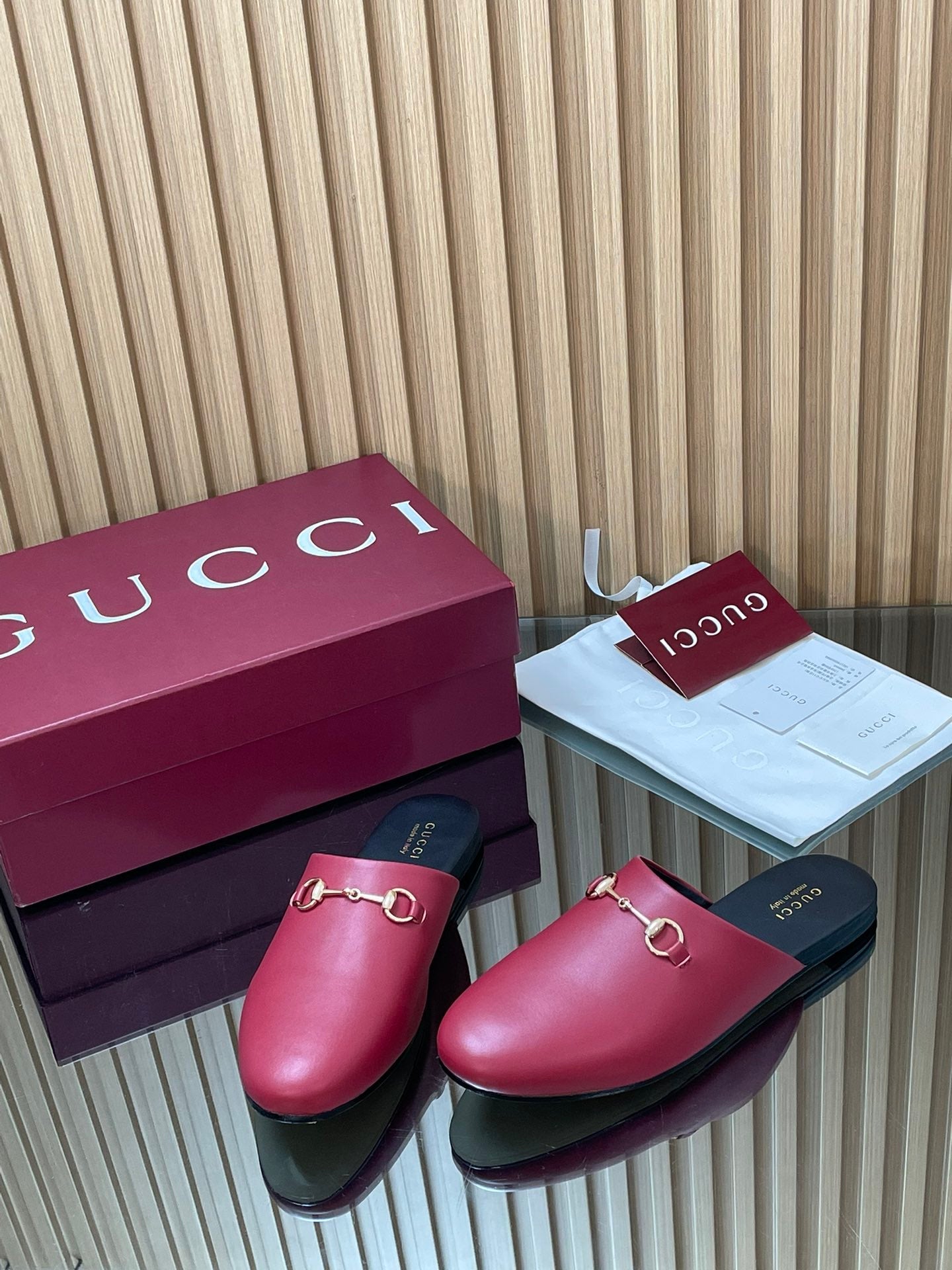 Gucci 25 Horsebit Mule Red Gold Cowhide 563084