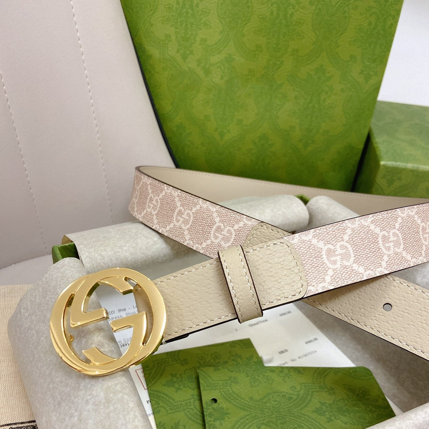 GC BELT GOLD BUCKLE IN GG SINK LEATHER 4.0CM