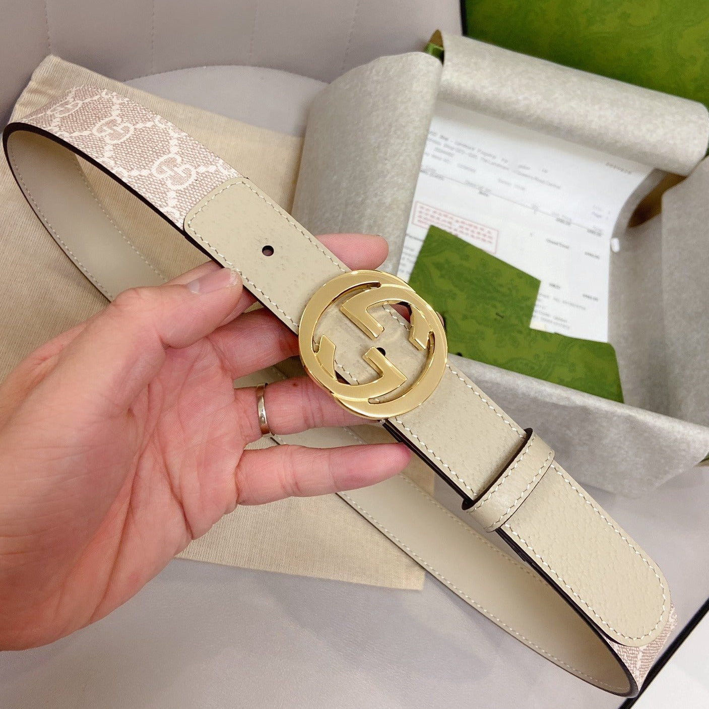 GG BELT DOUBLE G BUCKLE CANVAS FABRIC WIRE 3.8CM