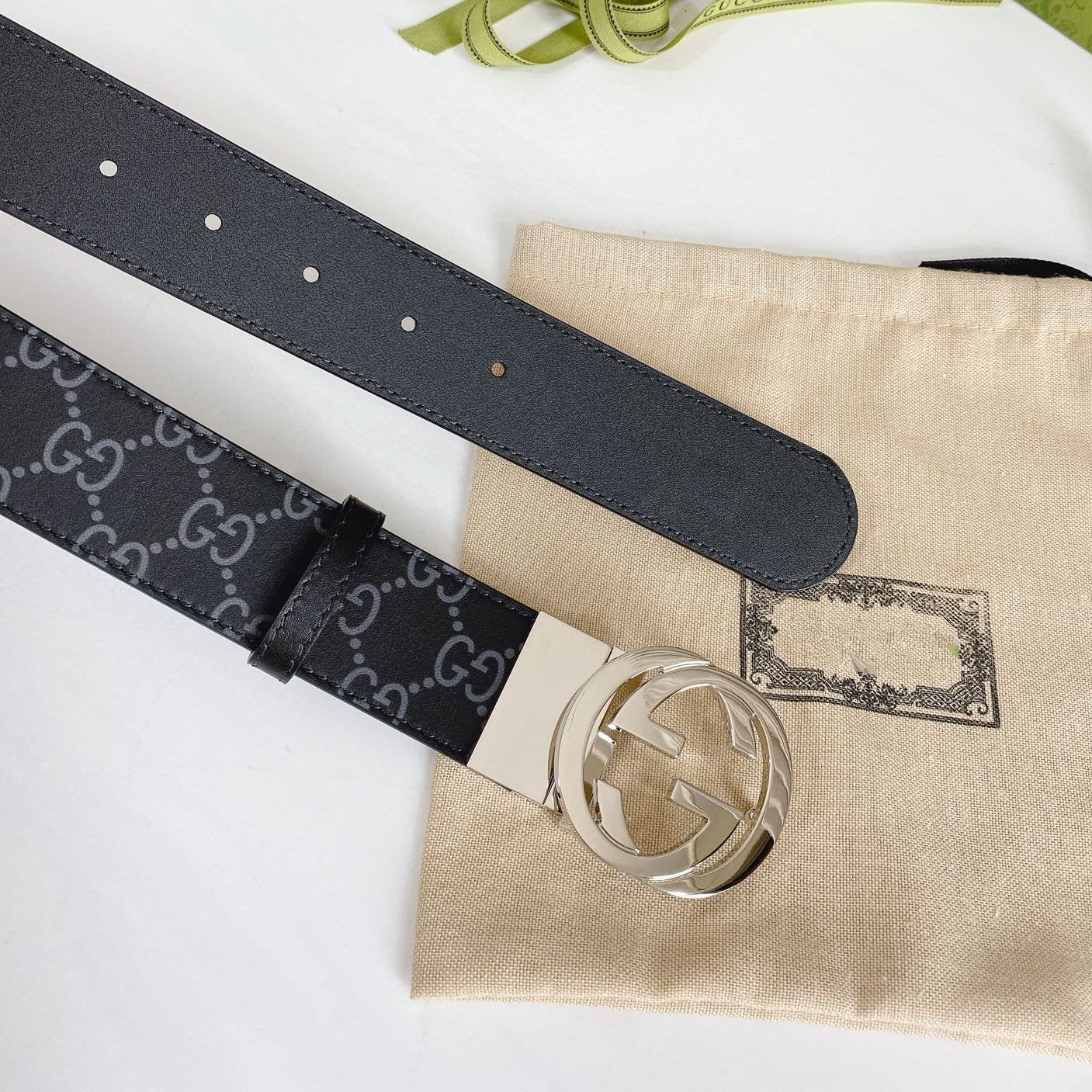 GC BELT SILVER BUCKLE BACK LEATHER 4.0CM
