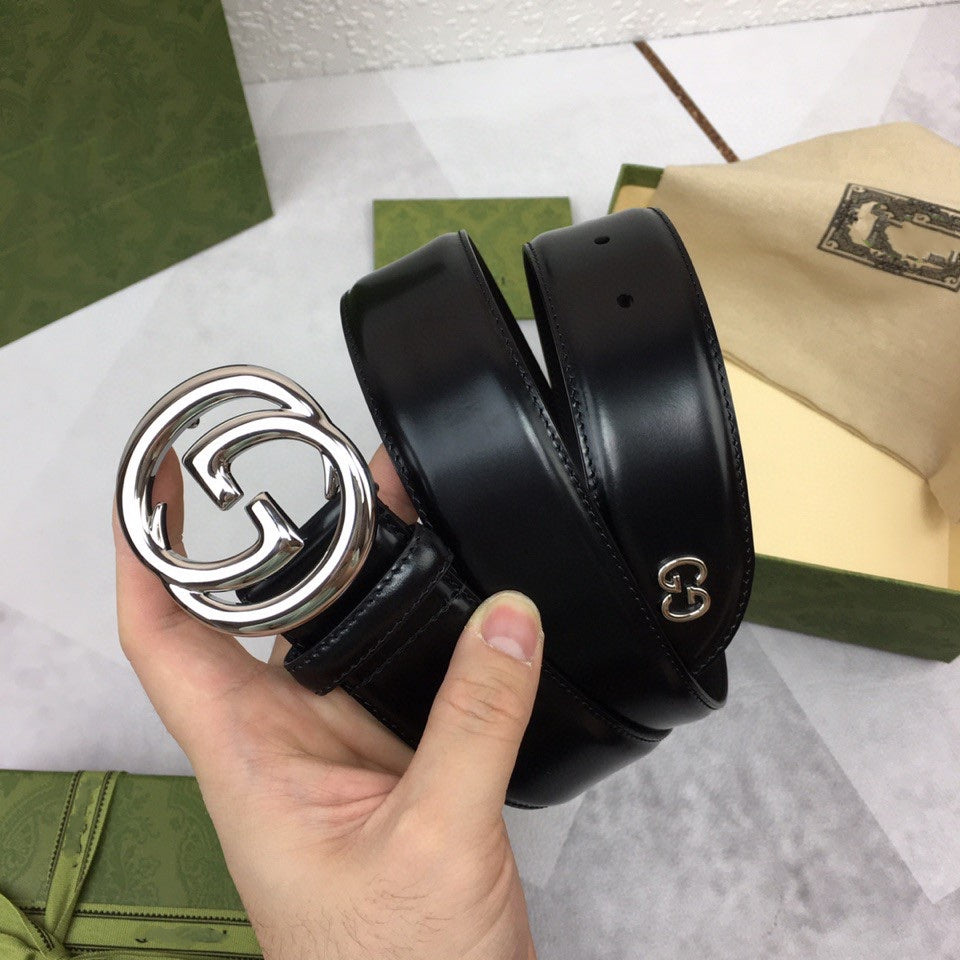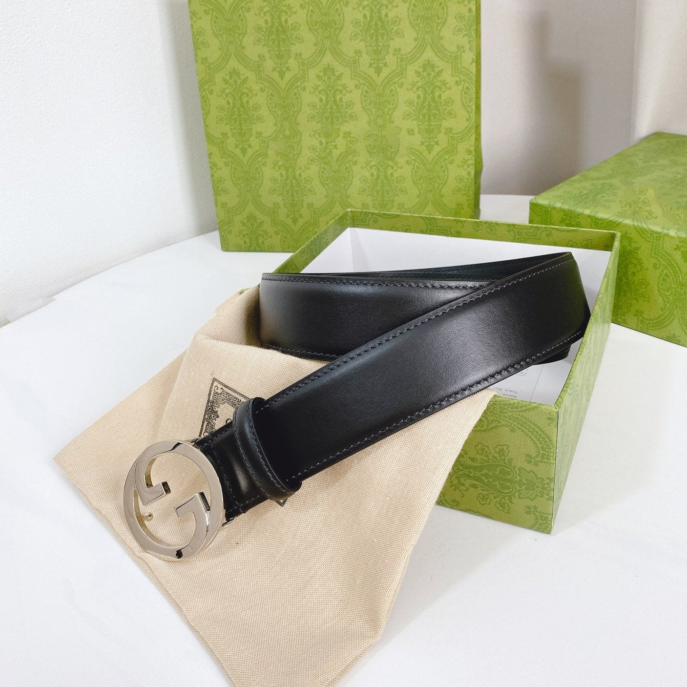 GG BELT INTERLOCKING G BUCKLE BLACK LEATHER