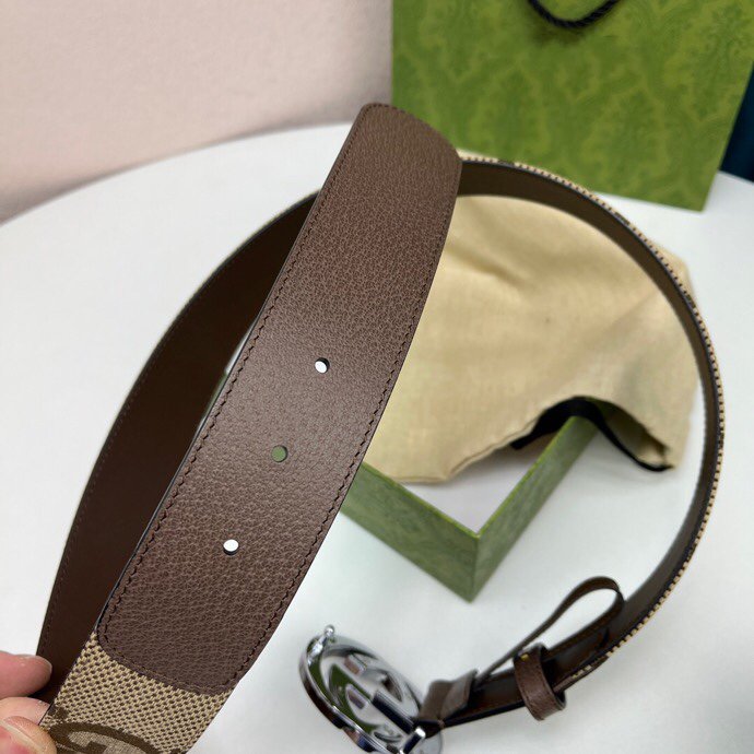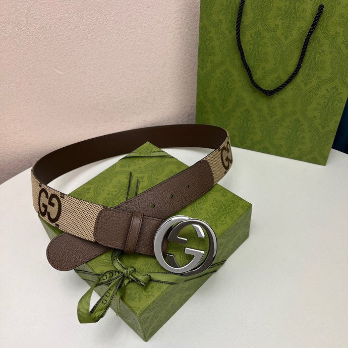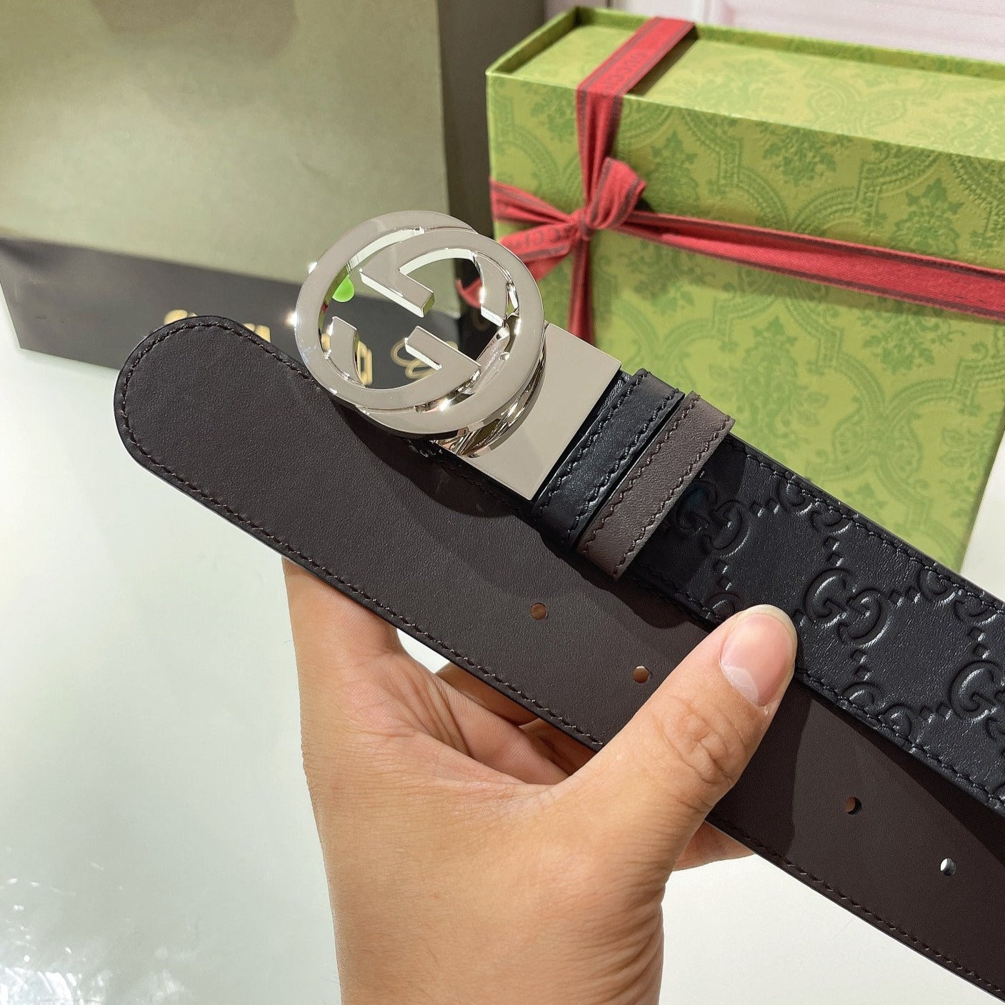 GC BELT SILVER BUCKLE IN GG SINK LEATHER 4.0CM