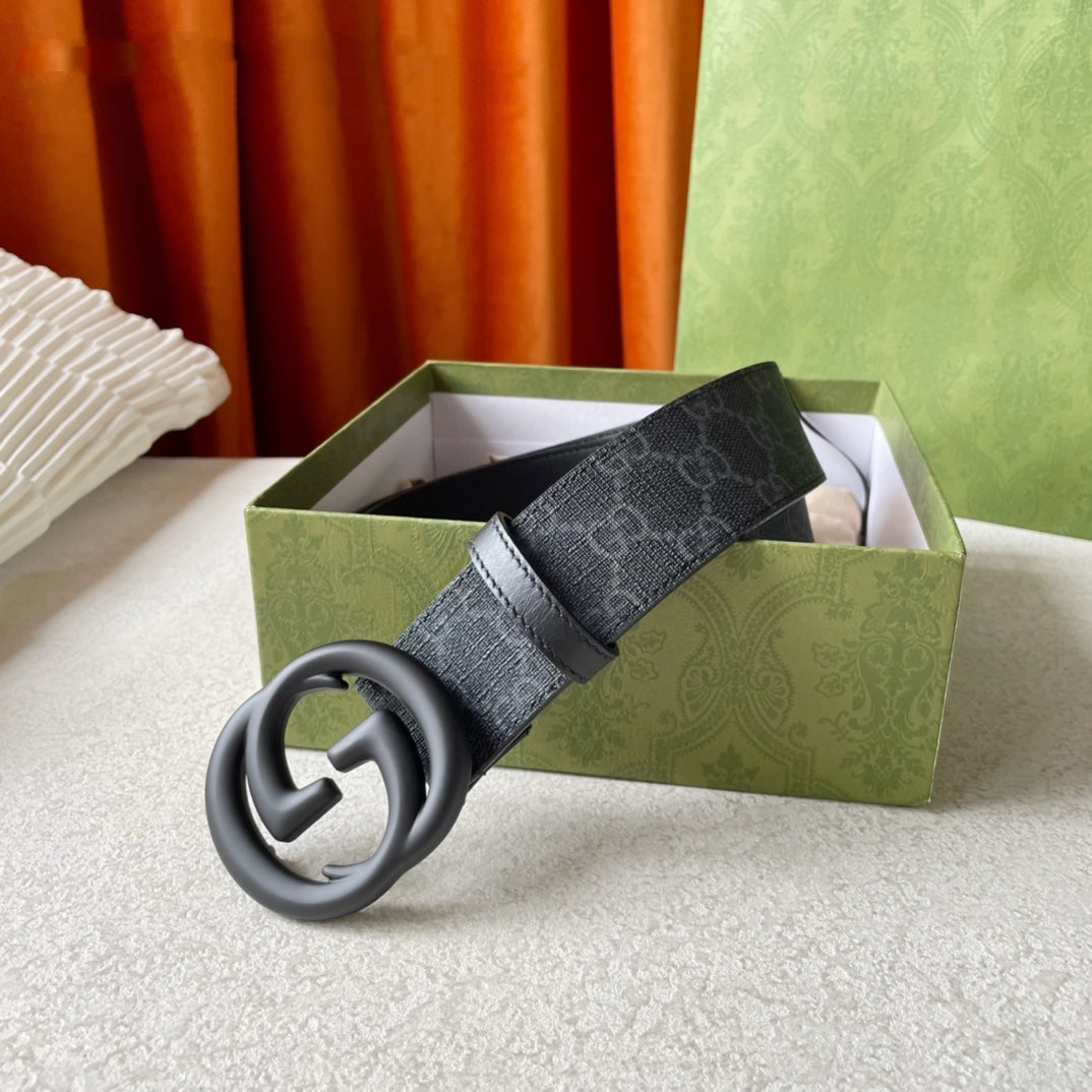 INTERLOCKING G GREY BUCKLE 38MM BLACK LEAHTER MONOGRAM