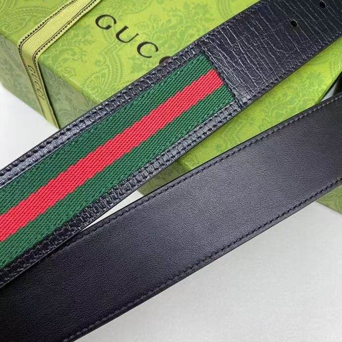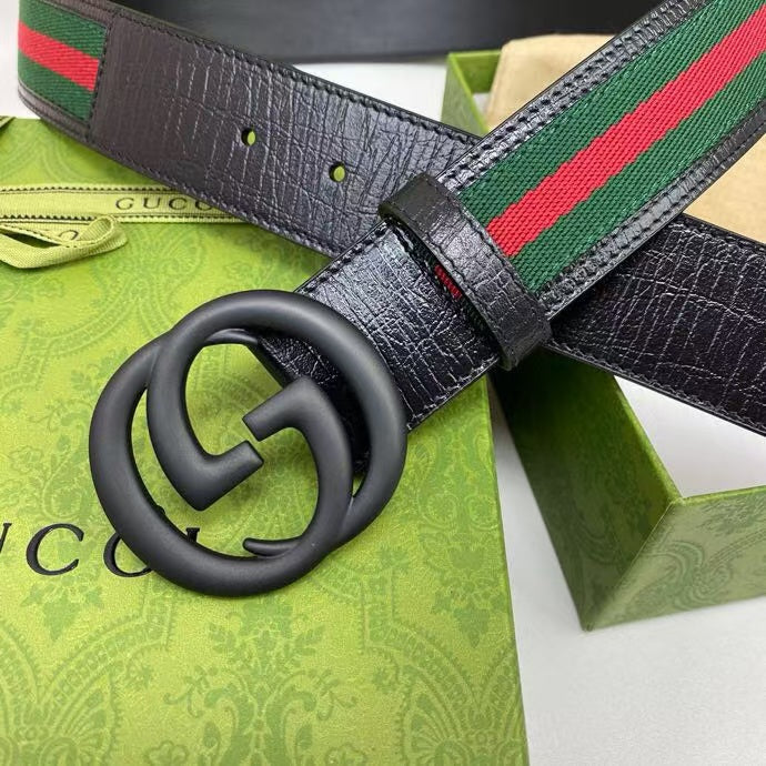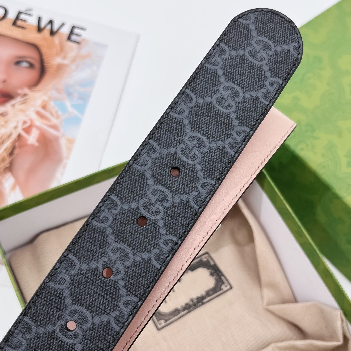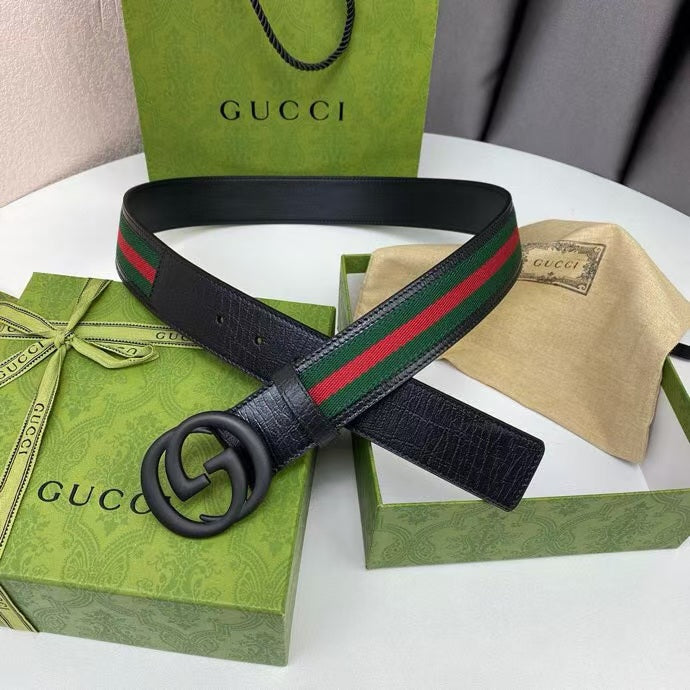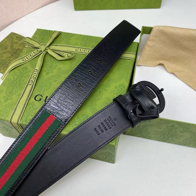 GG BELT DOUBLE BLACK G BUCKLE CANVAS FABRIC WIRE 3.8CM