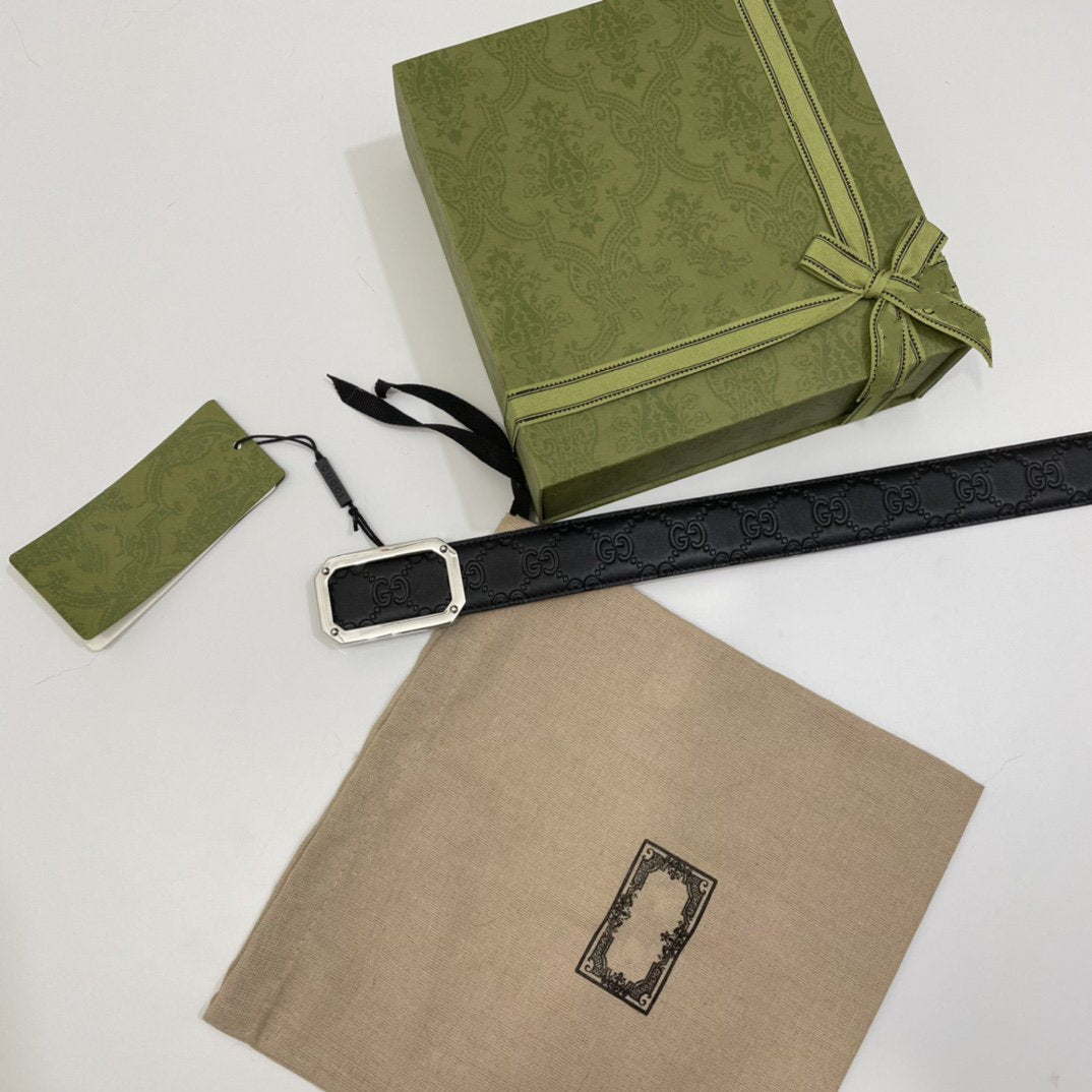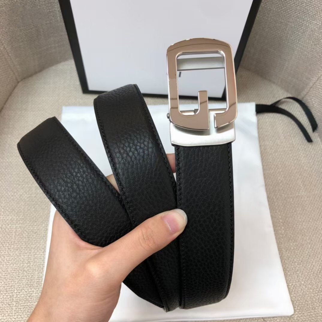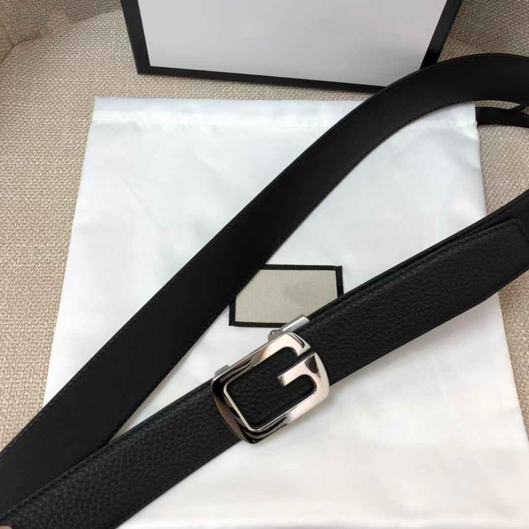 G BELT SILVER SQUARE INSTALL BUCKLE BLACK LEATHER 4.0CM