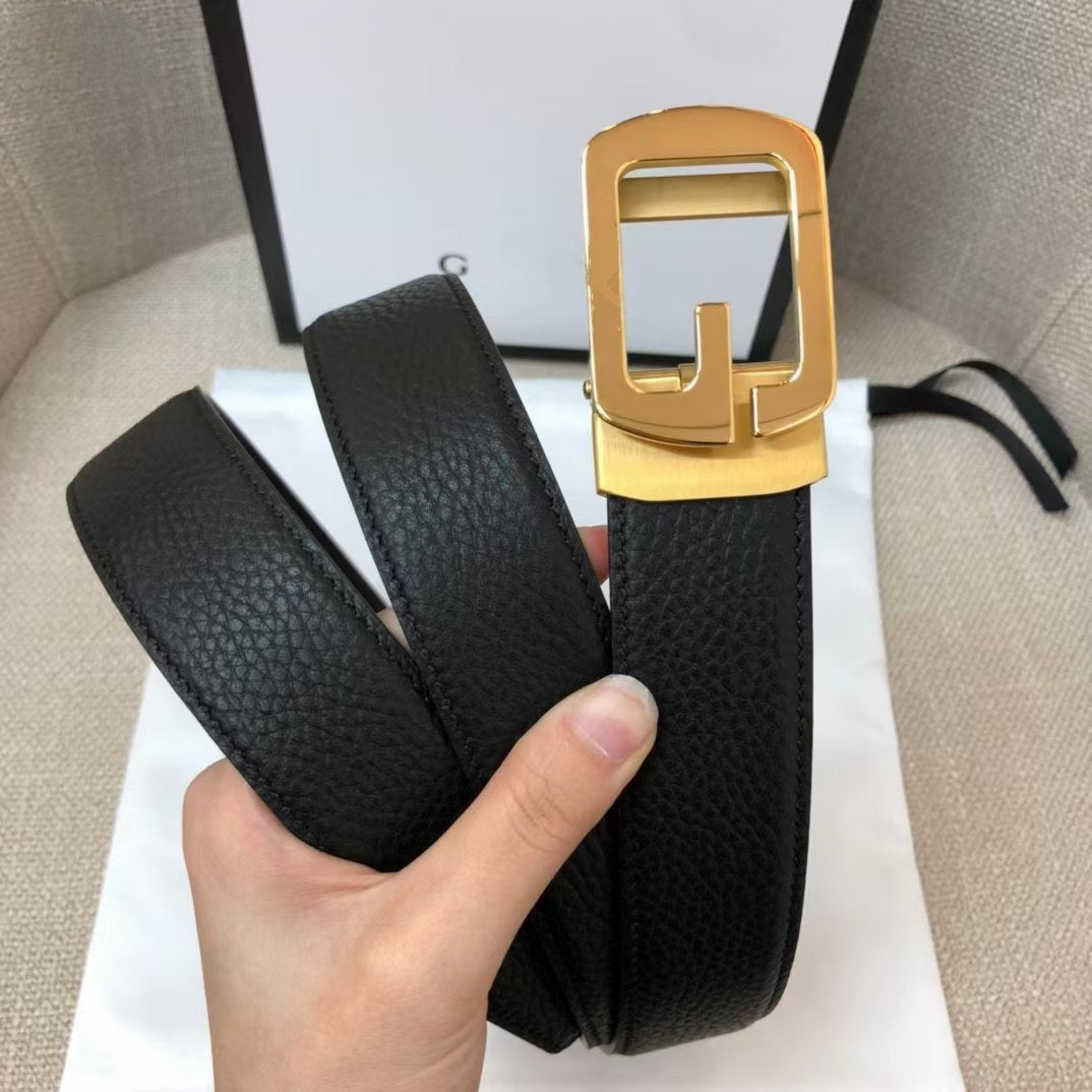 G BELT GOLD SQUARE INSTALL BUCKLE BLACK LEATHER 3.5CM