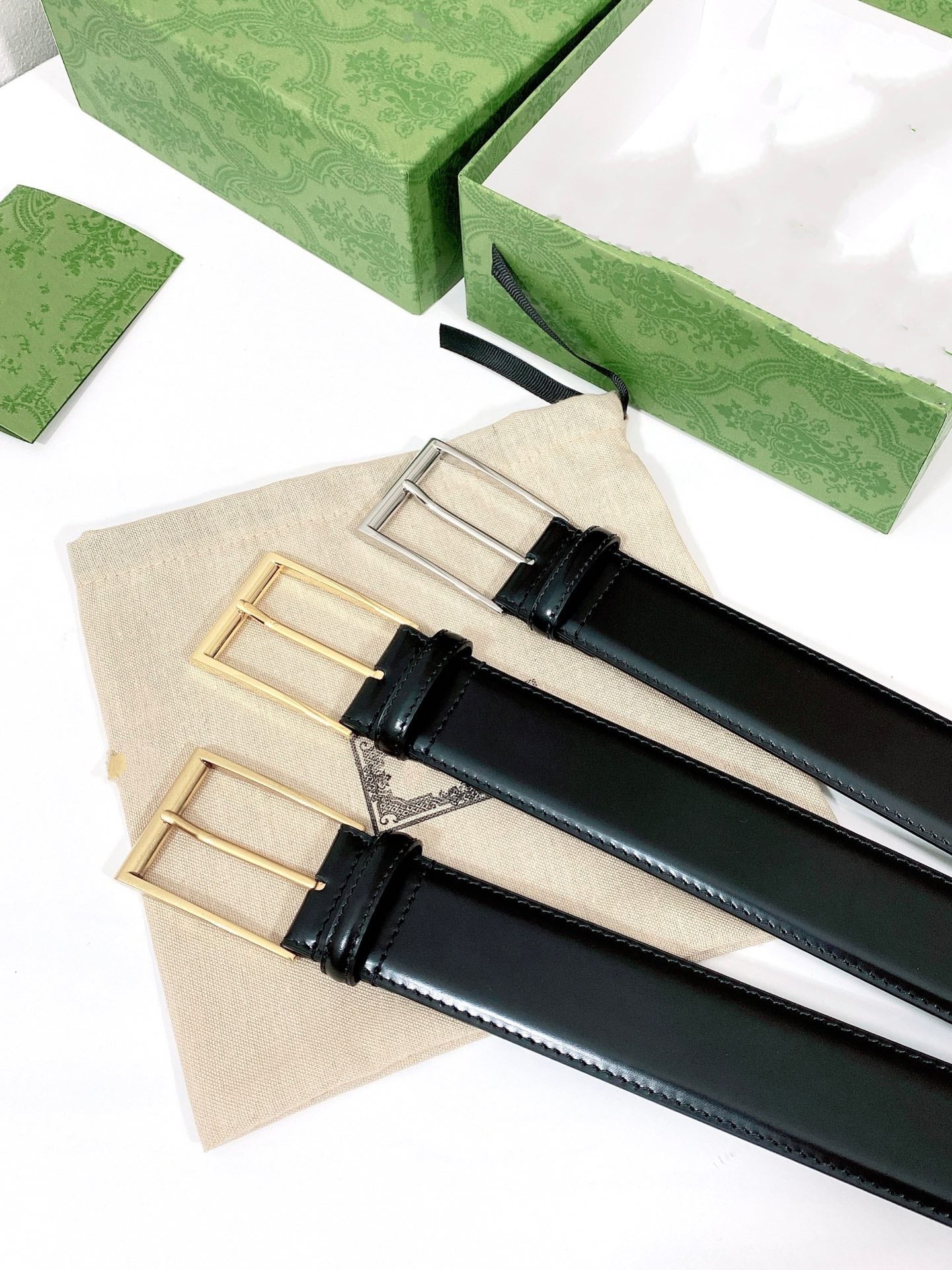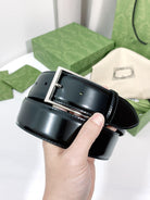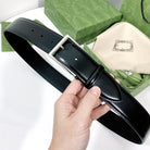 G BELT SILVER SQUARE INSTALL BUCKLE BLACK LEATHER 4.0CM