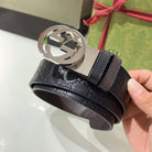 INTERLOCKING G SILVER BUCKLE 37MM BLACK BROWN LEATHER