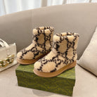 GG Snow Boots Beige Black Wool 576232