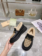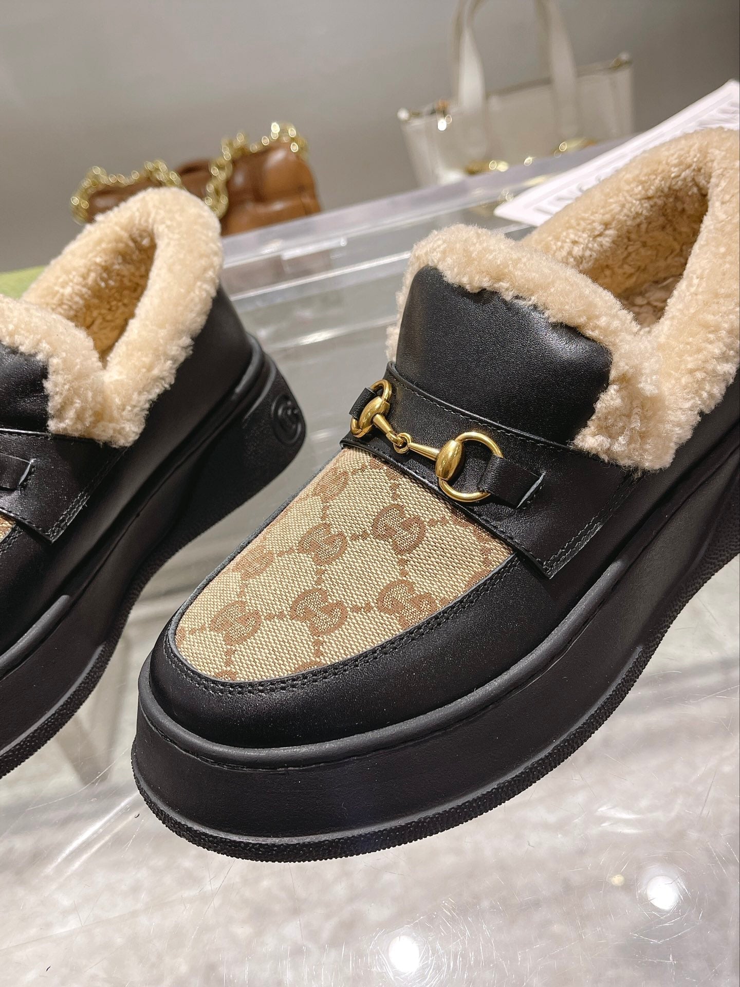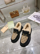 GG Snow Boots Black Beige Calfskin Denim Wool 576250