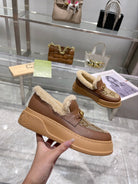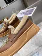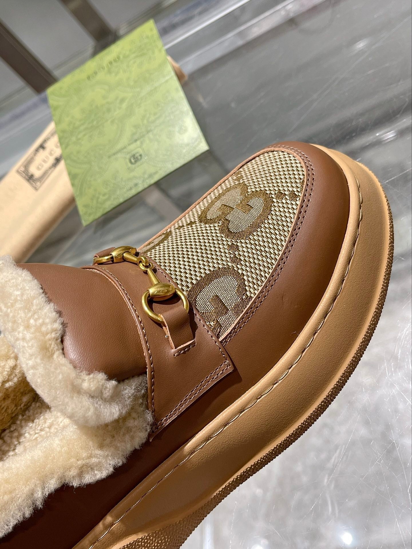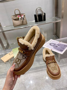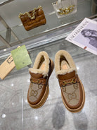 GG Snow Boots Brown Calfskin Denim Wool 576247