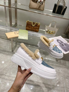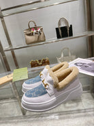 GG Snow Boots White Blue Calfskin Denim Wool 576245