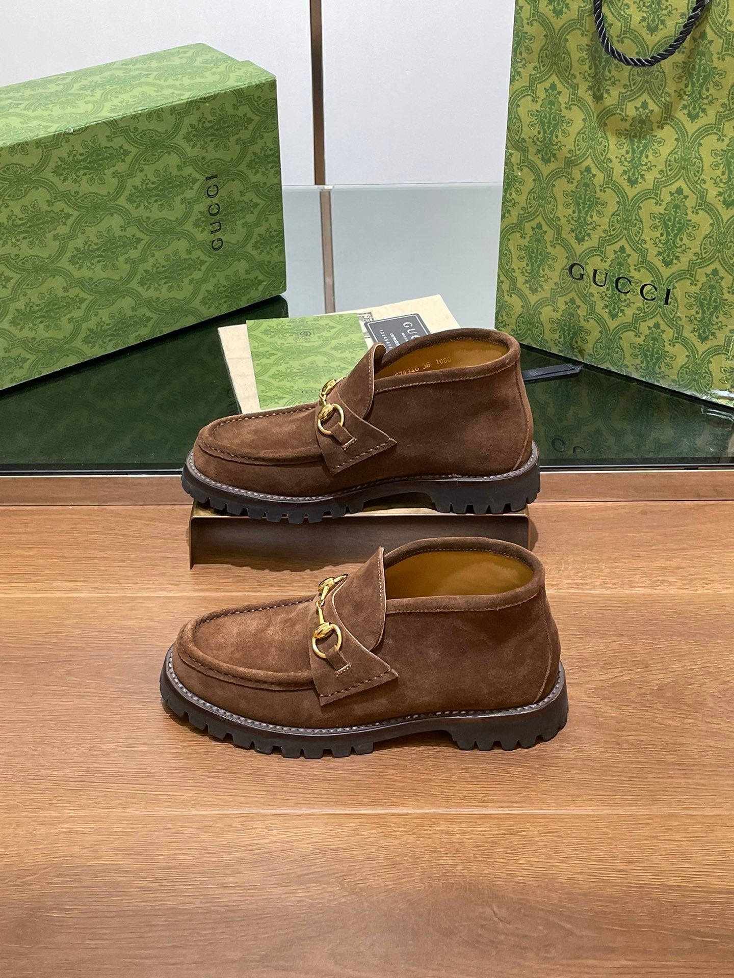 GG WOMEN'S HORSEBIT ANKLE BOOT IN DARK BROWN SUEDE
