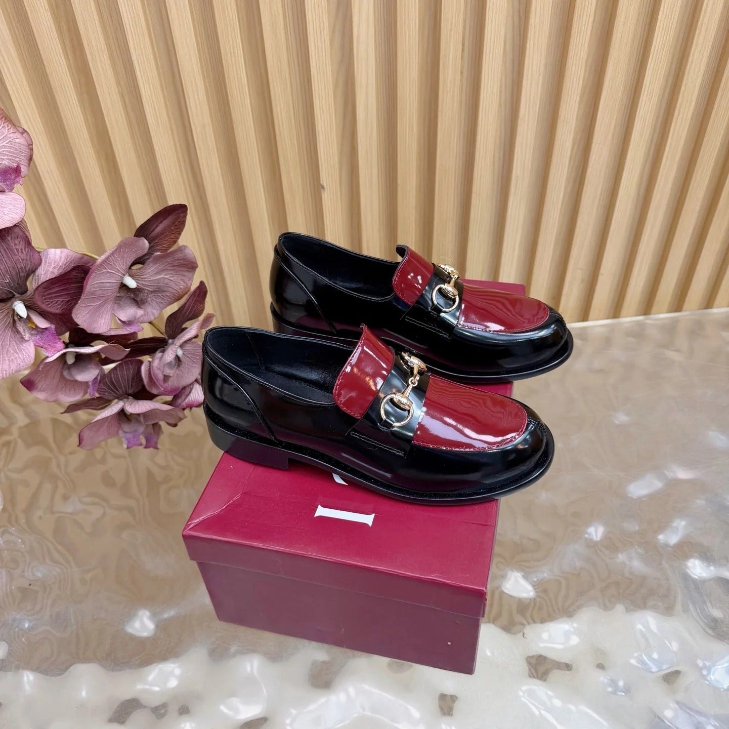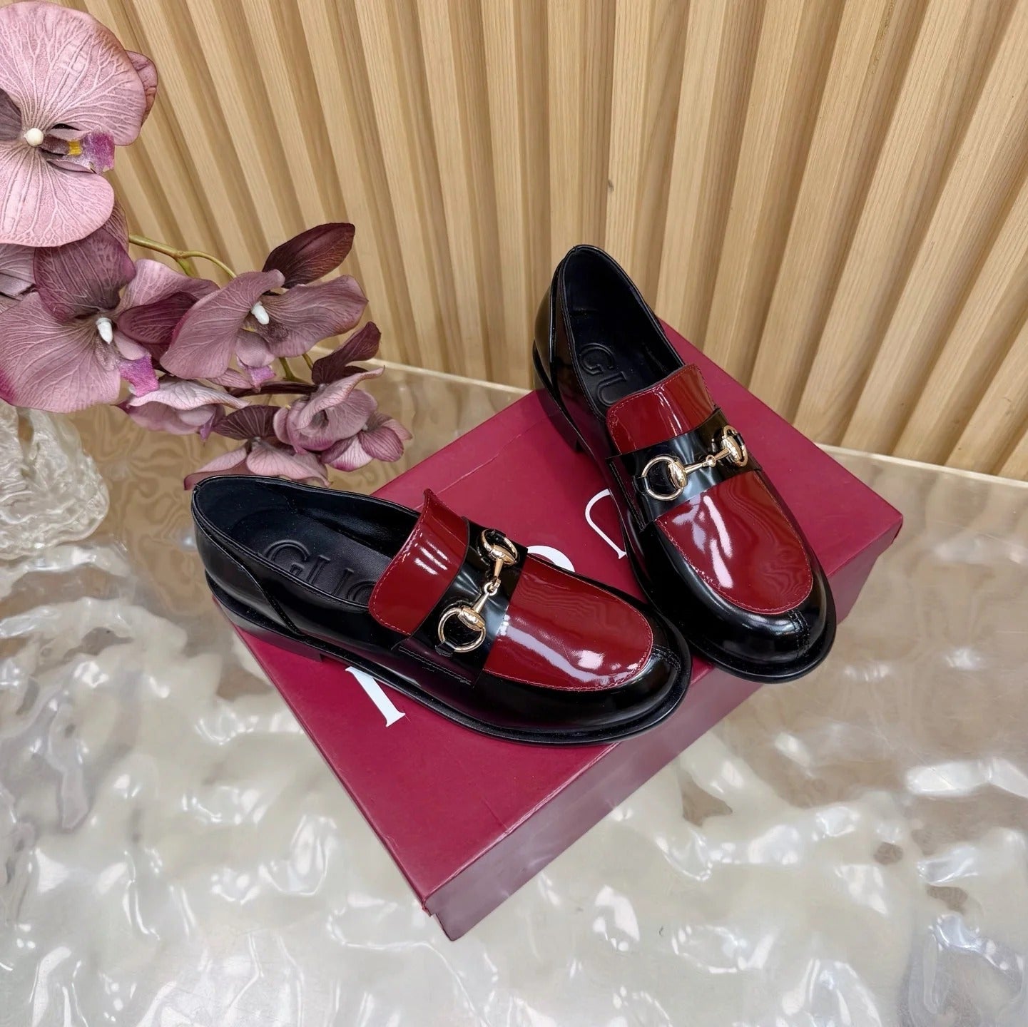 GG 26 Horsebit Loafers Black Red Sheepskin 589464