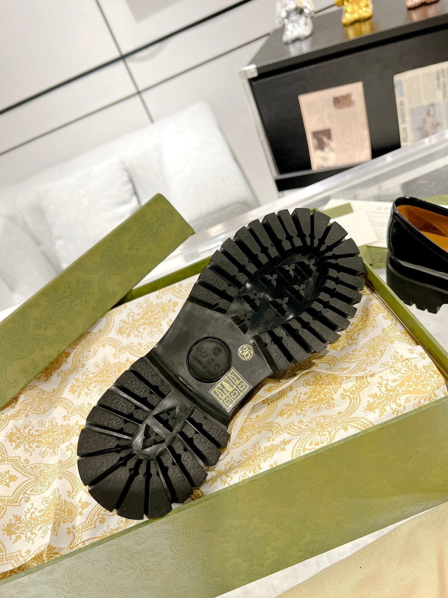 GG LOAFER WITH GG CHAINS GLOSSY BLACK CALFSKIN