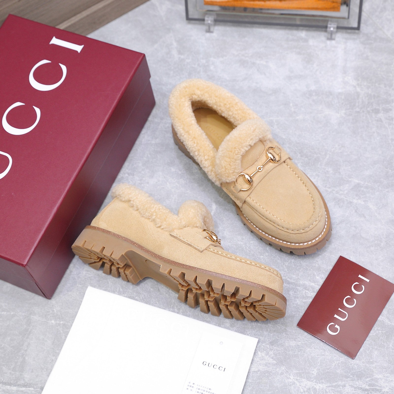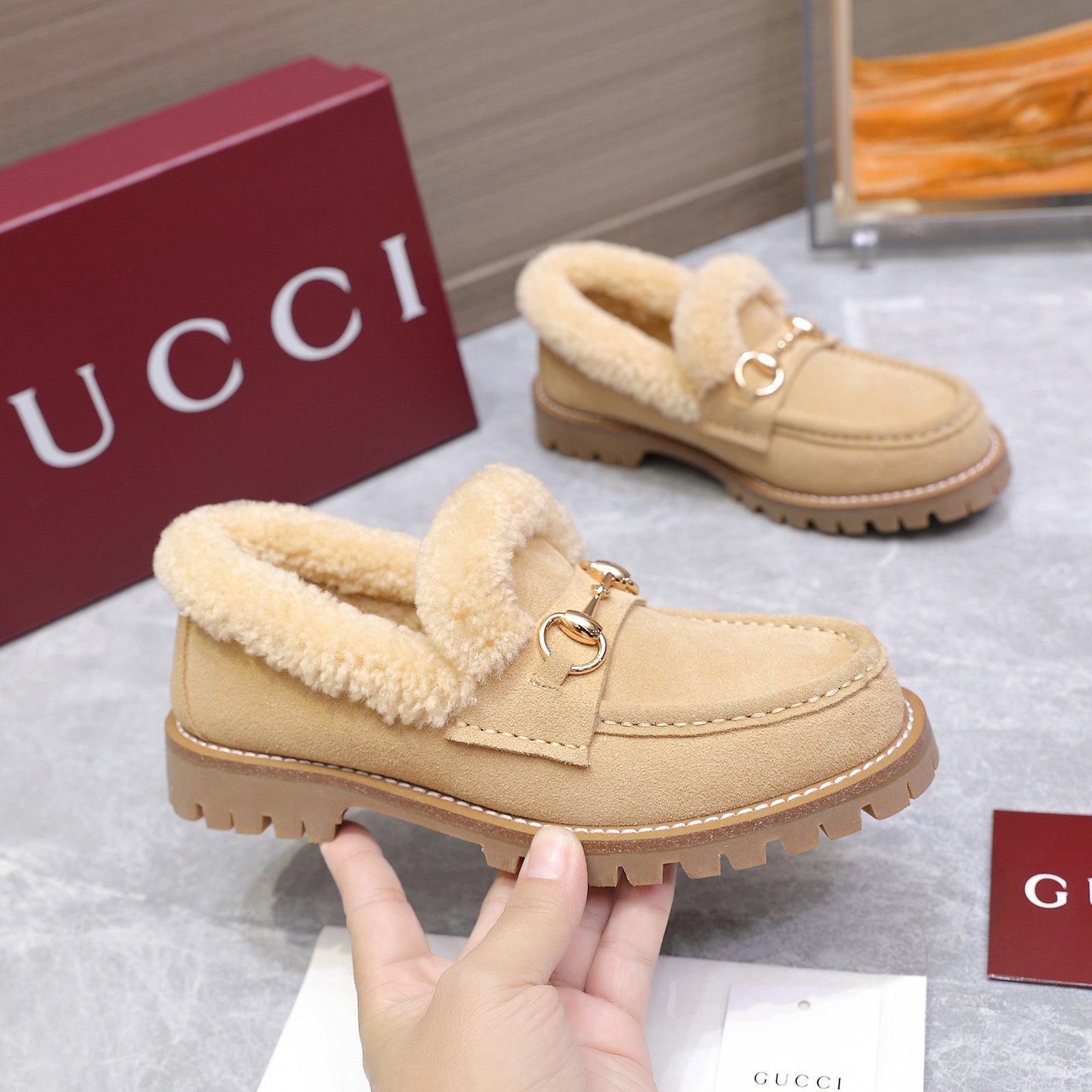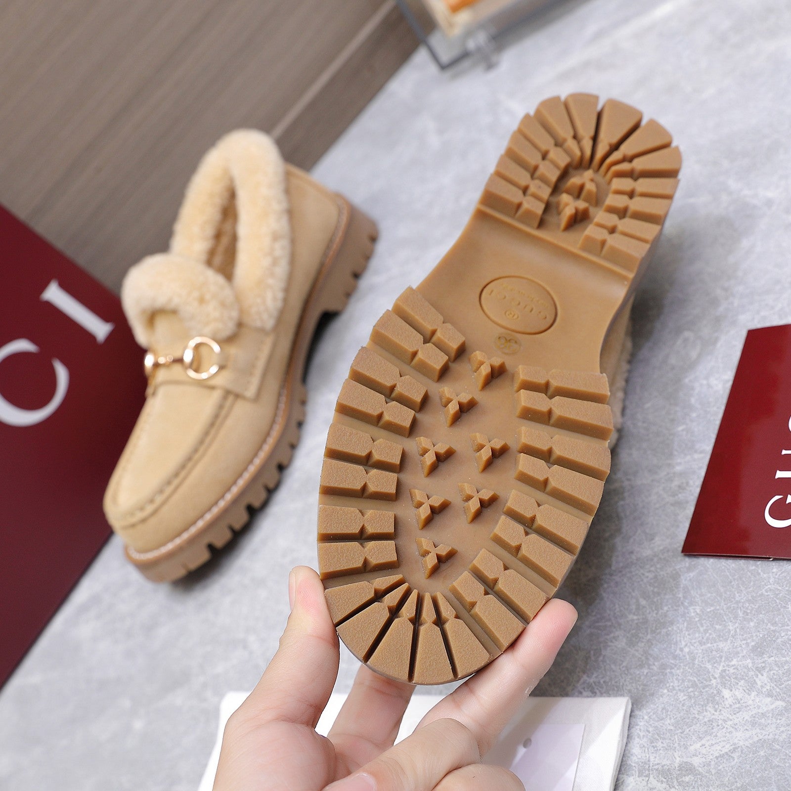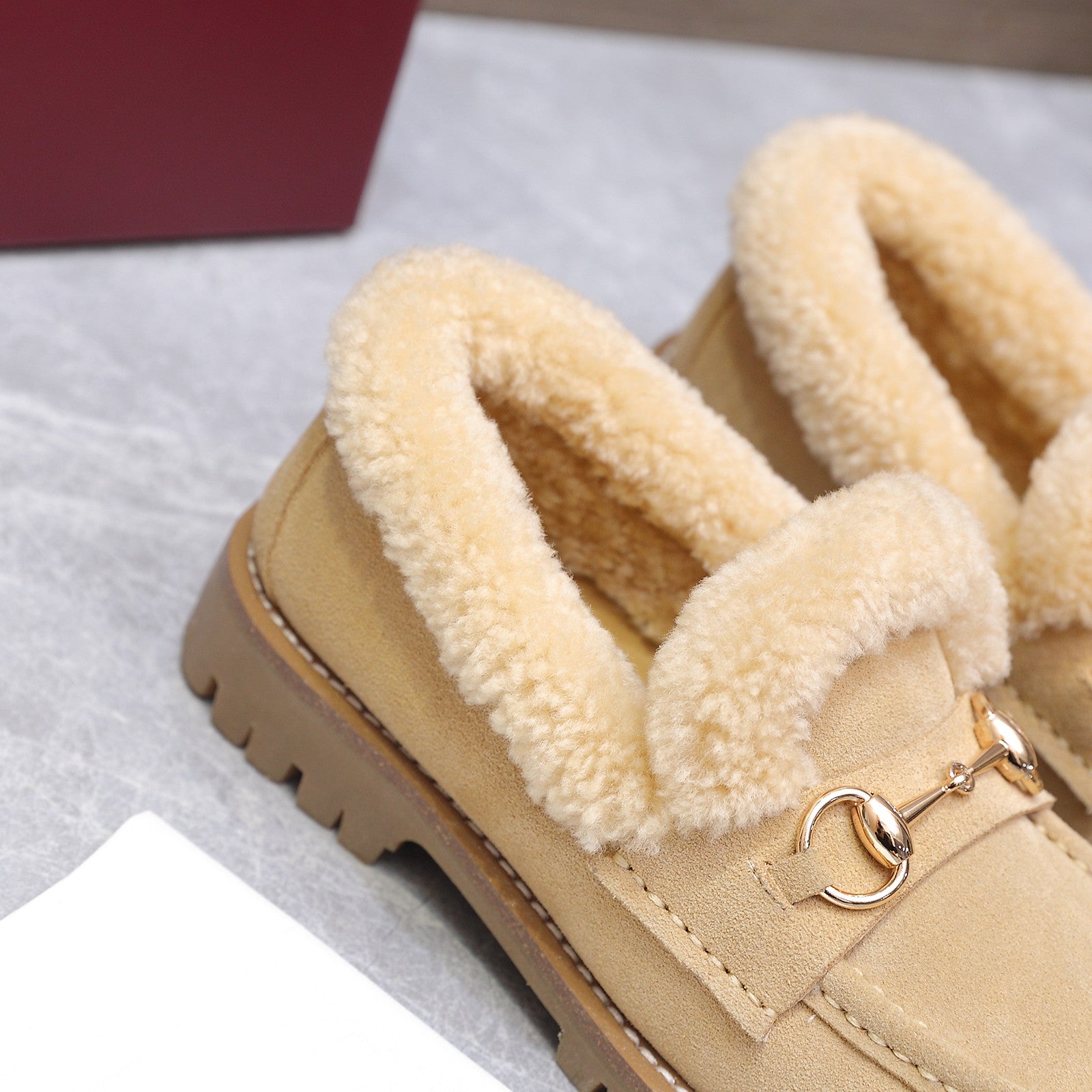 GG Women's Loafer Horsebit Beige Suede Shearing 547321
