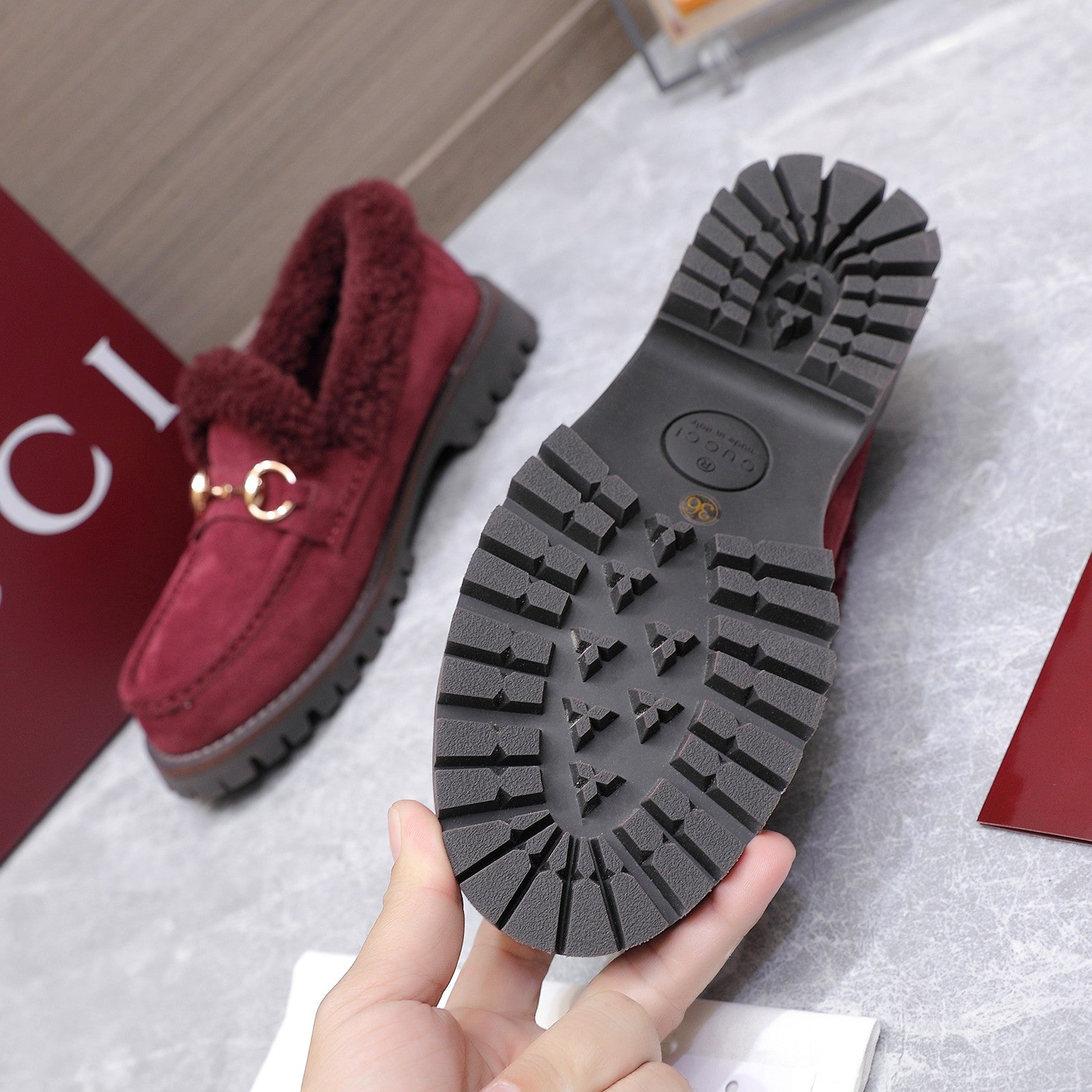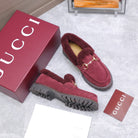 GG Women's Loafer Horsebit Red Suede Shearing 547324