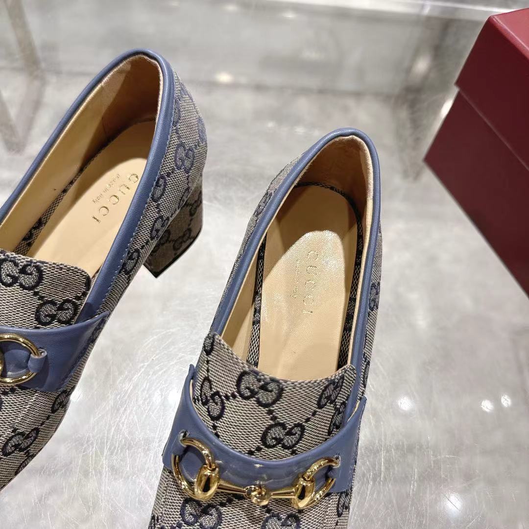 GG Women's Loafer Pump 55mm Horsebit Dark Olive Gray Canvas 502605