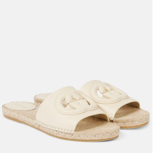 Gucci Cutout Espadrille Slides Ivory Leather