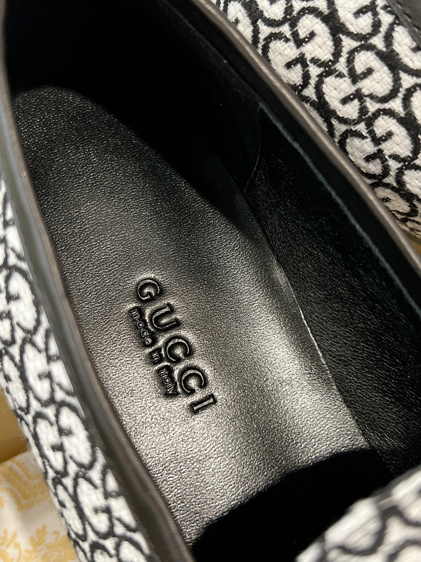 MEN'S LOAFER WITH HORSEBIT IN BLACK MIX WHITE MONOGRAM JACQUARD FABRIC