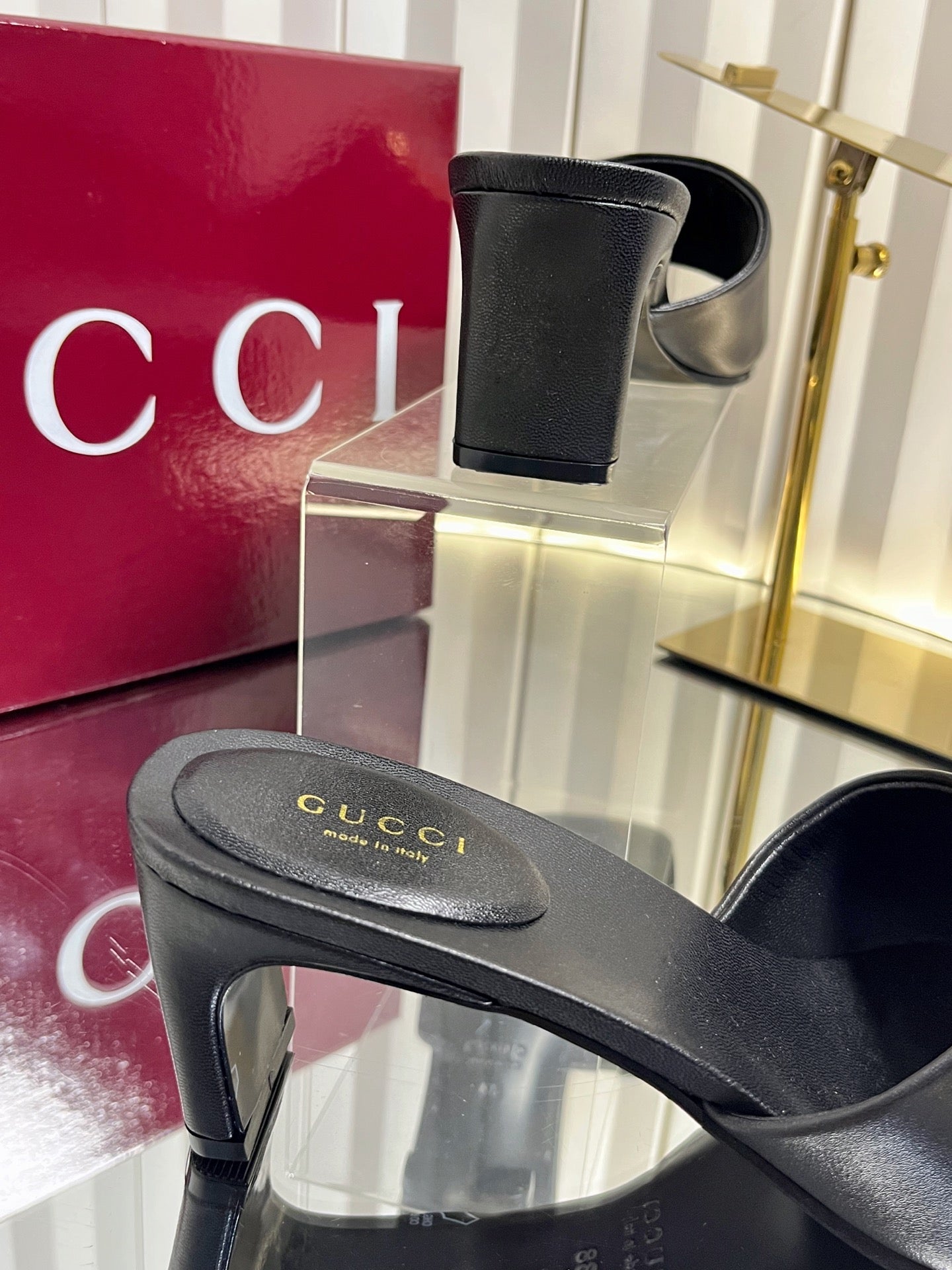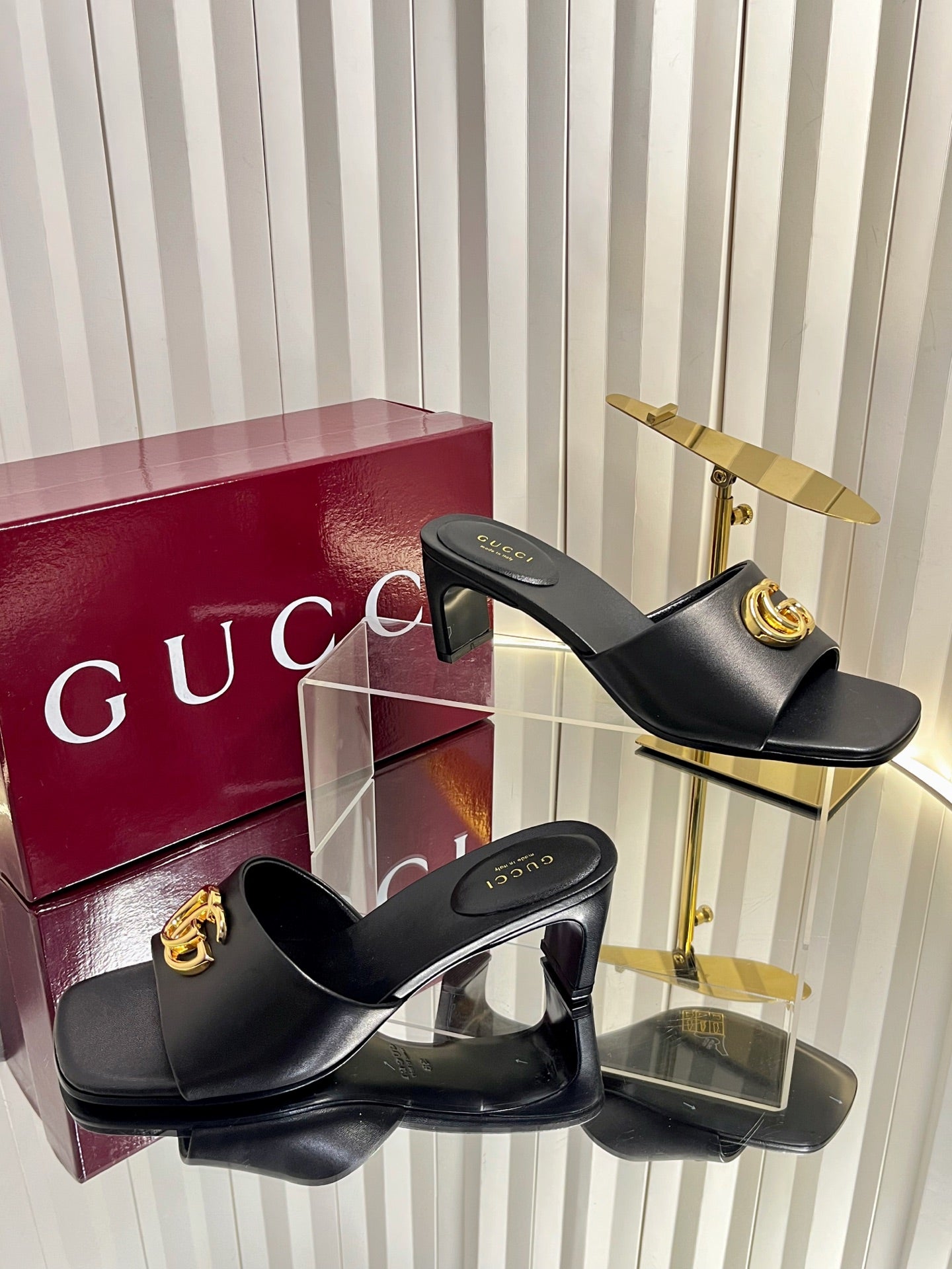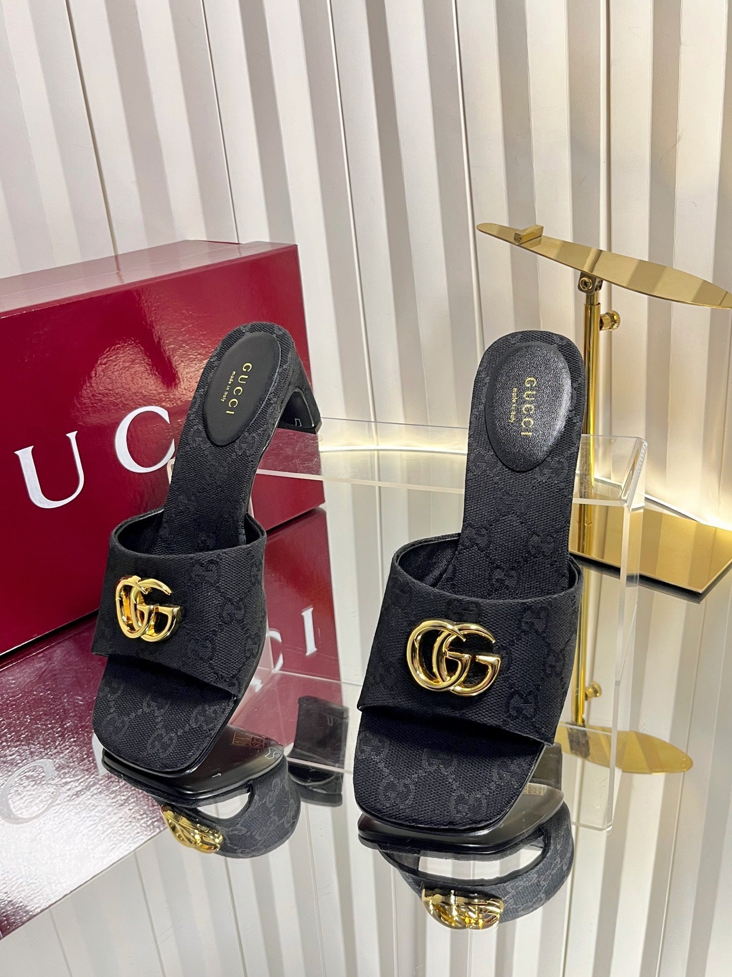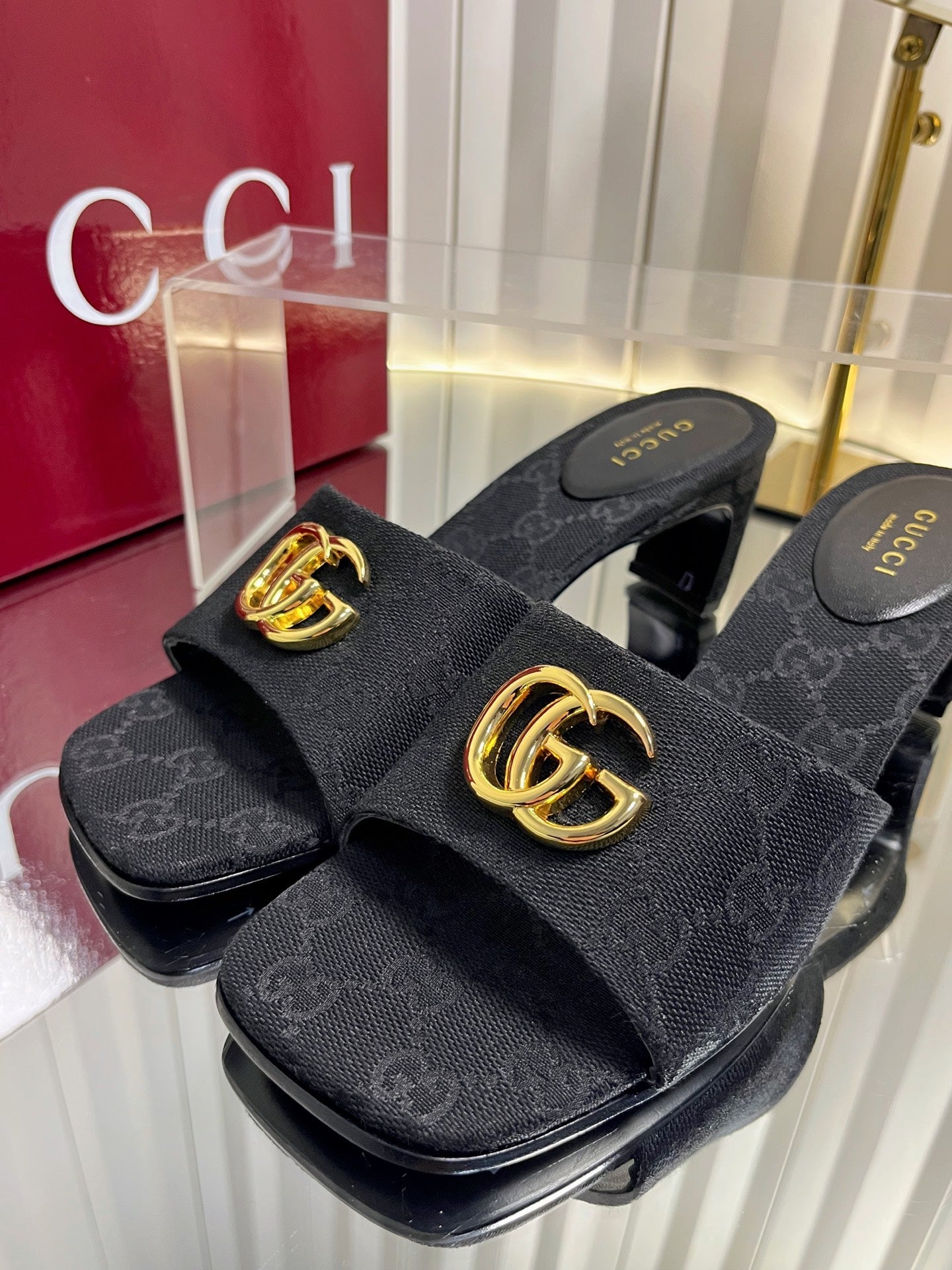 GG 26S Slippers 4.5cm Black Leather 616460
