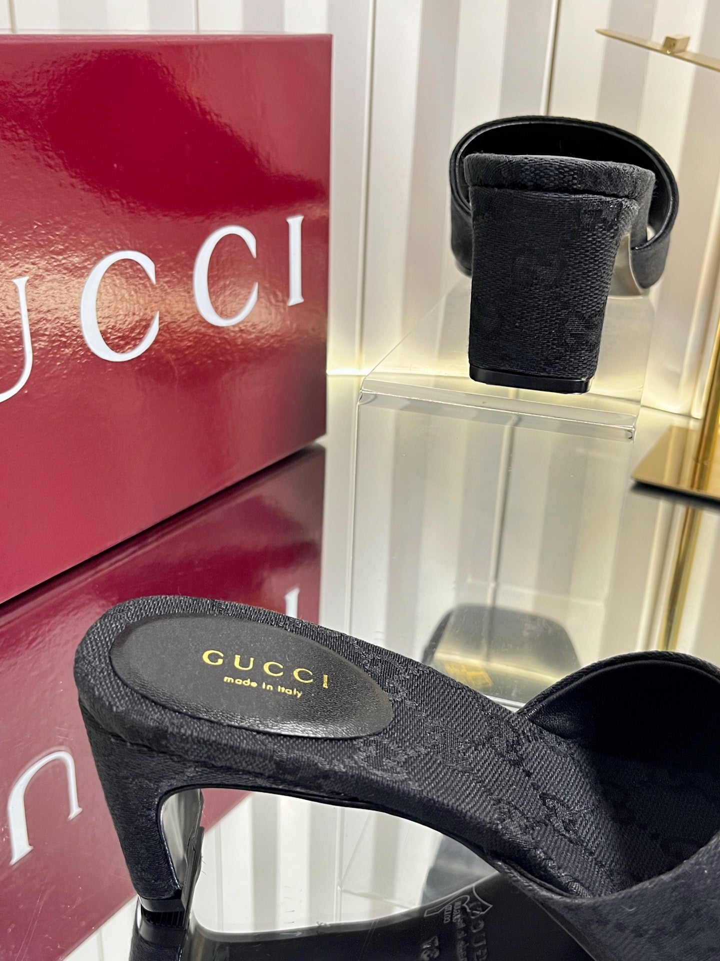 GG 26ss High Heel Mule 60 Black Sheepskin 601088