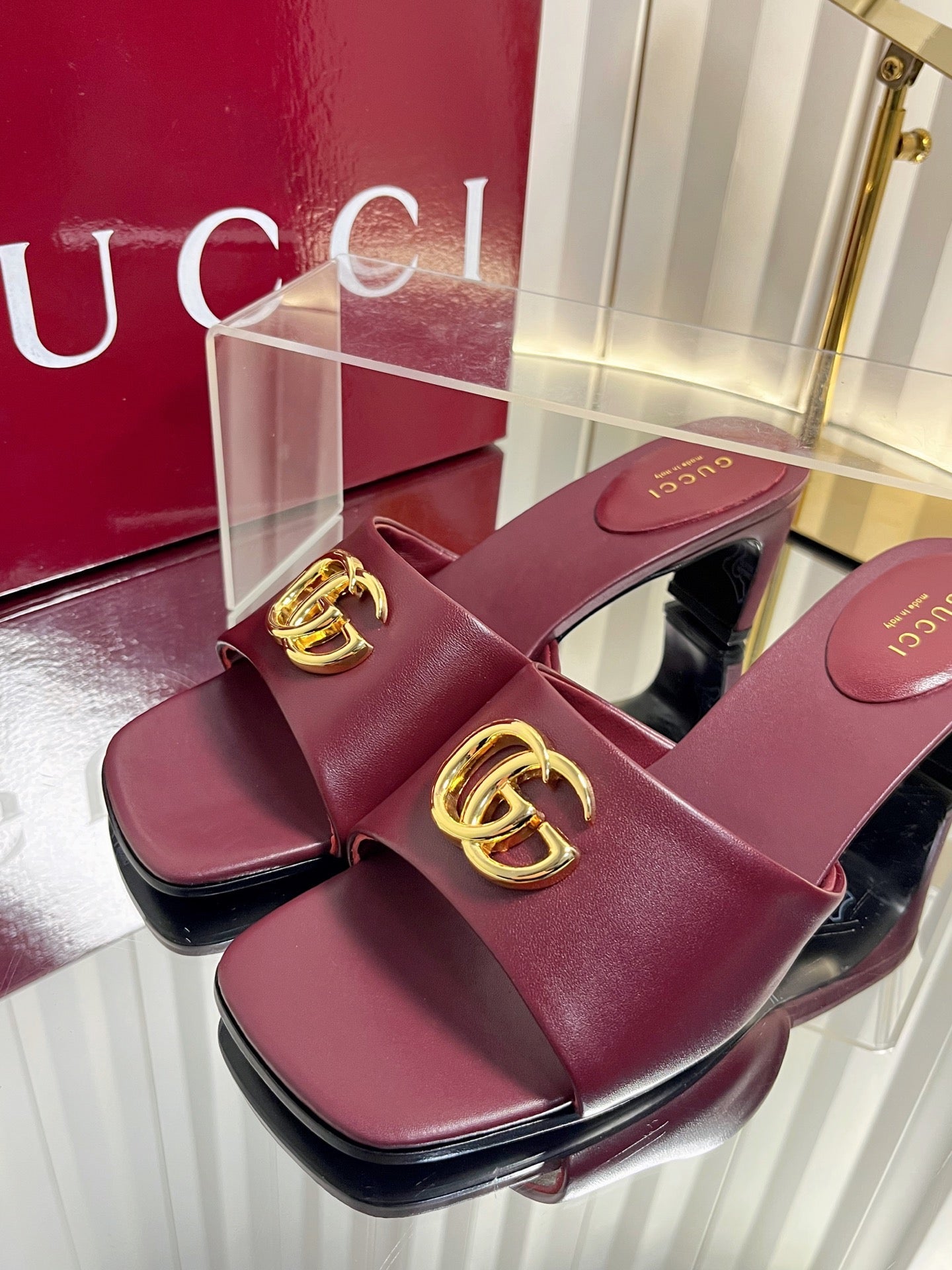 GG 26S Slippers 4.5cm Burgundy Leather 616455