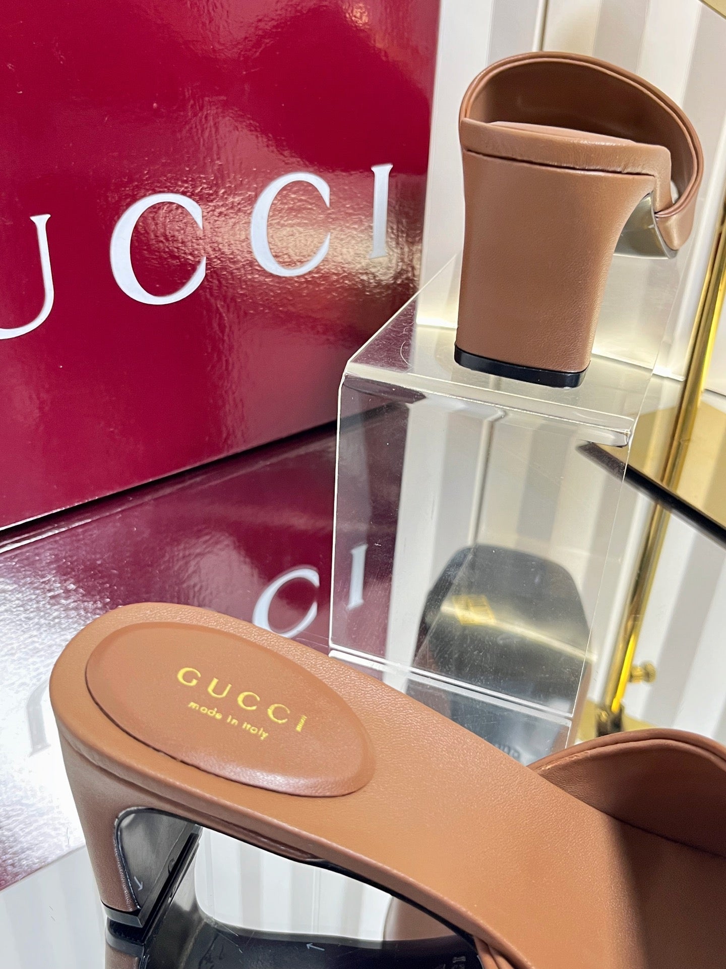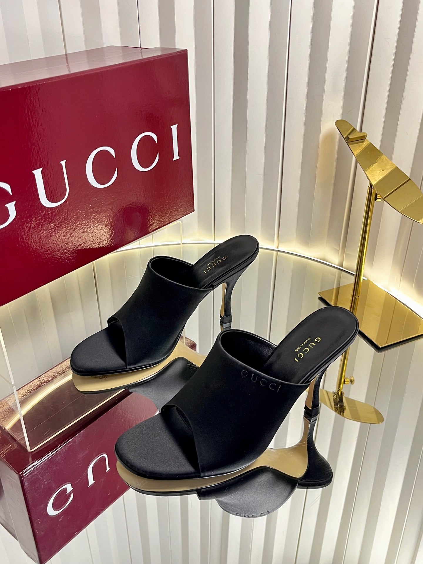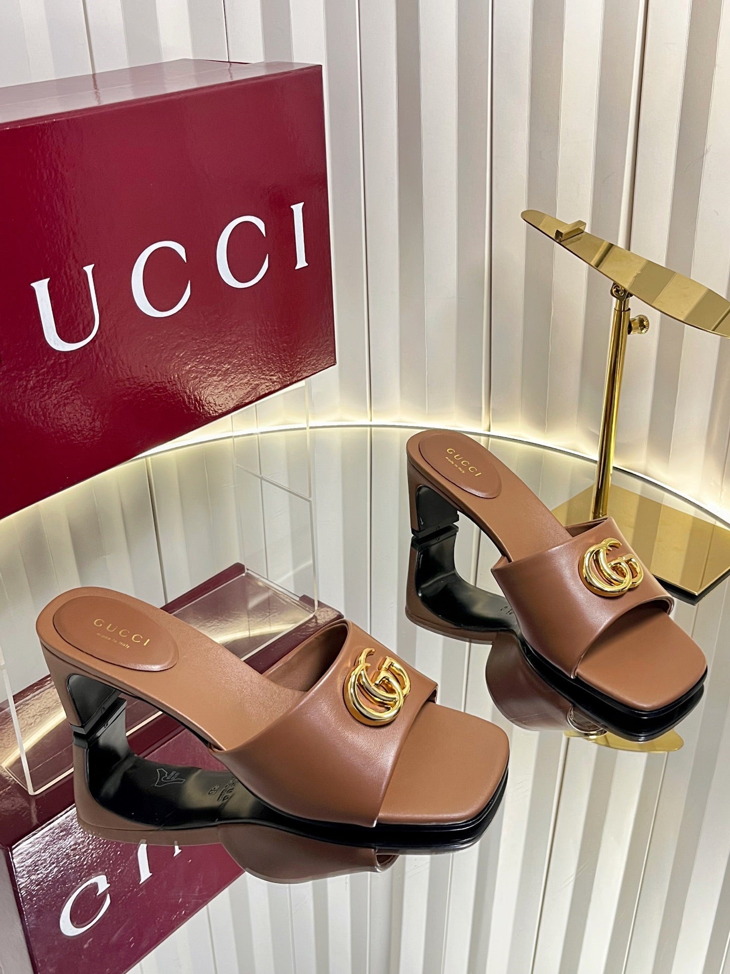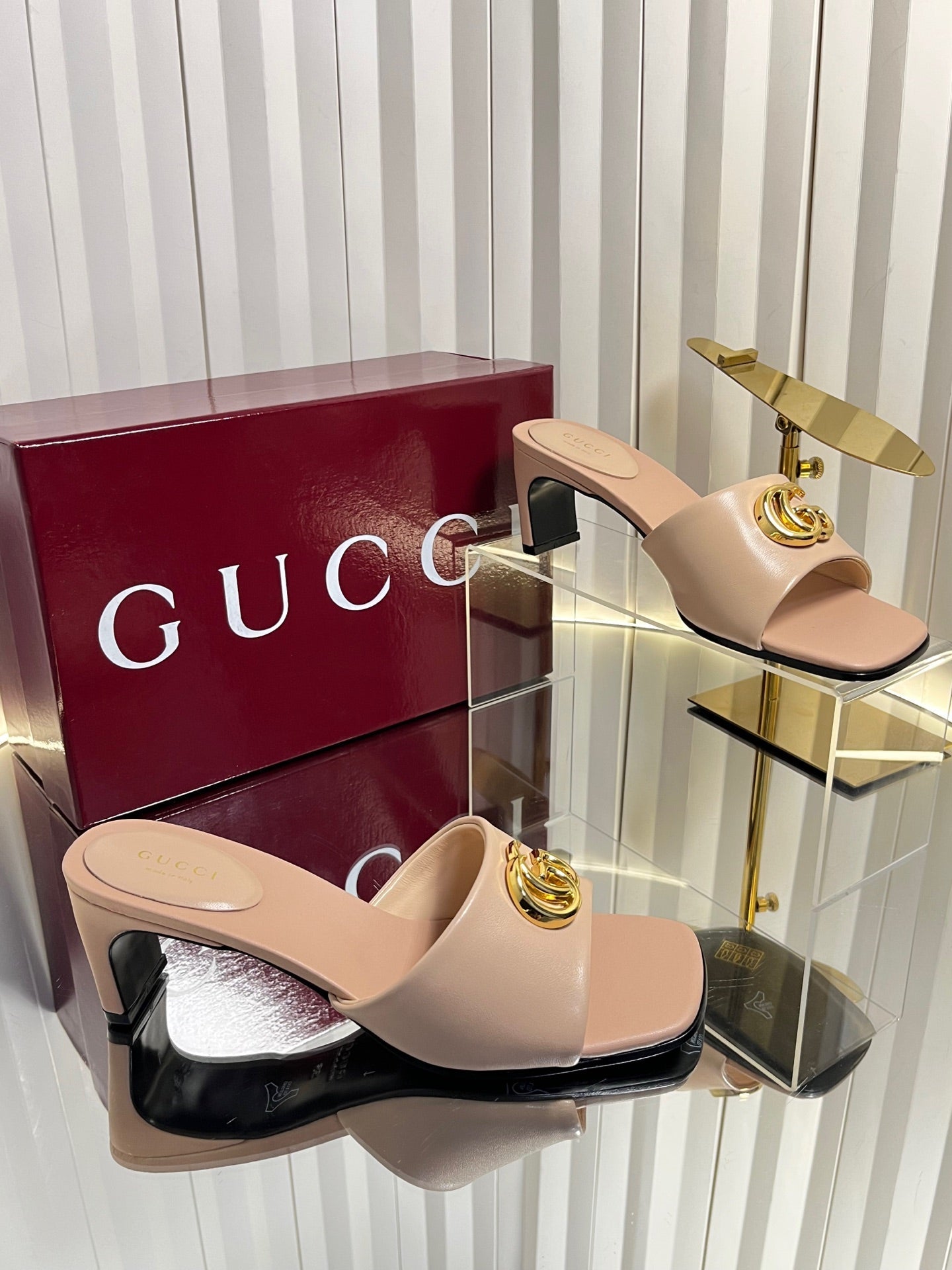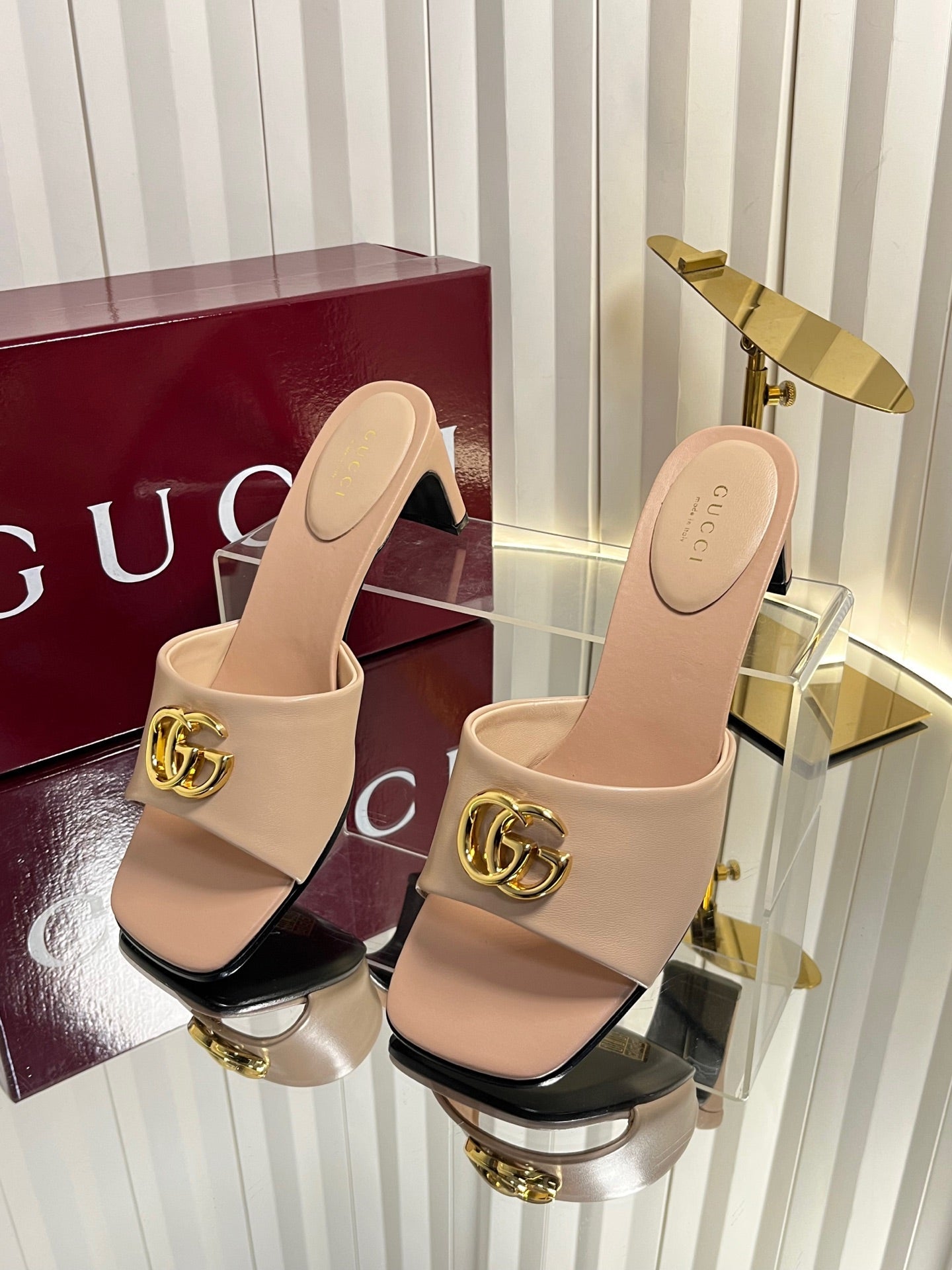 GG 26ss High Heel Mule 60 Metallic Gold Sheepskin 601083