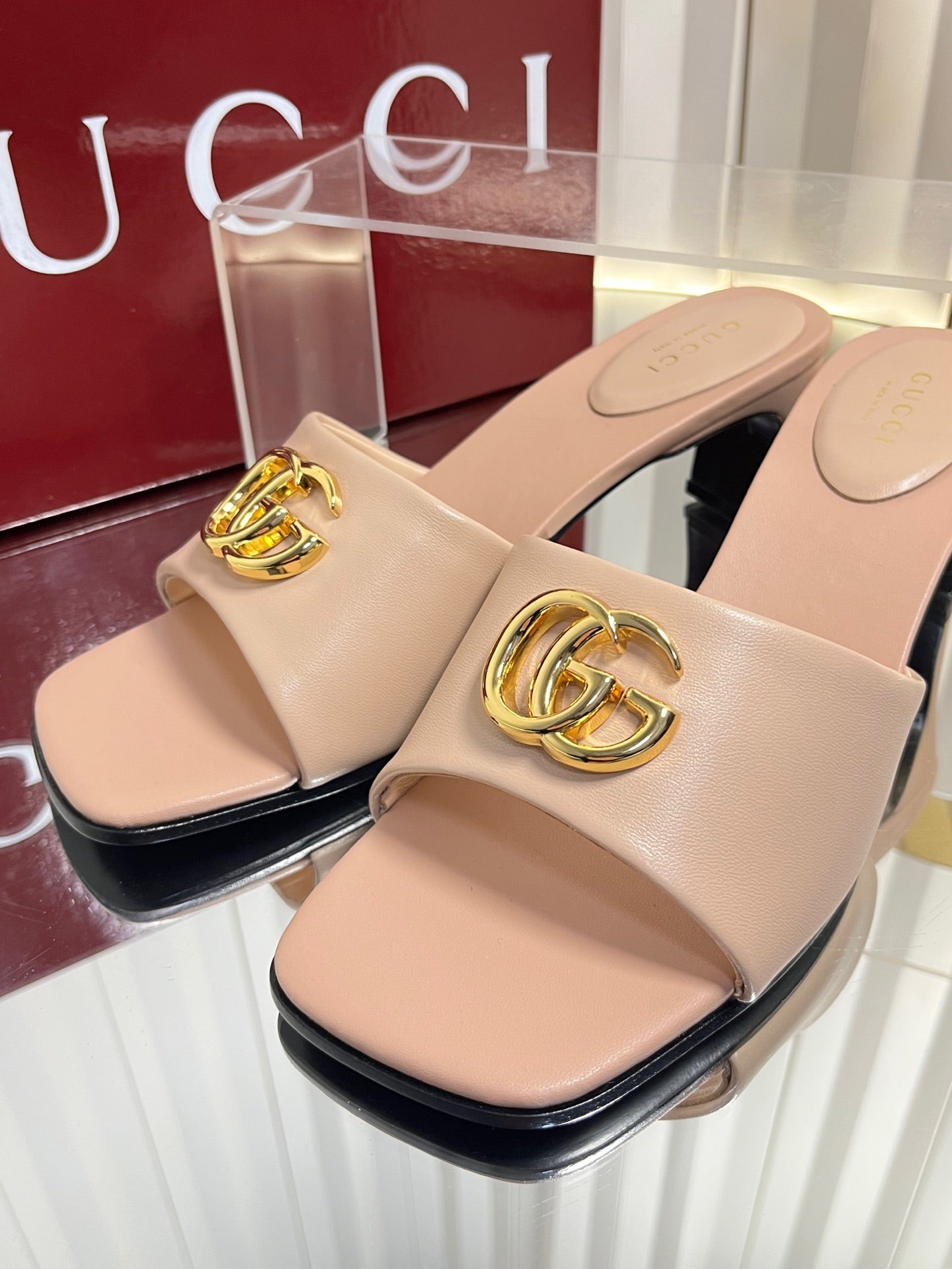 GG 26S Slippers 4.5cm Light Pink Leather 616456