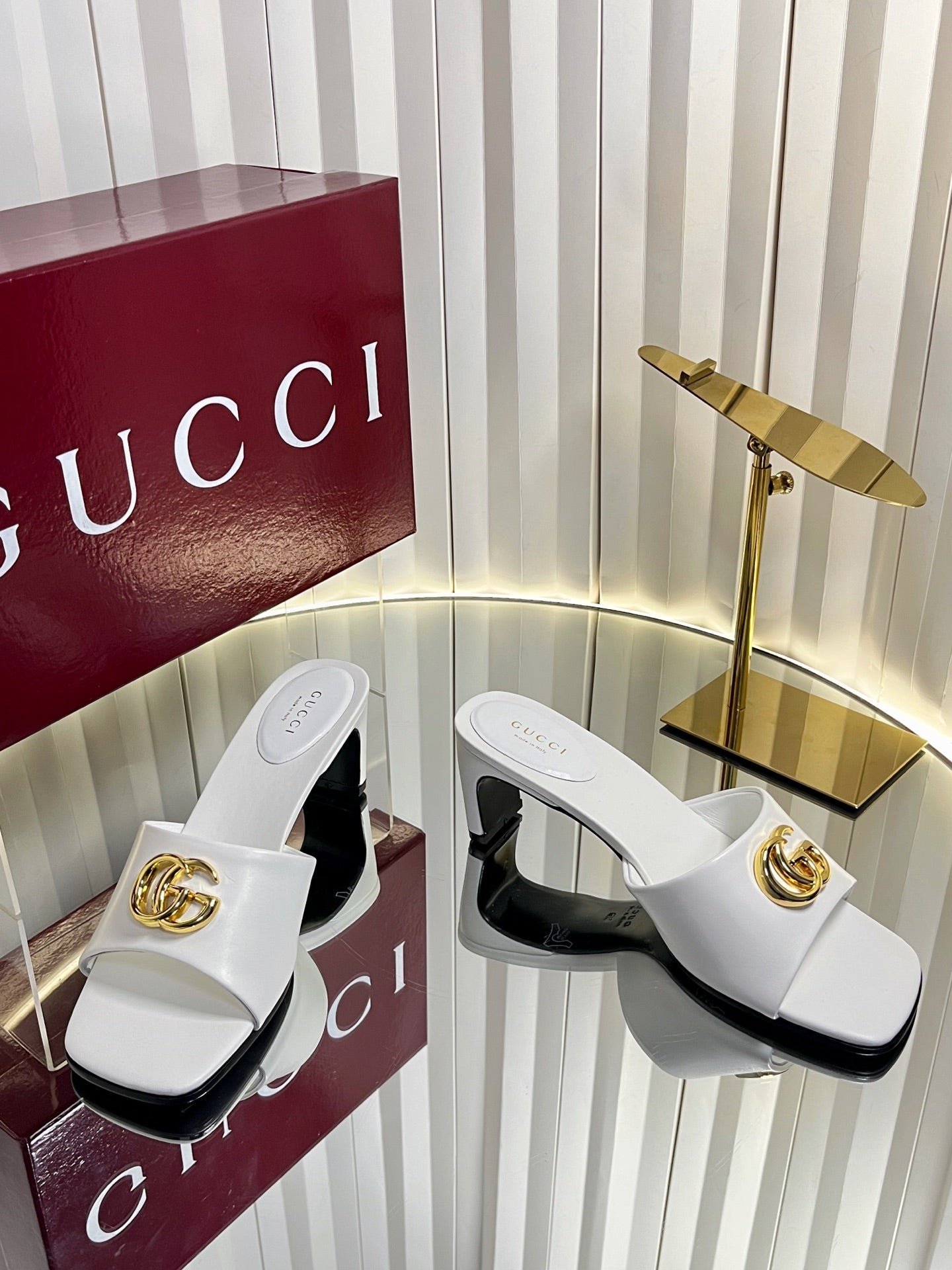 GG 26S Slippers 4.5cm White Leather 616458