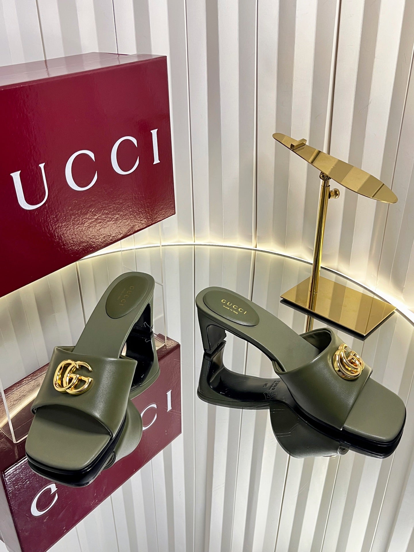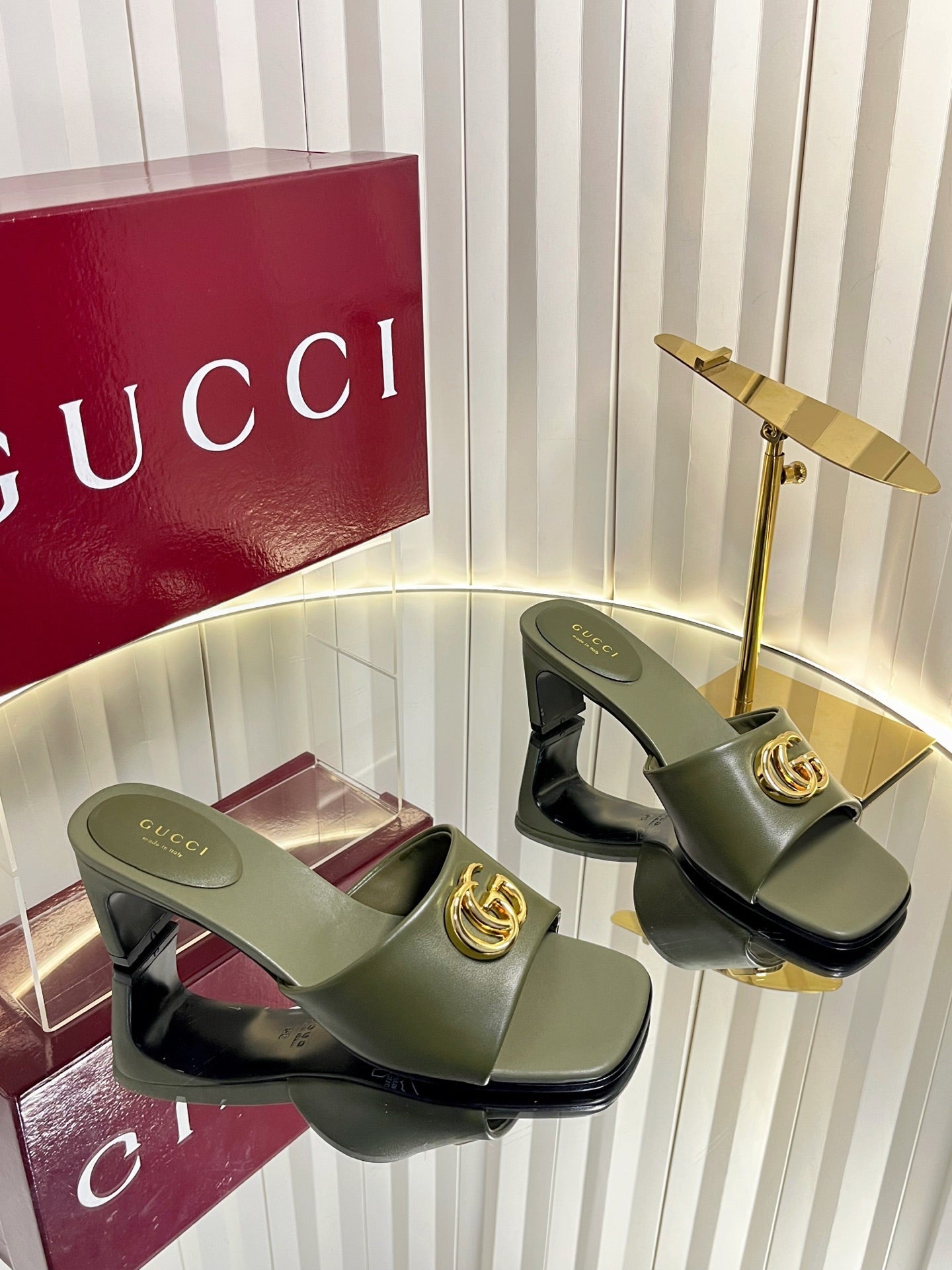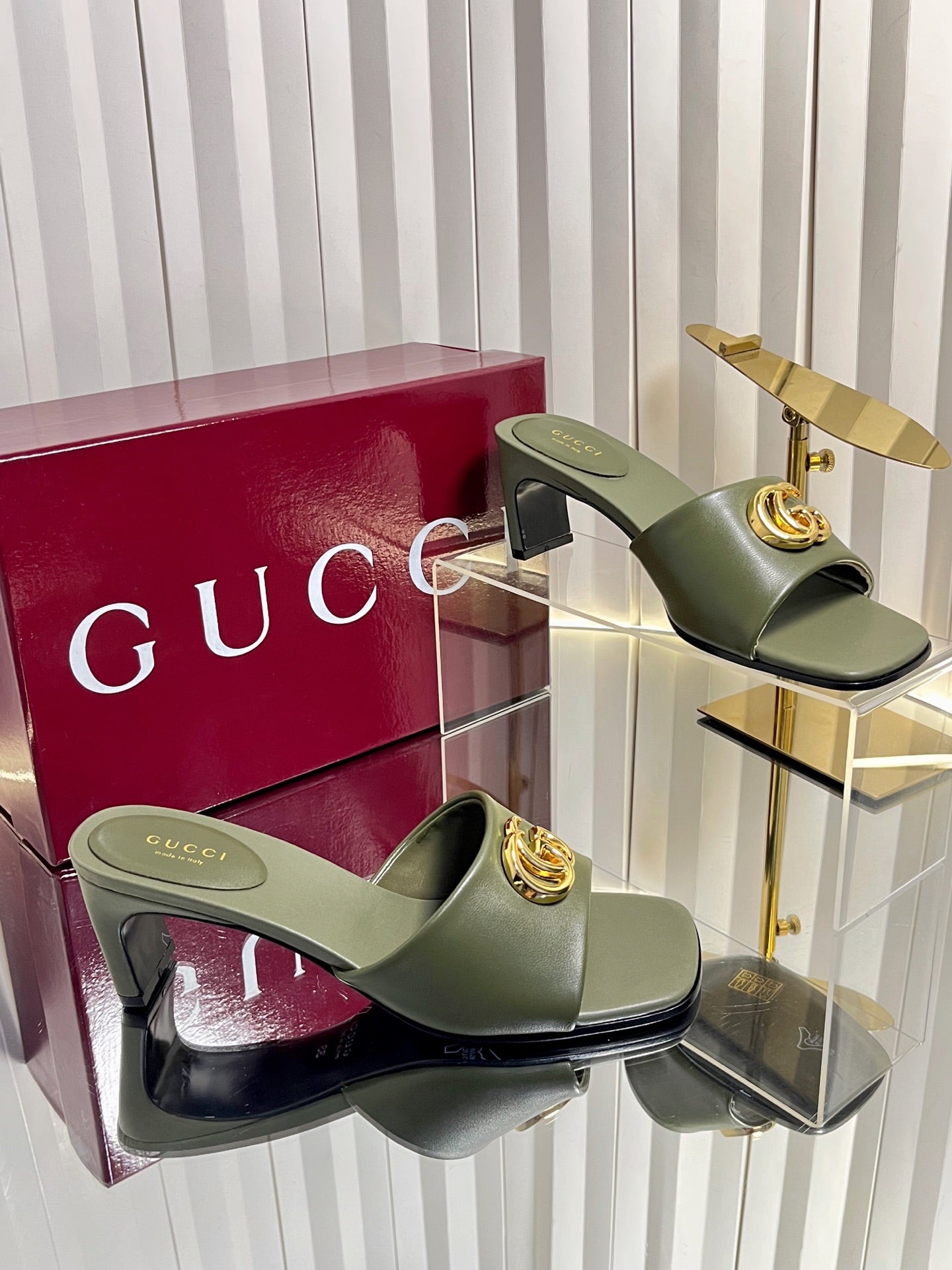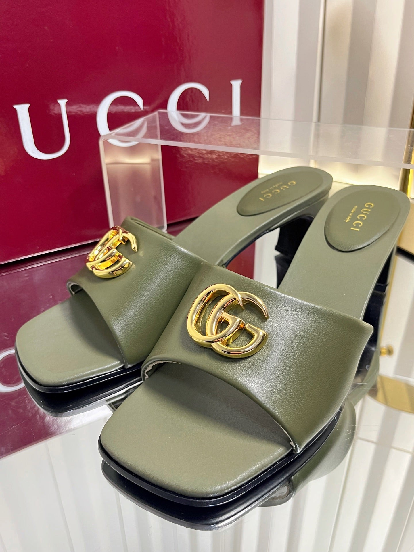 GG 26S Slippers 4.5cm Olive Green Leather 616459