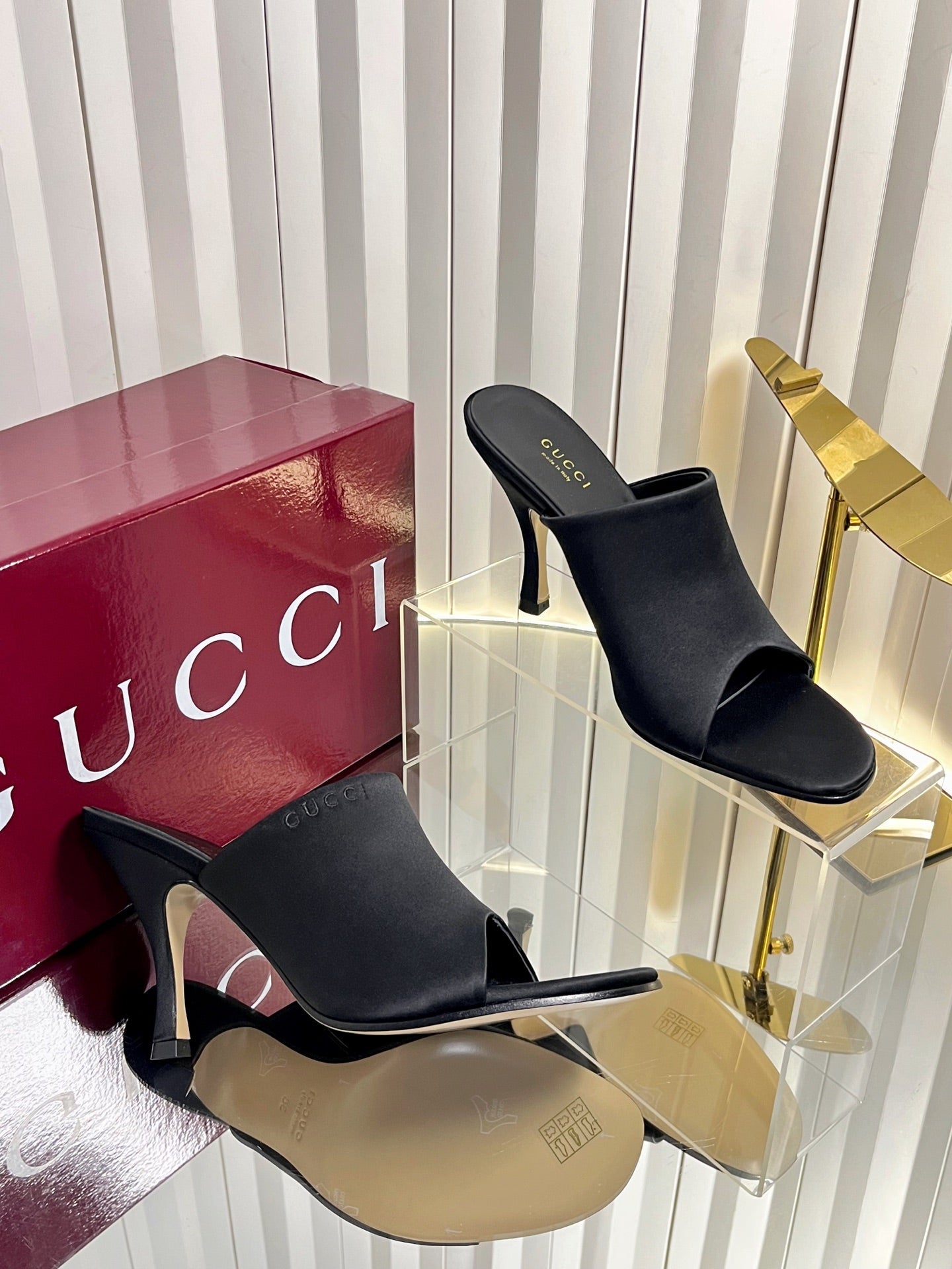 GG Cruise 26 Women's Slide Sandal 95mm Black Satin 616465