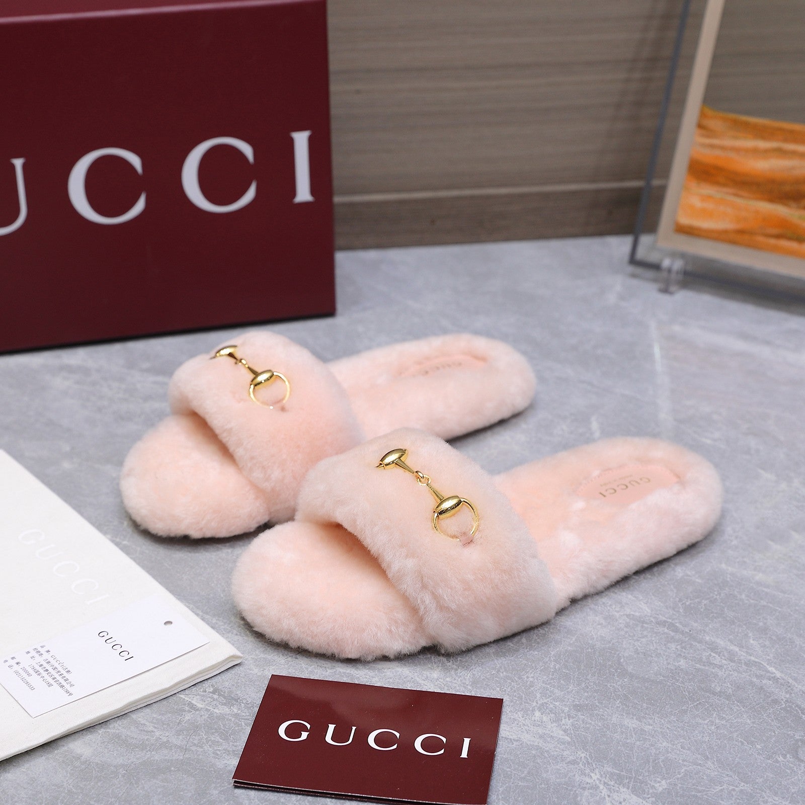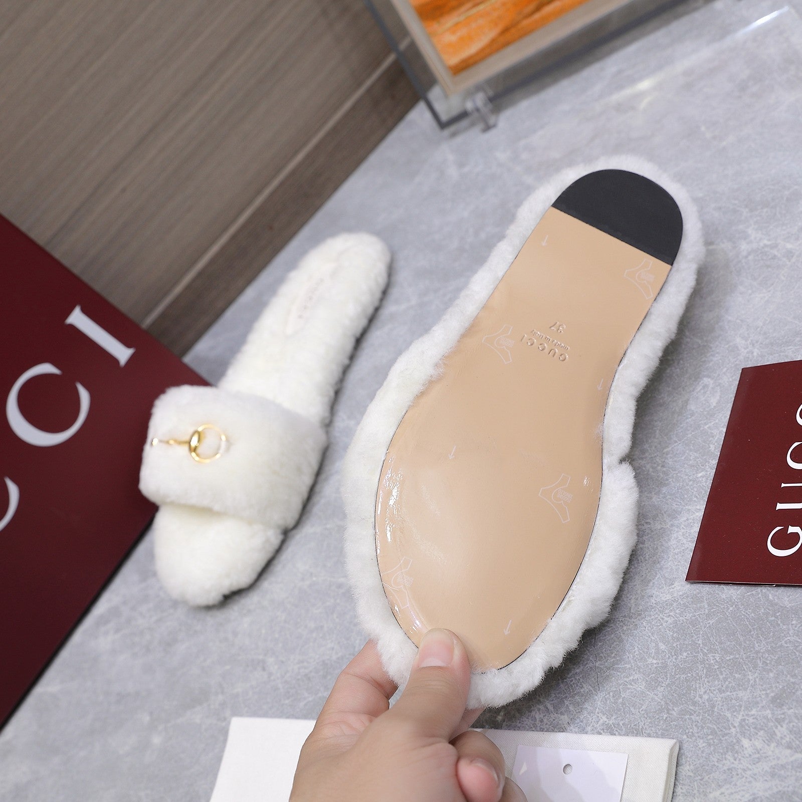 GG 26ss Sandals 55 Burgundy Beige Sheepskin 601097