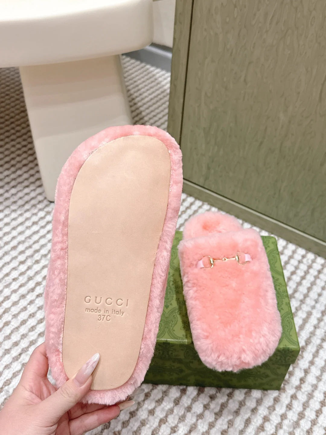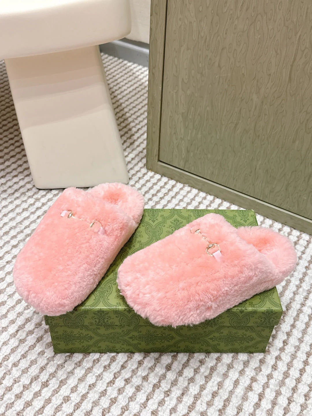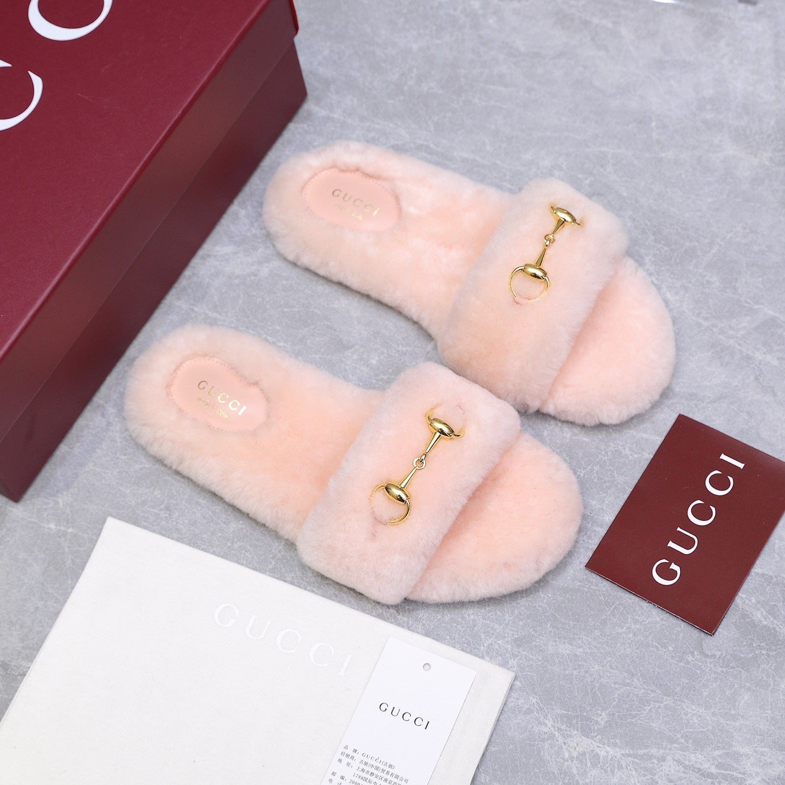 GG Women's Slide with Horsebit Light Pink Fur 600970