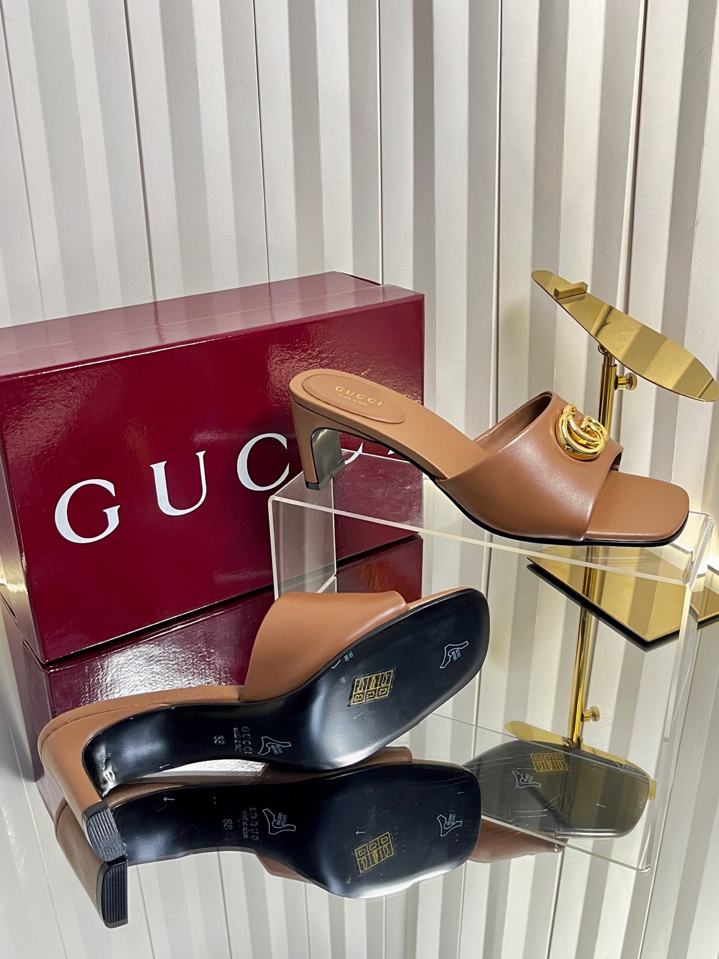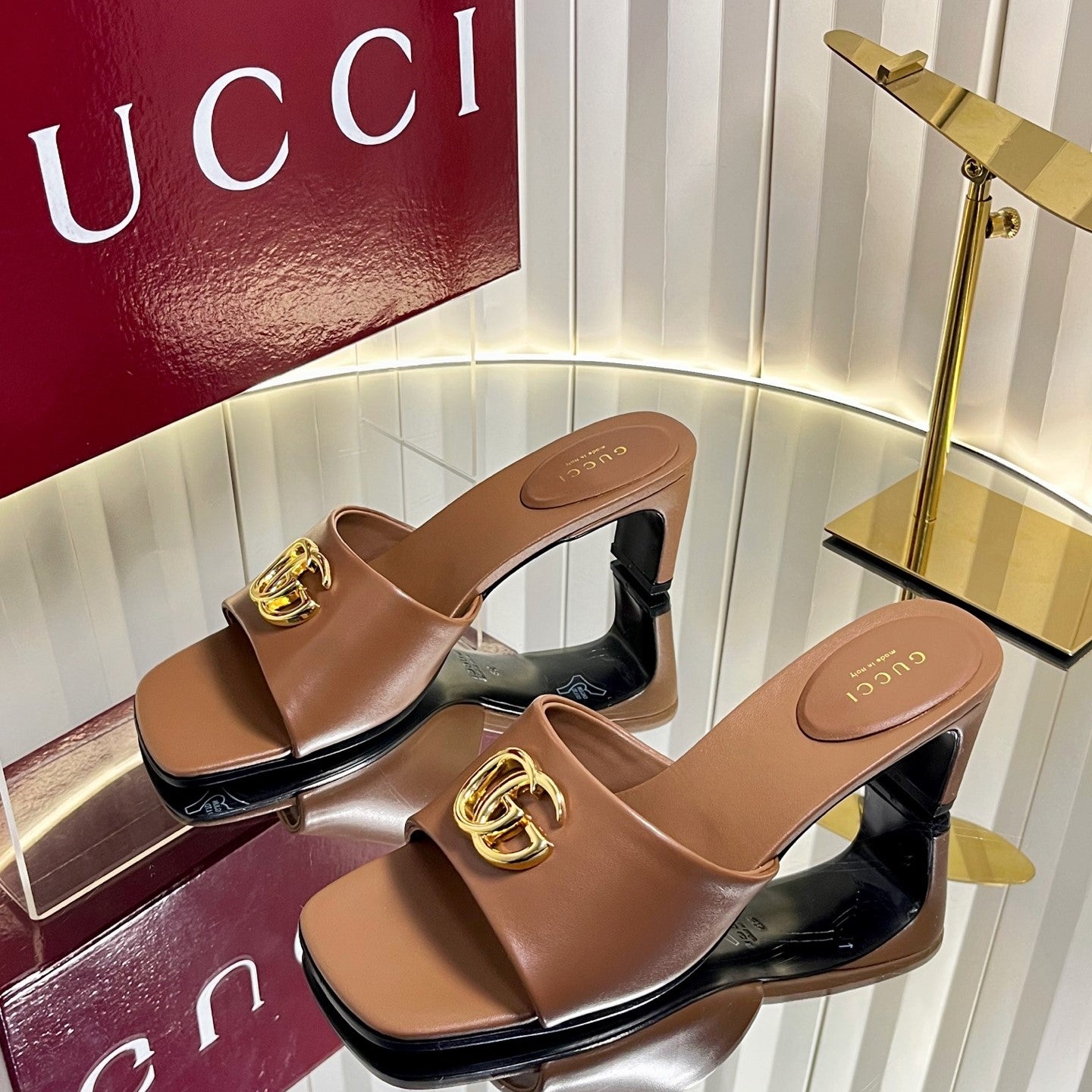 GG 26S Slippers 4.5cm Brown Leather 616457