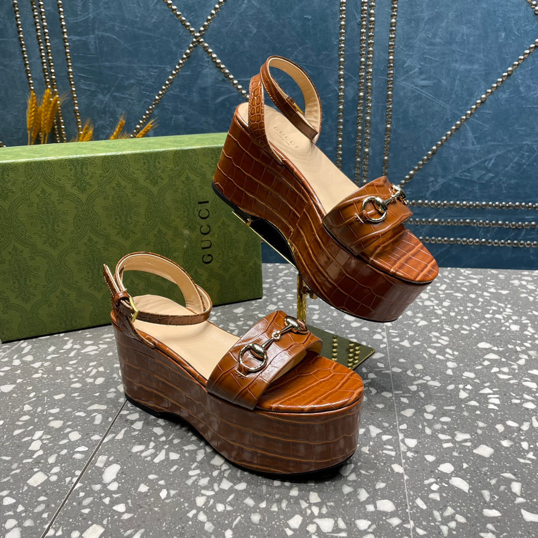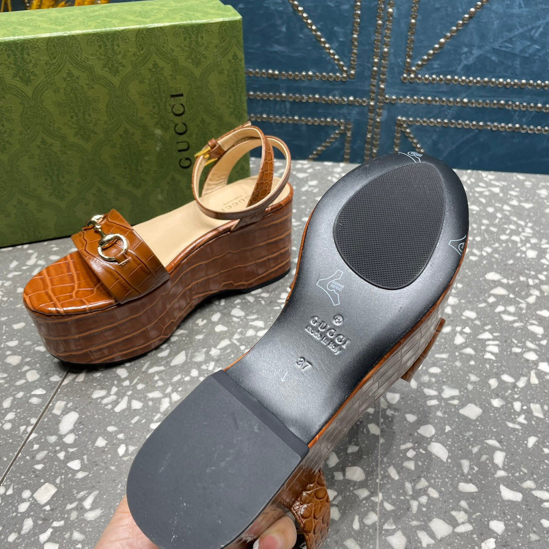 GG HORSEBIT FLATFORM SANDAL CARAMEL CALFSKIN