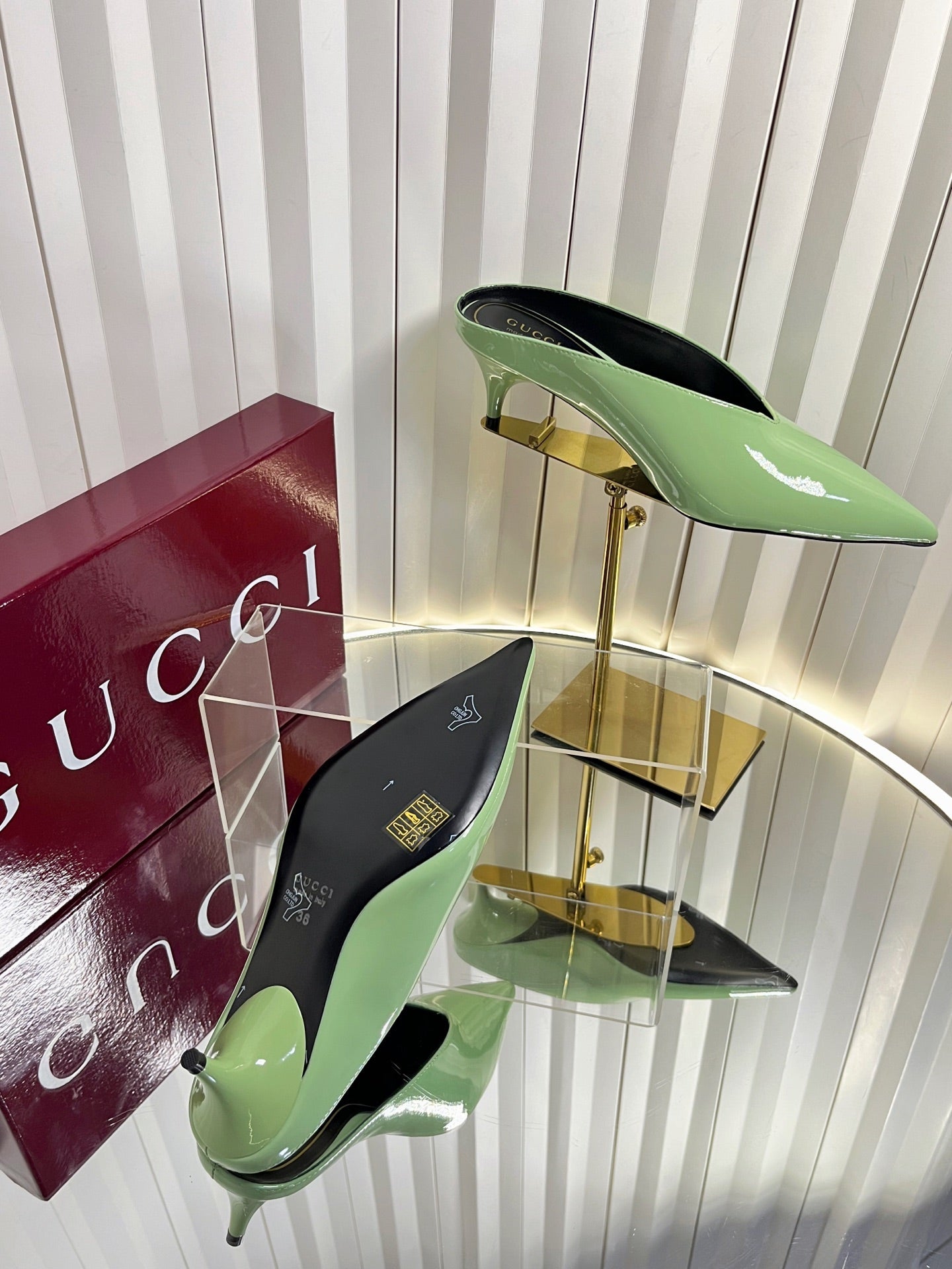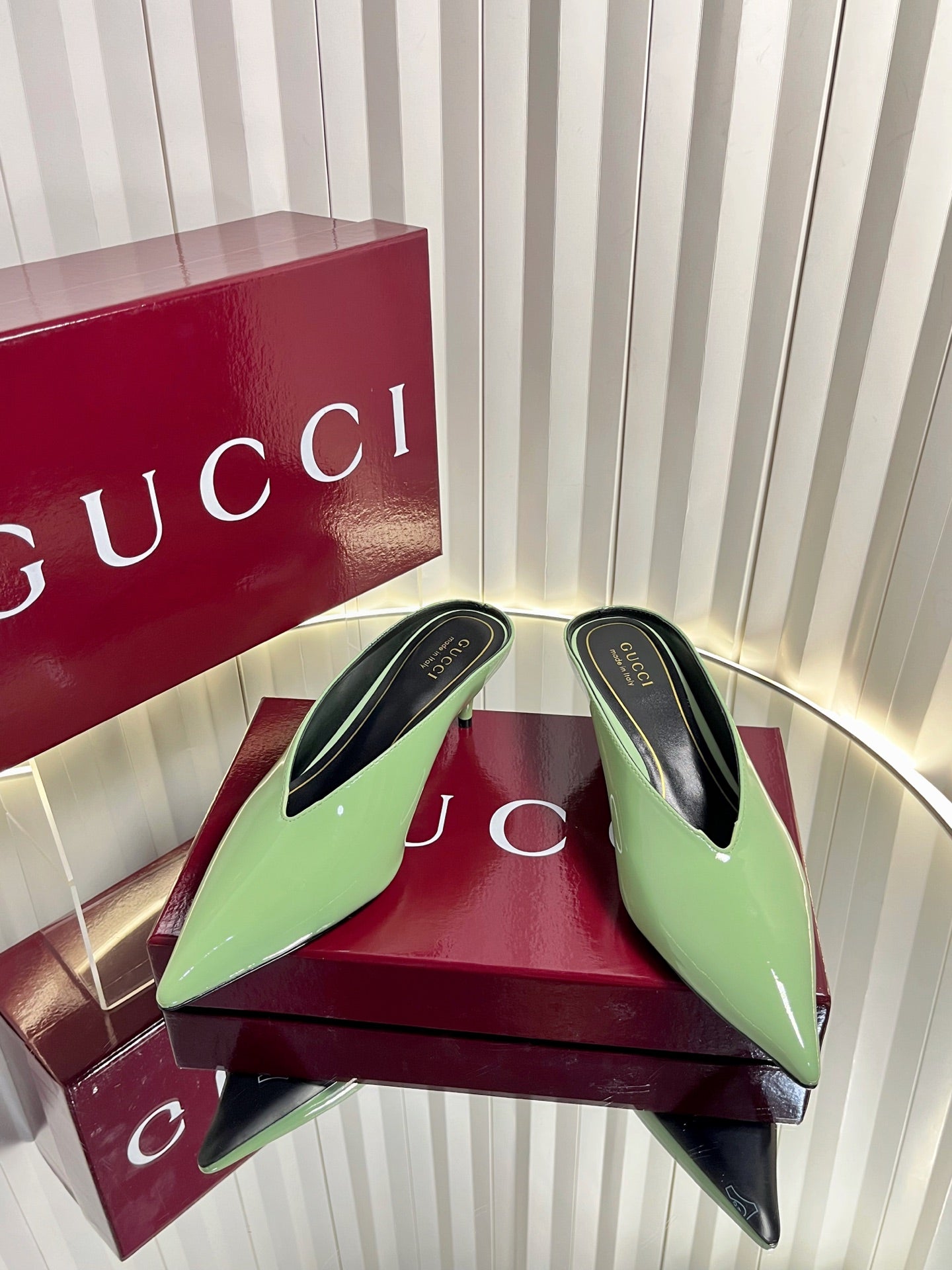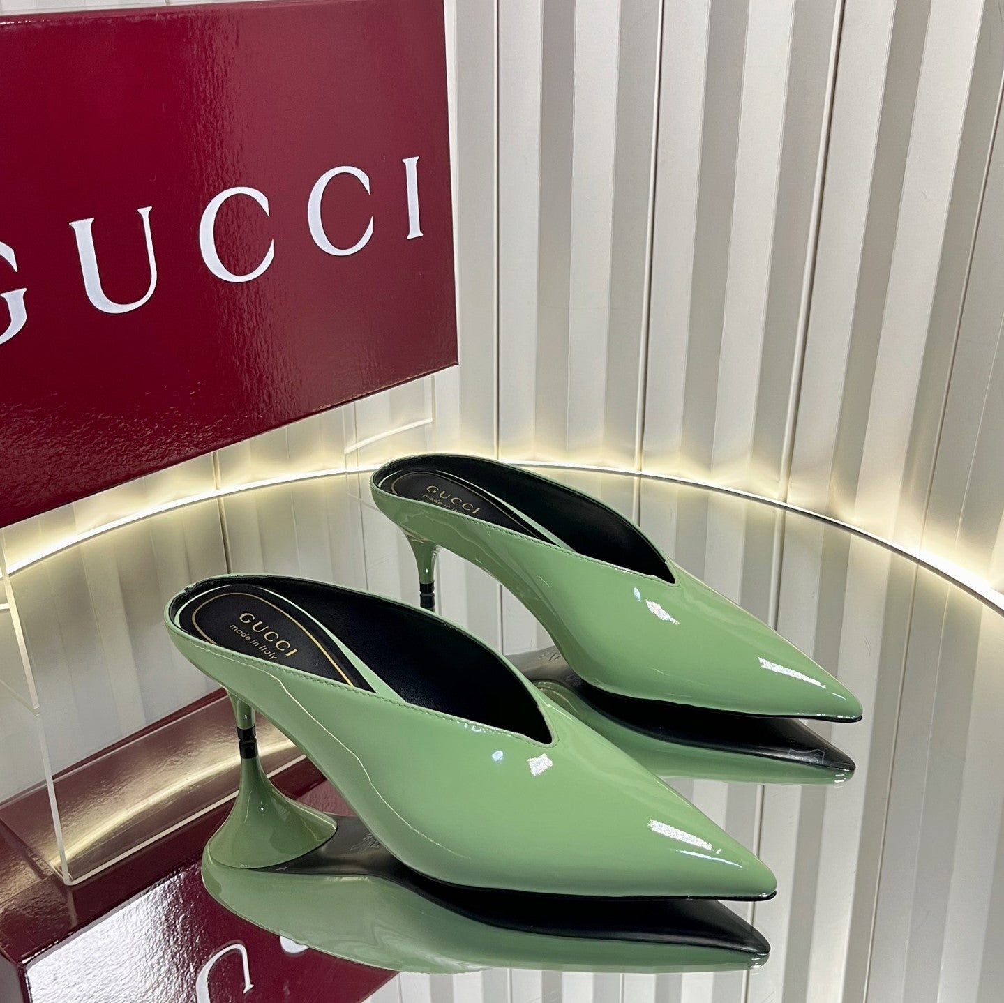 GG Women's Heeled Mules 50mm Matcha Green Patent Leather 548394