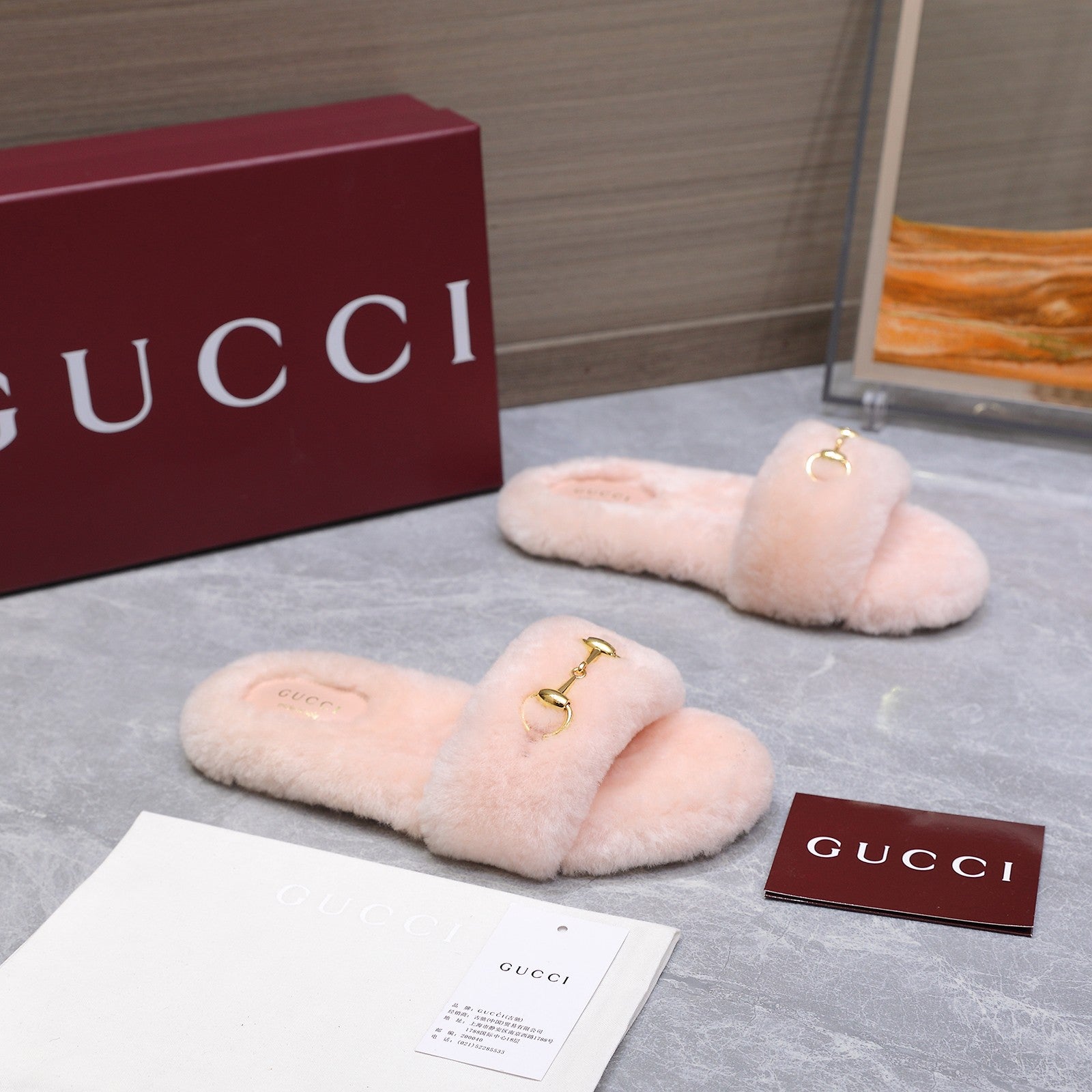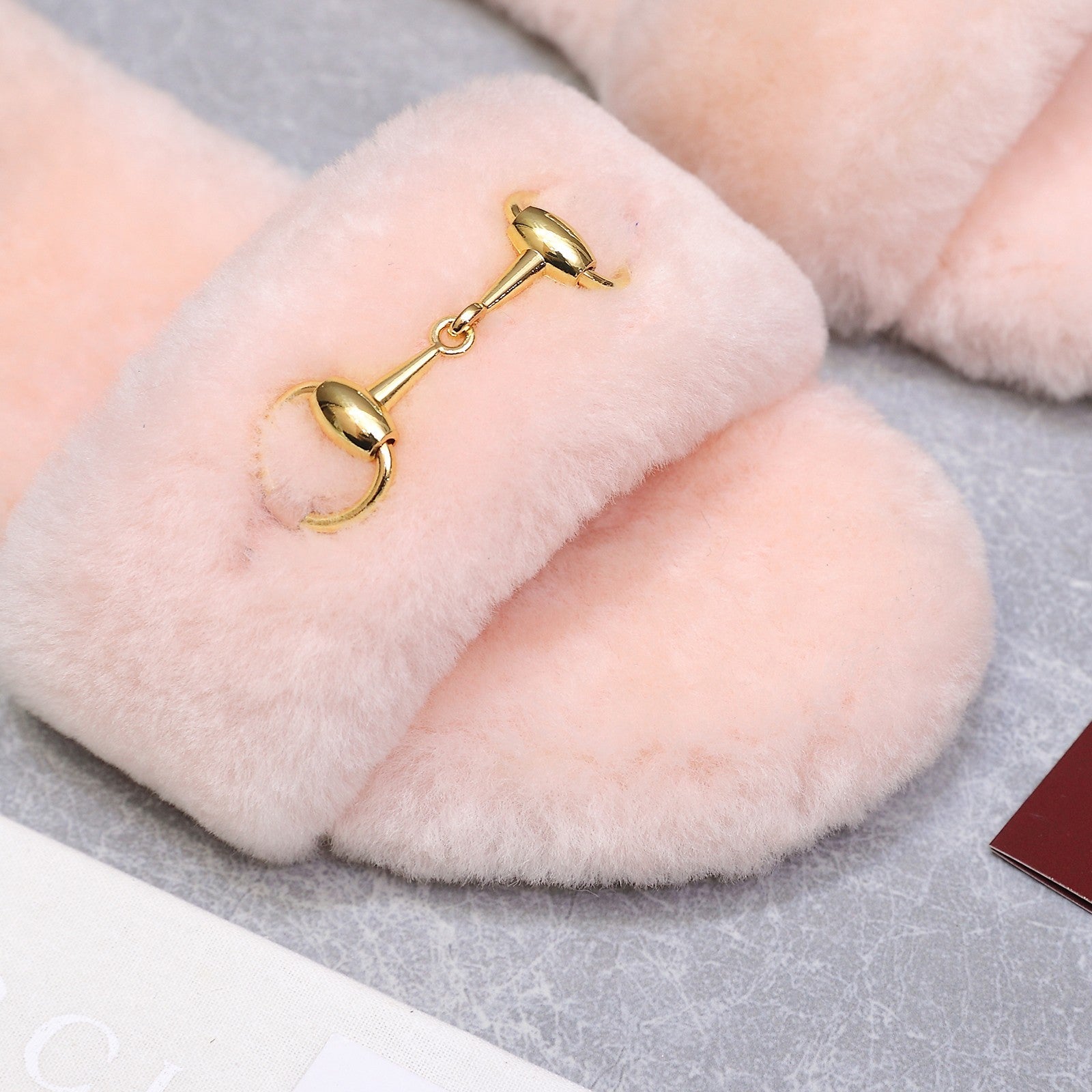GG Women's Slide with Horsebit Light Pink Fur 600970