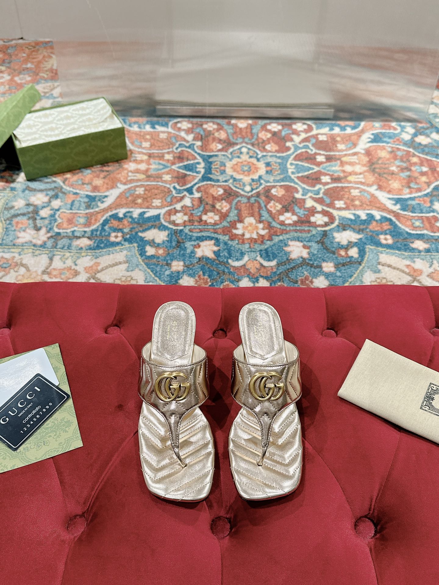 HIGH THONG MULE 55MM IN LIGHT GOLD CALFSKIN WITH GOLD HARDWARE